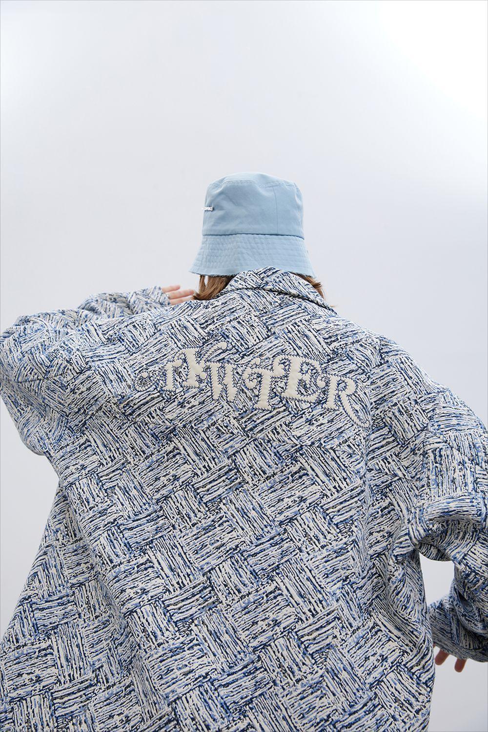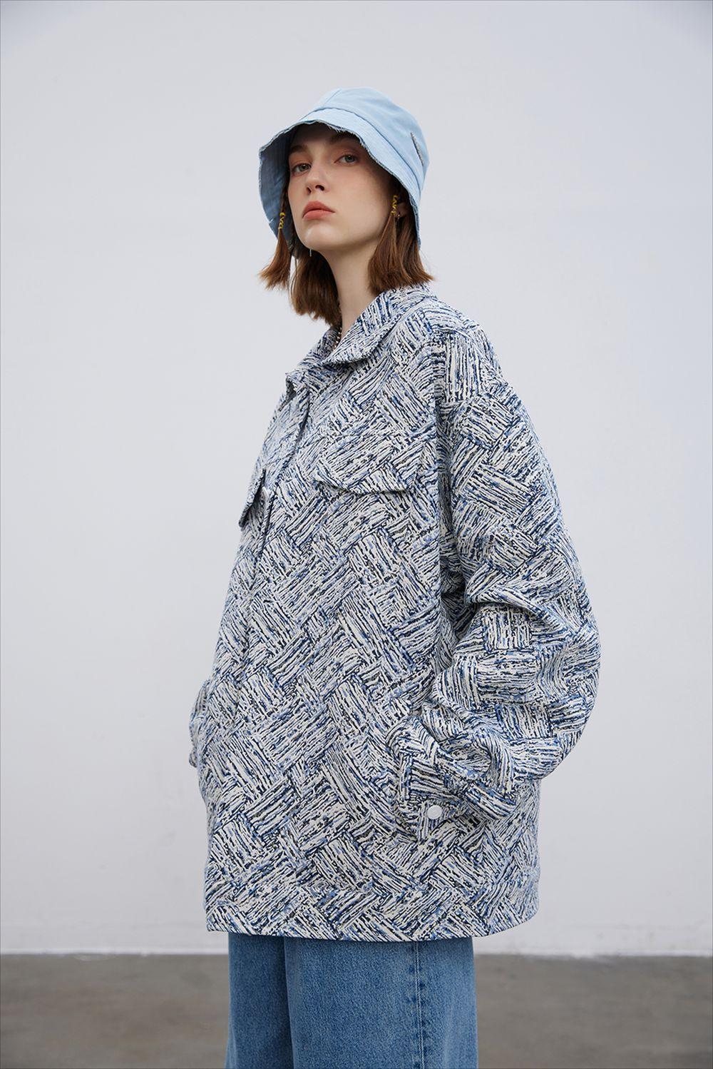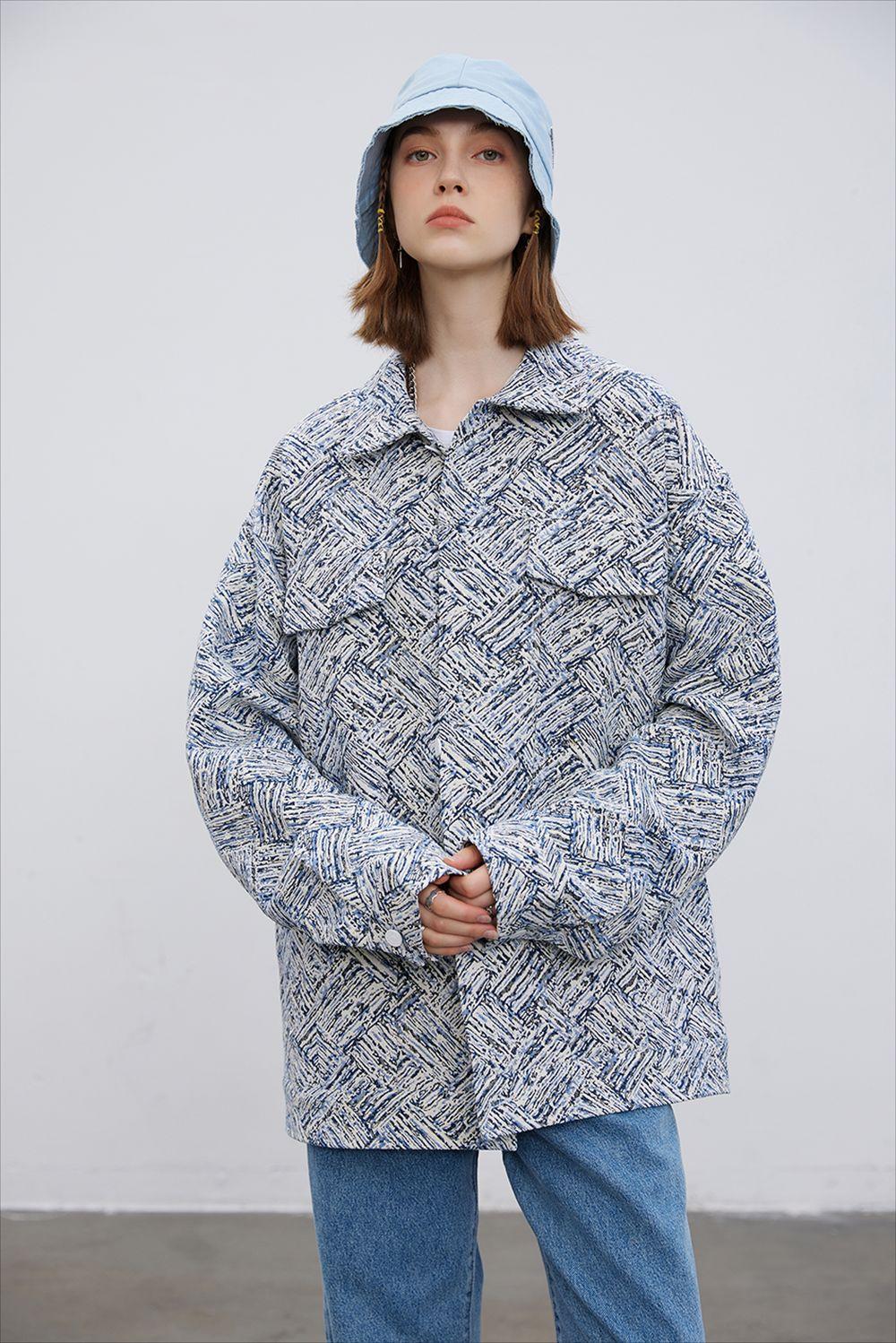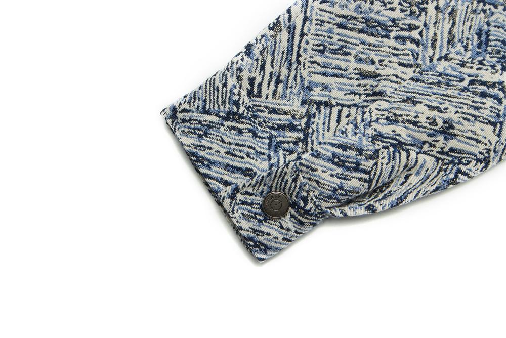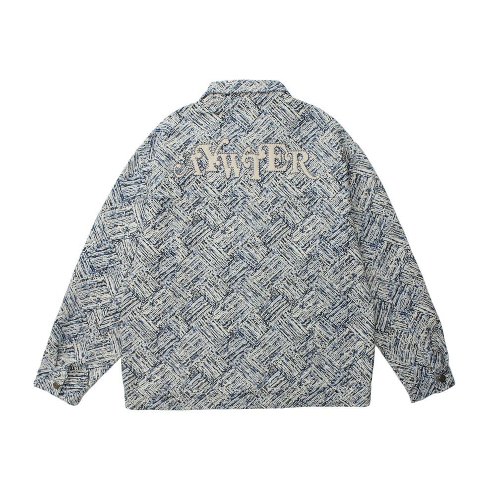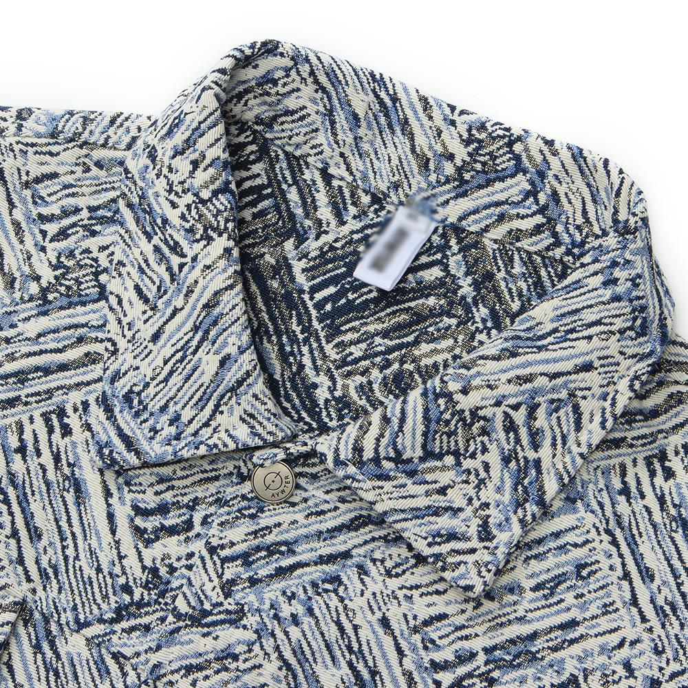 Jaqueta Jacquard Listrada Estampada por Toda Parte, Solta e Casual Outono e Inverno Masculina Marca Trendy Europeia e Americana High Street Jaqueta com Lapela Design de Nicho