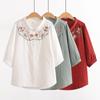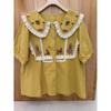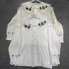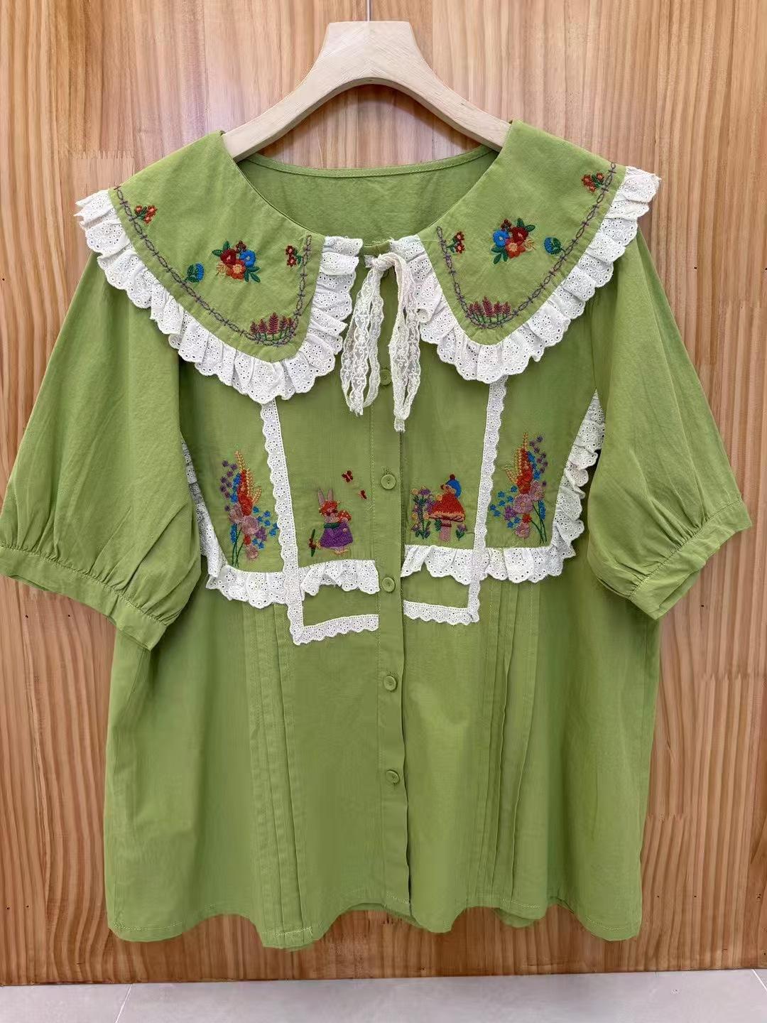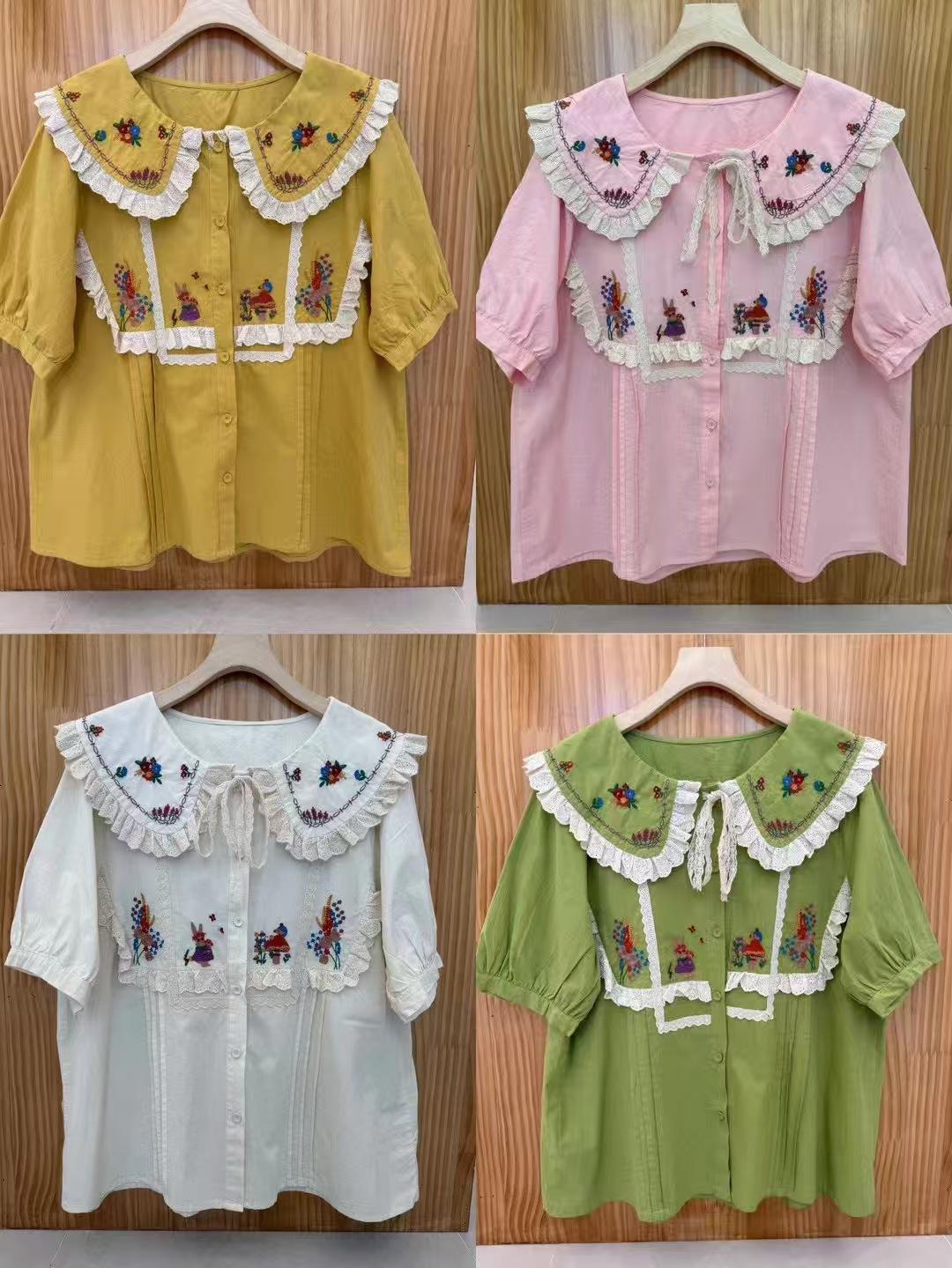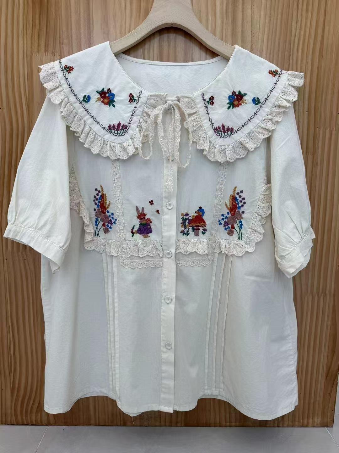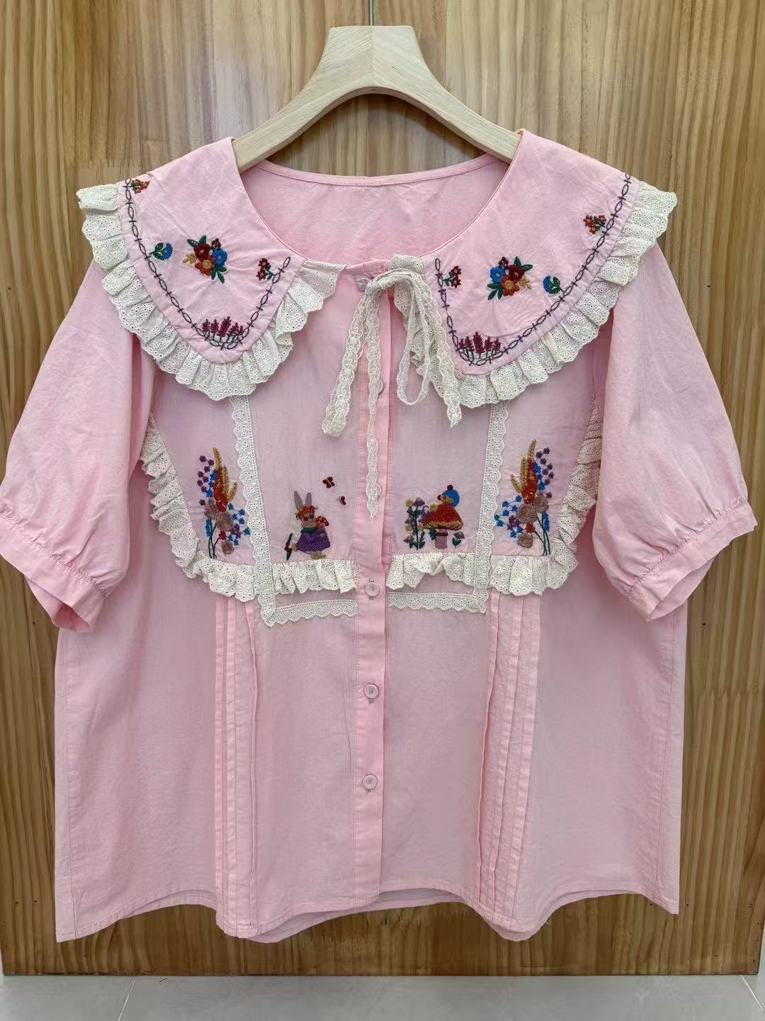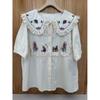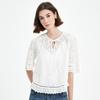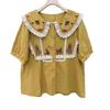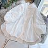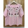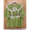 Camisa Babydoll Solta de Renda Bordada Estilo Faculdade de Verão Camisa Feminina Doce Redutora de Idade Renda de Amarrar Top Fino