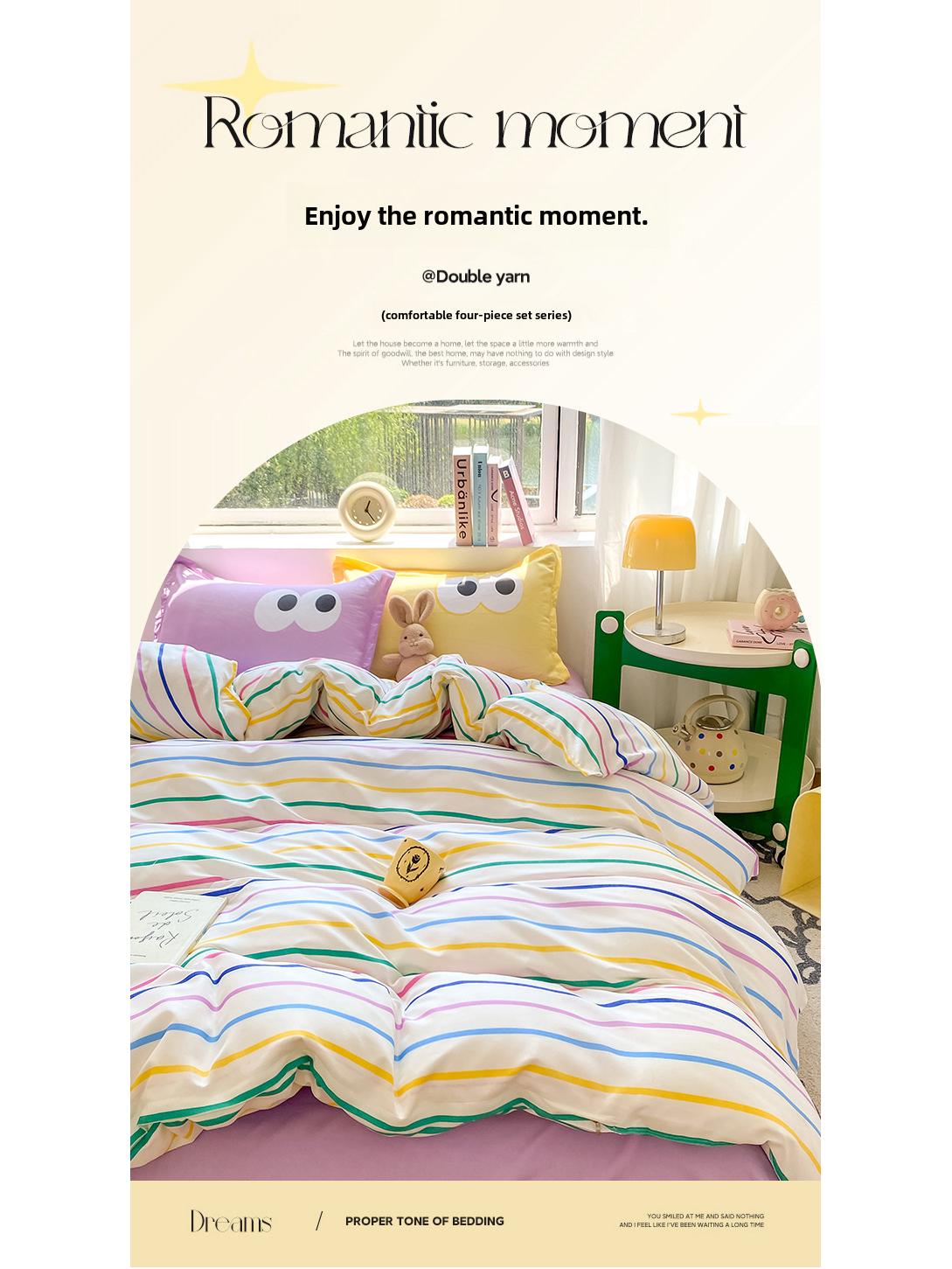 Frete Grátis Novo Conjunto de Cama de Algodão Lavado 4 Peças Aloe para Dormitório de Estudante