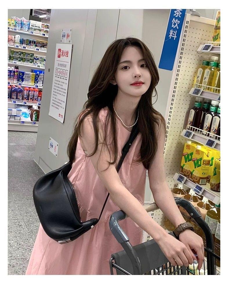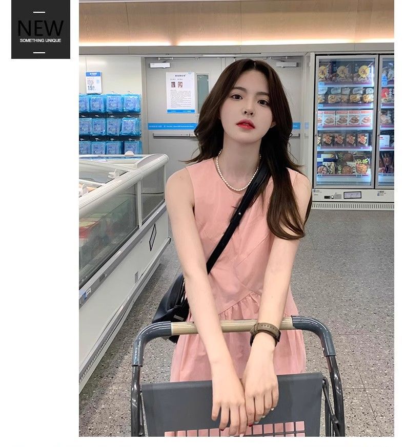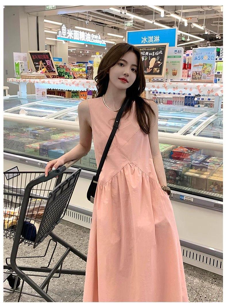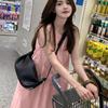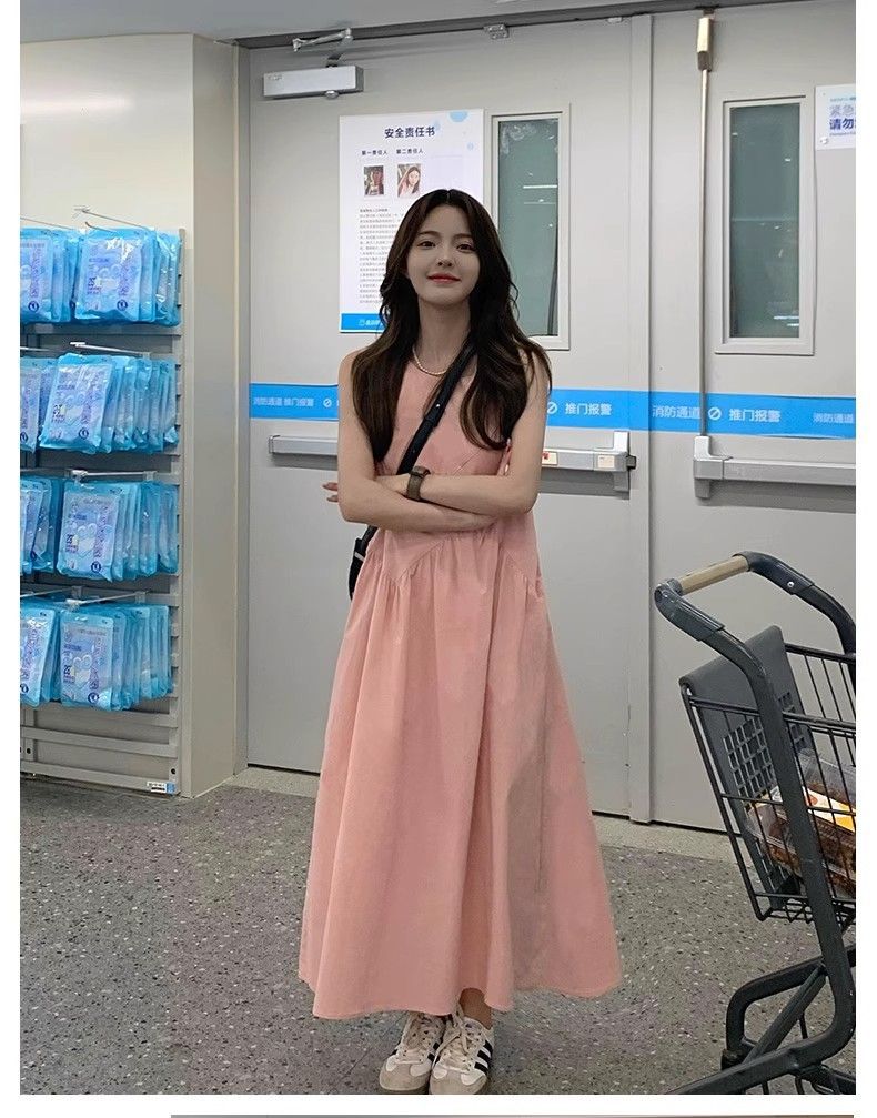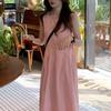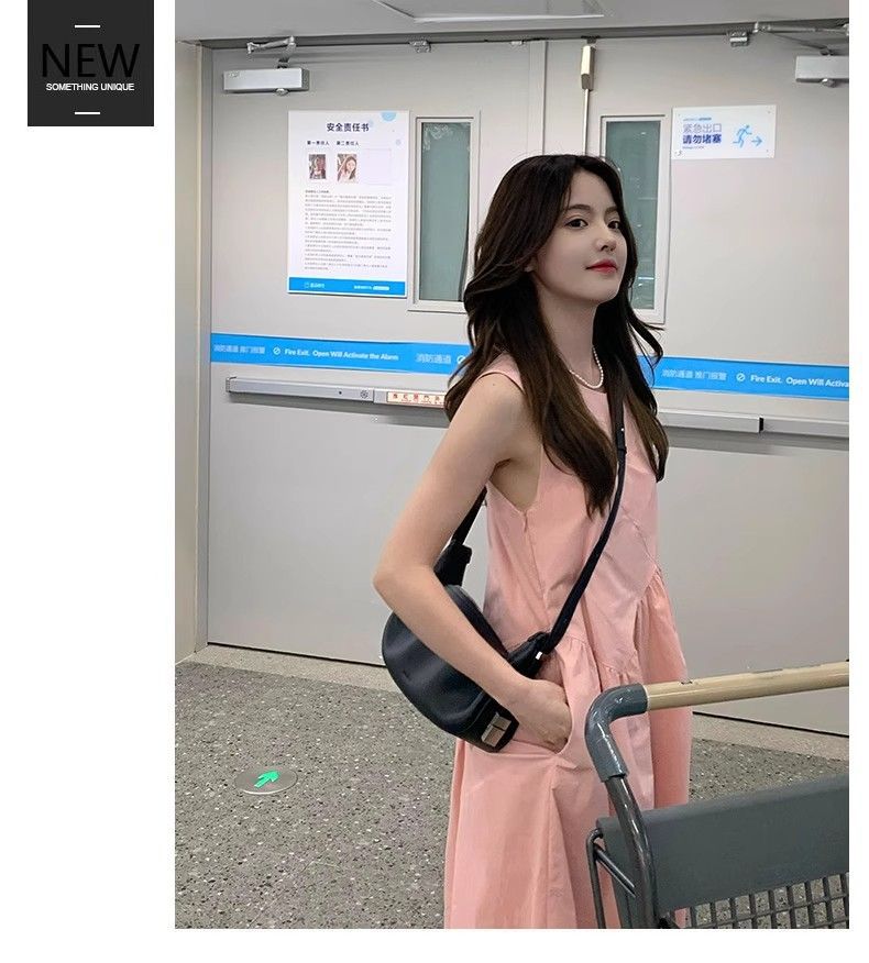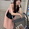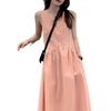 Vestido Petit Rosa Estilo Francês Sem Mangas com Alças Feminino 2025 Novo Verão Saia Longa de Alta Qualidade