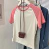 Verão quente novo senso de alta qualidade de impressão estilo estrangeiro moda tudo combina slim respirável fino sensação fresca top de manga curta