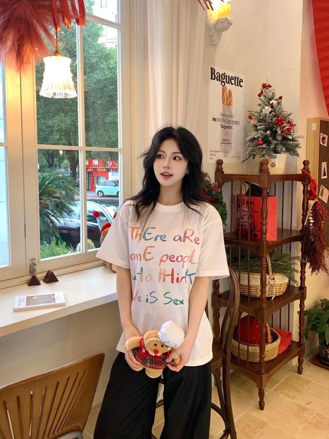Camiseta de Manga Curta de Algodão Puro Roupas de Namorada Super Quentes da chicins Camiseta de Meia Manga Estampada Verão Fresco para Estudantes