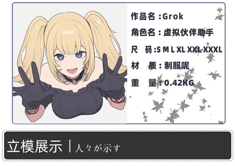 Grok Namorada Virtual Bidimensional Fantasia de Cosplay Estilo Ani Gótico Minissaia Preta Cosplay Jogo Roupa de Role-playing