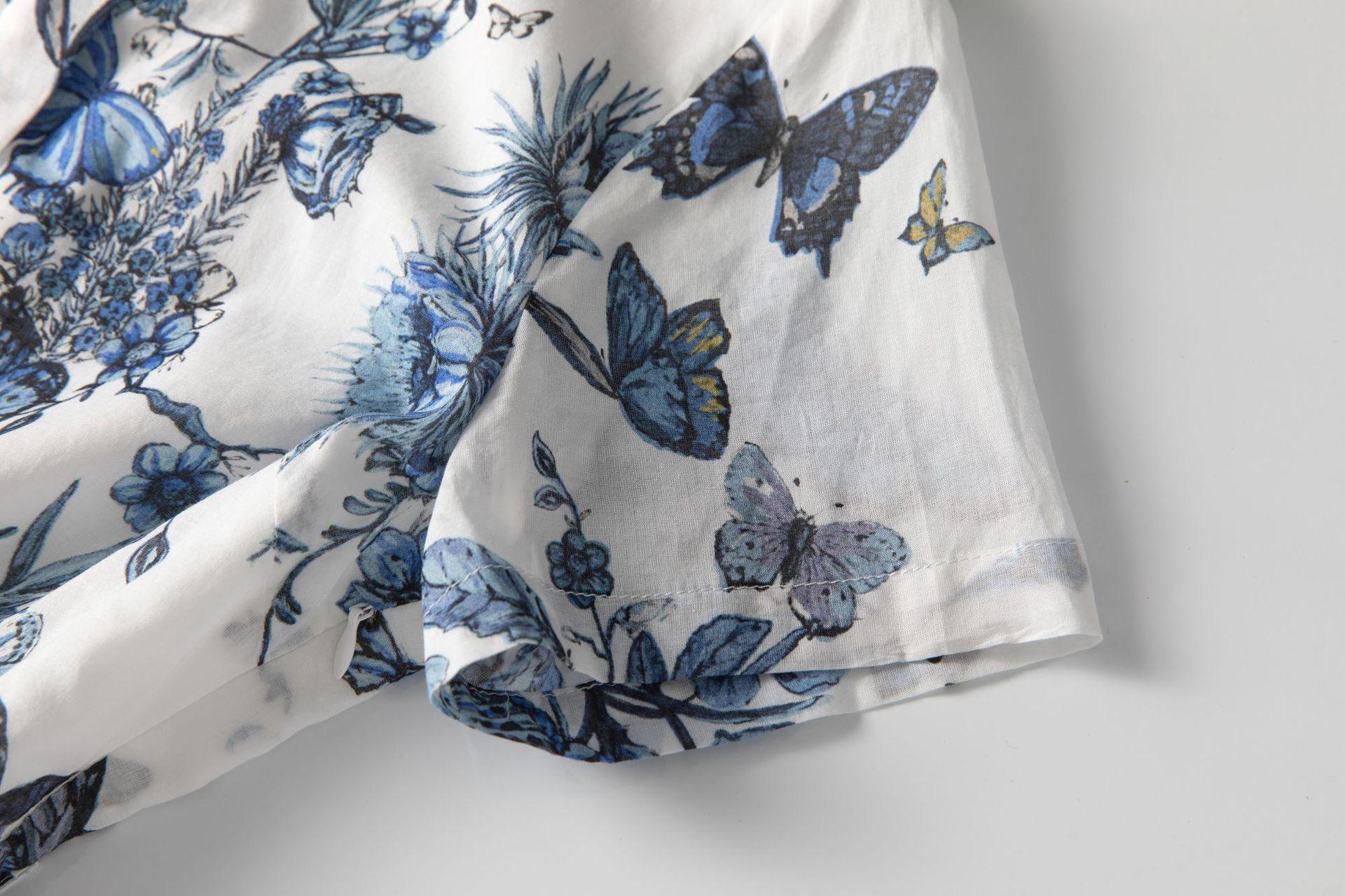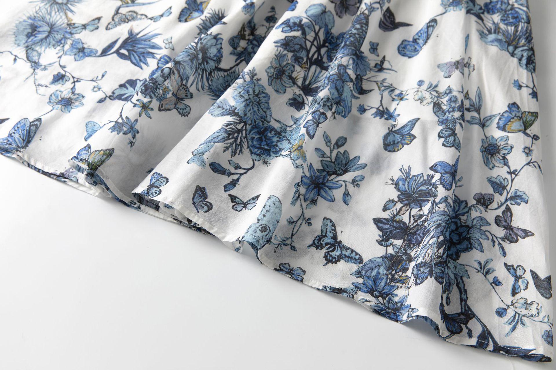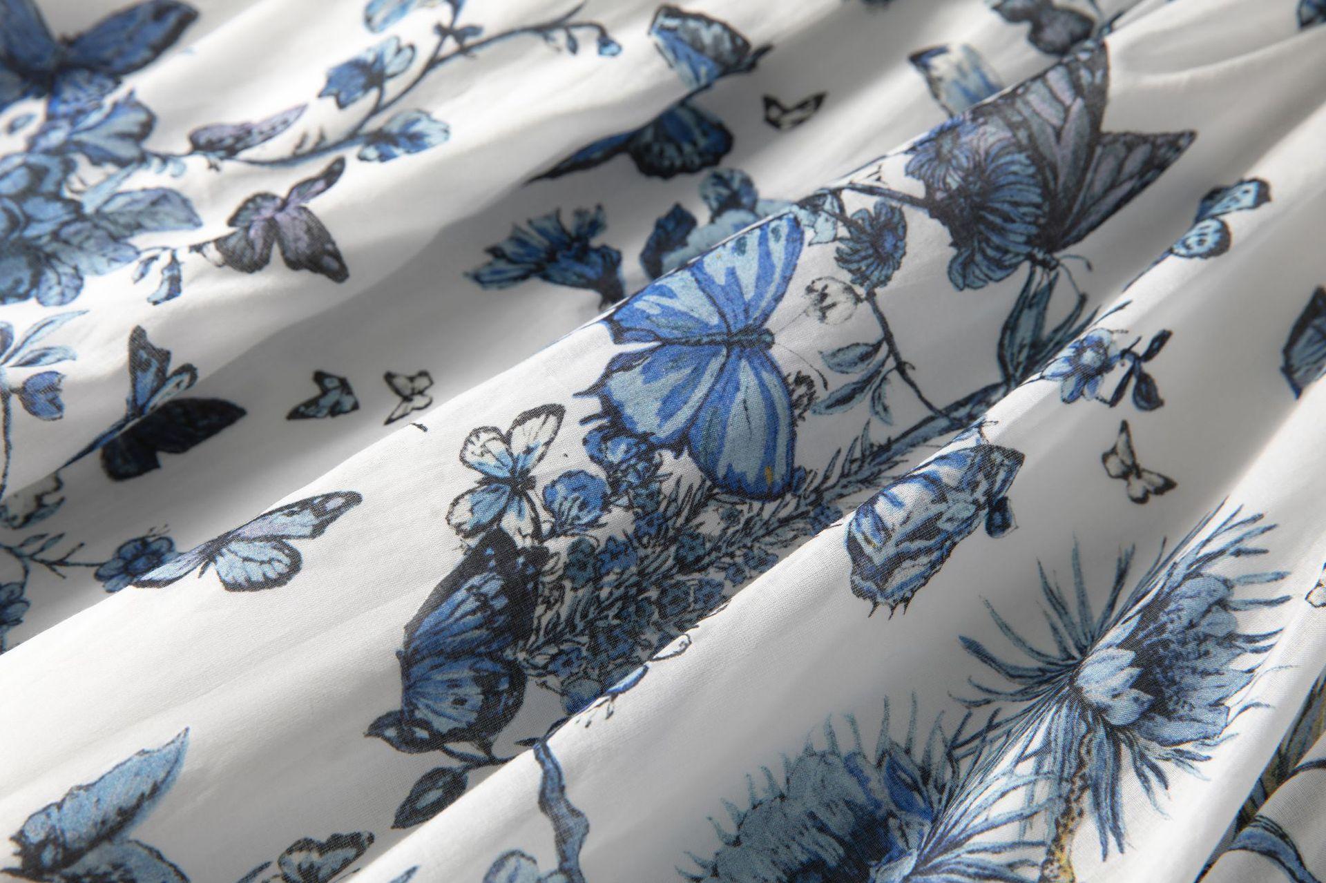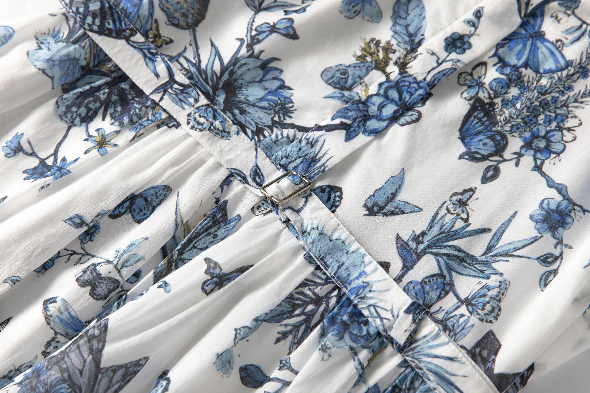 Novo Vestido Evasê Algodão Puro Gola Babado Estampa DTG Borboleta Primavera/Verão D-brand