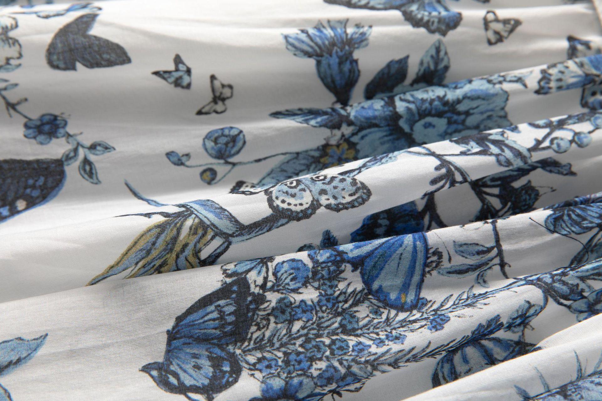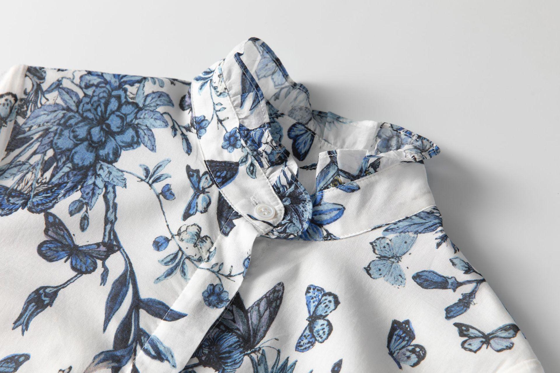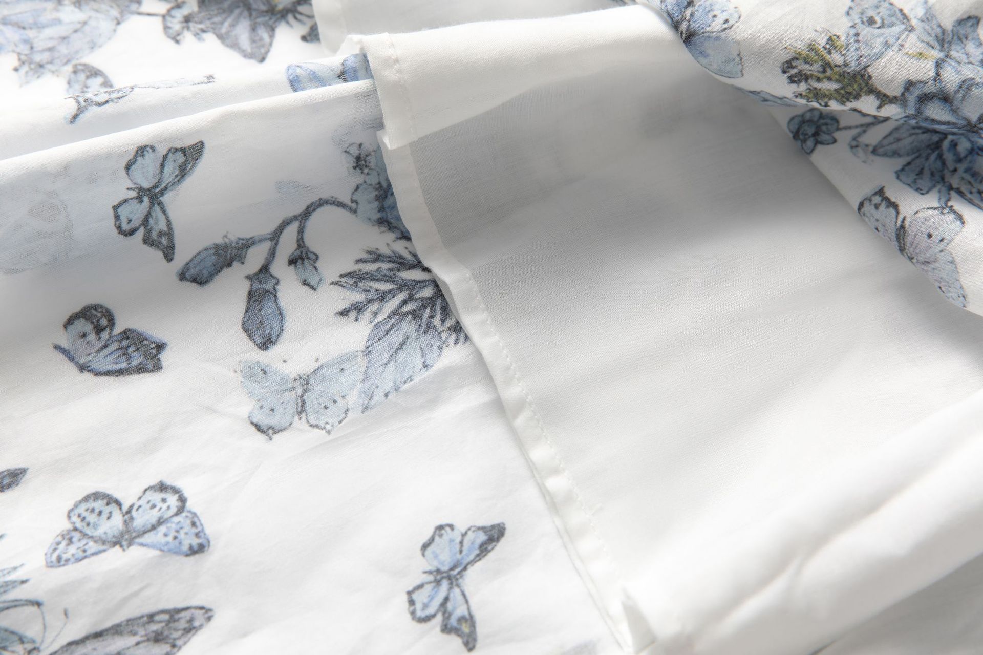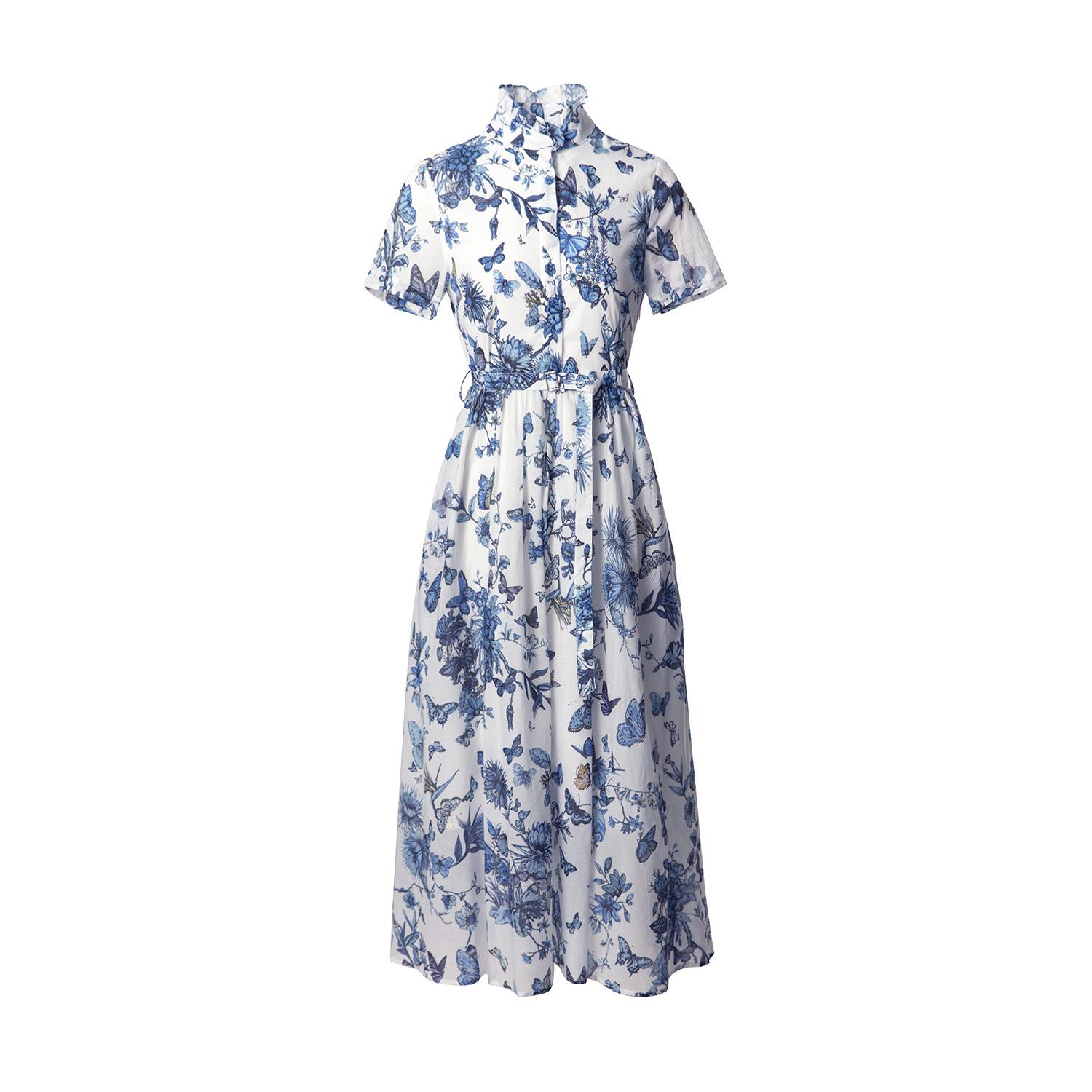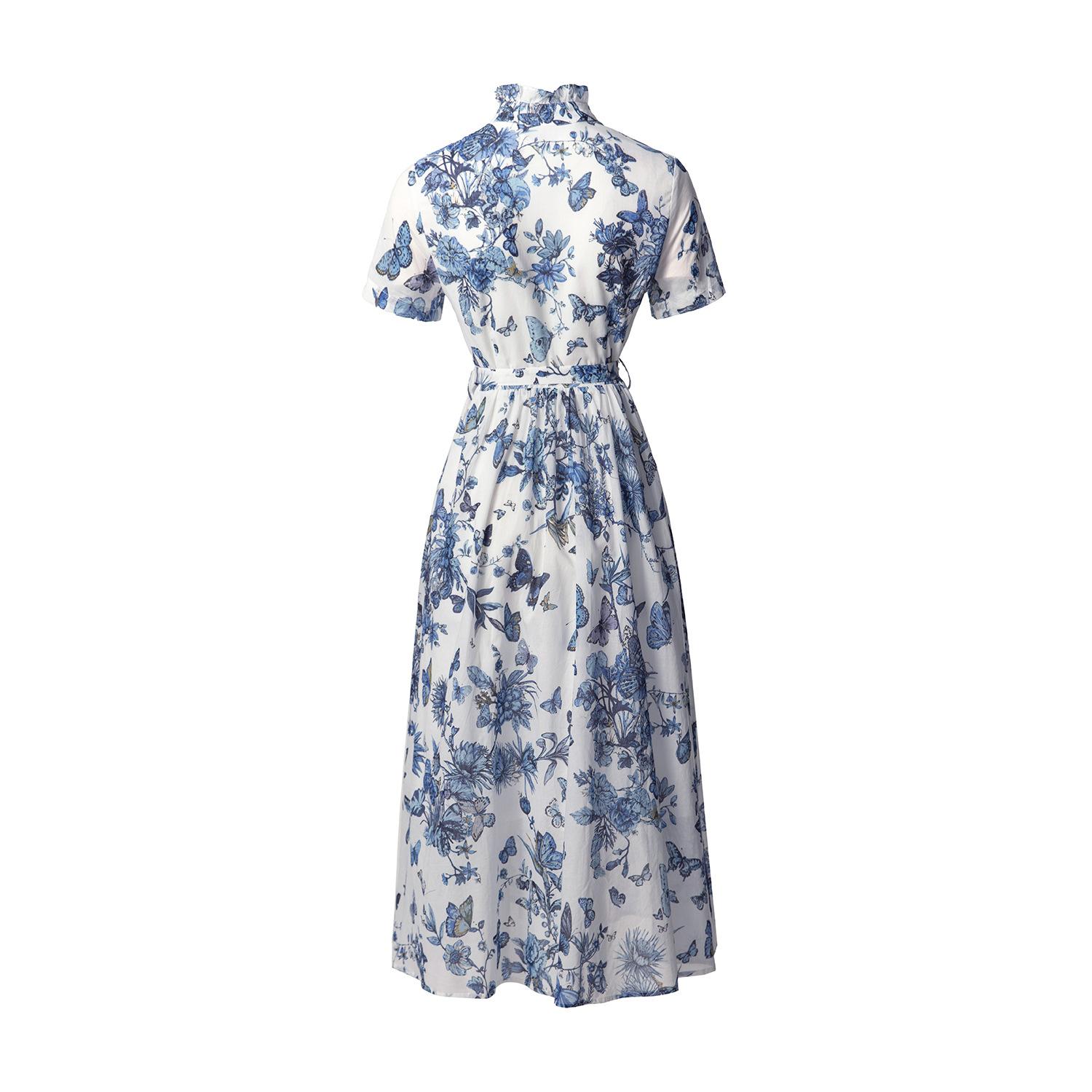 Novo Vestido Evasê Algodão Puro Gola Babado Estampa DTG Borboleta Primavera/Verão D-brand