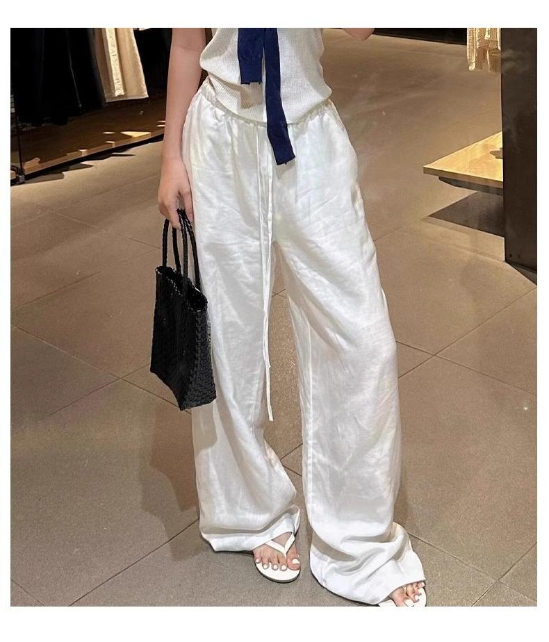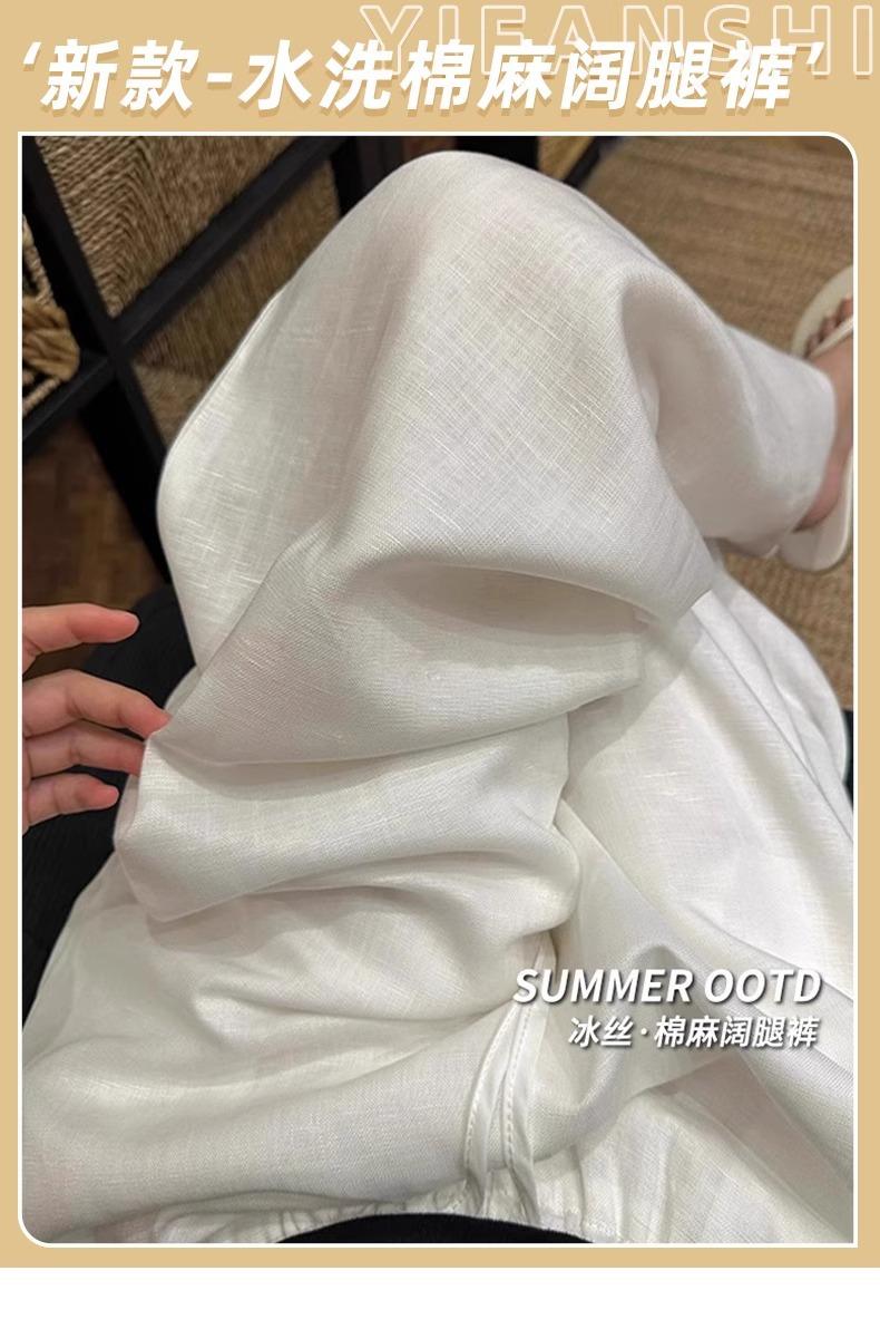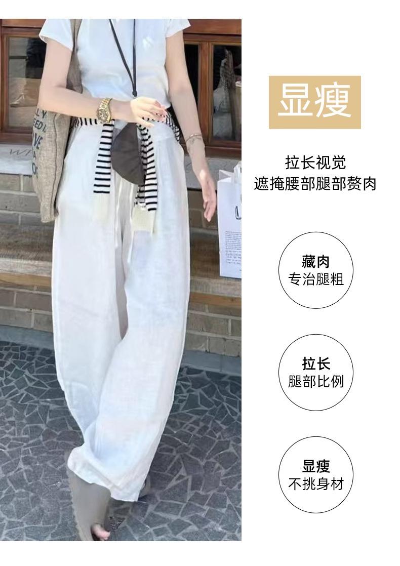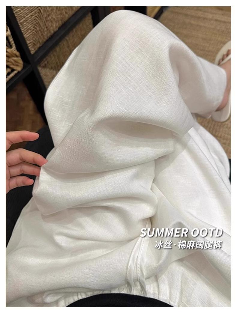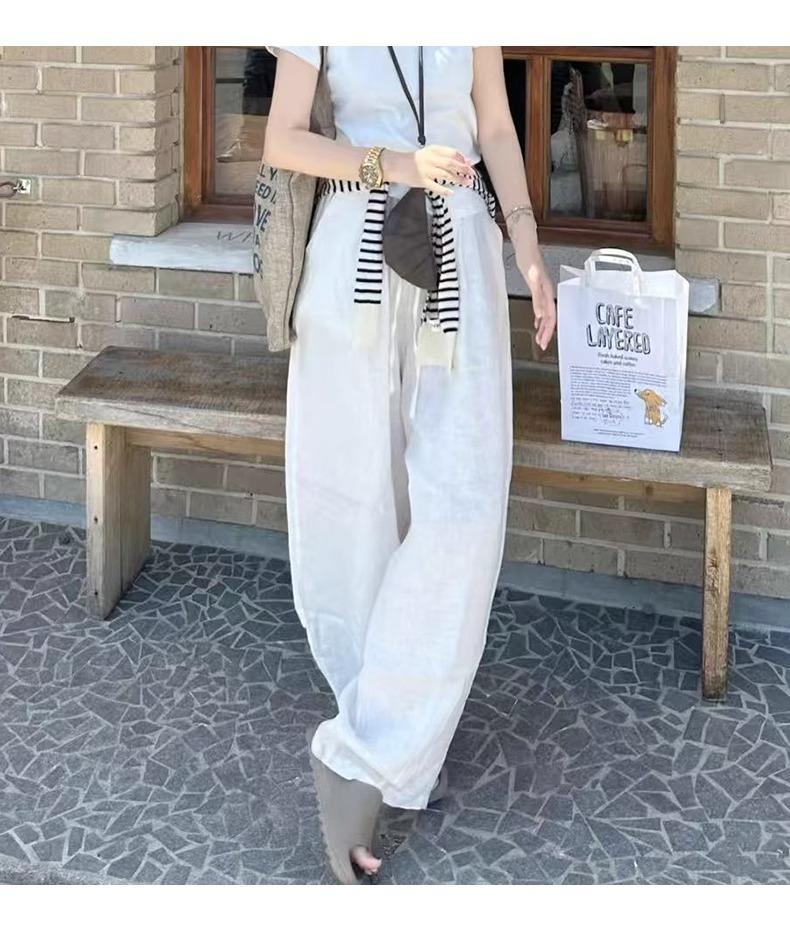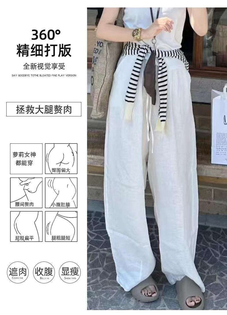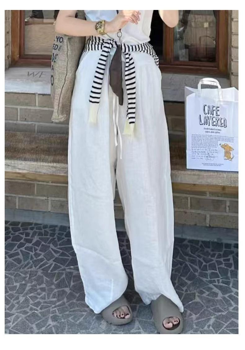 Calças Casuais de Algodão e Linho Branco para Mulheres Verão Fino 2025 Novo Cintura Alta Perna Reta Solto Estilo Preguiçoso Calças de Perna Larga