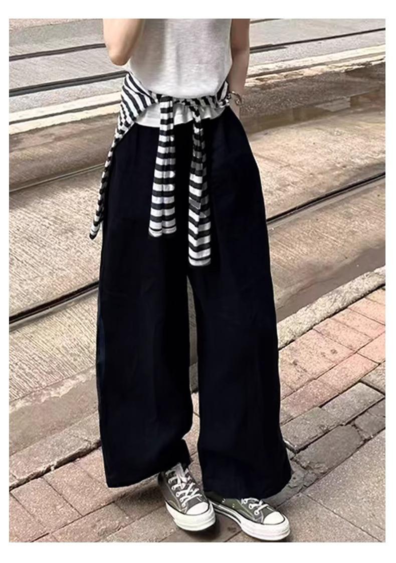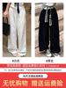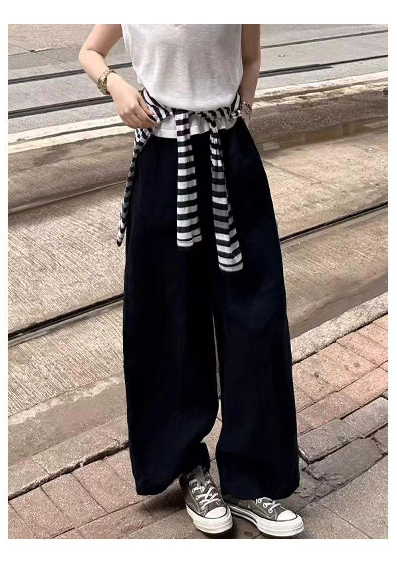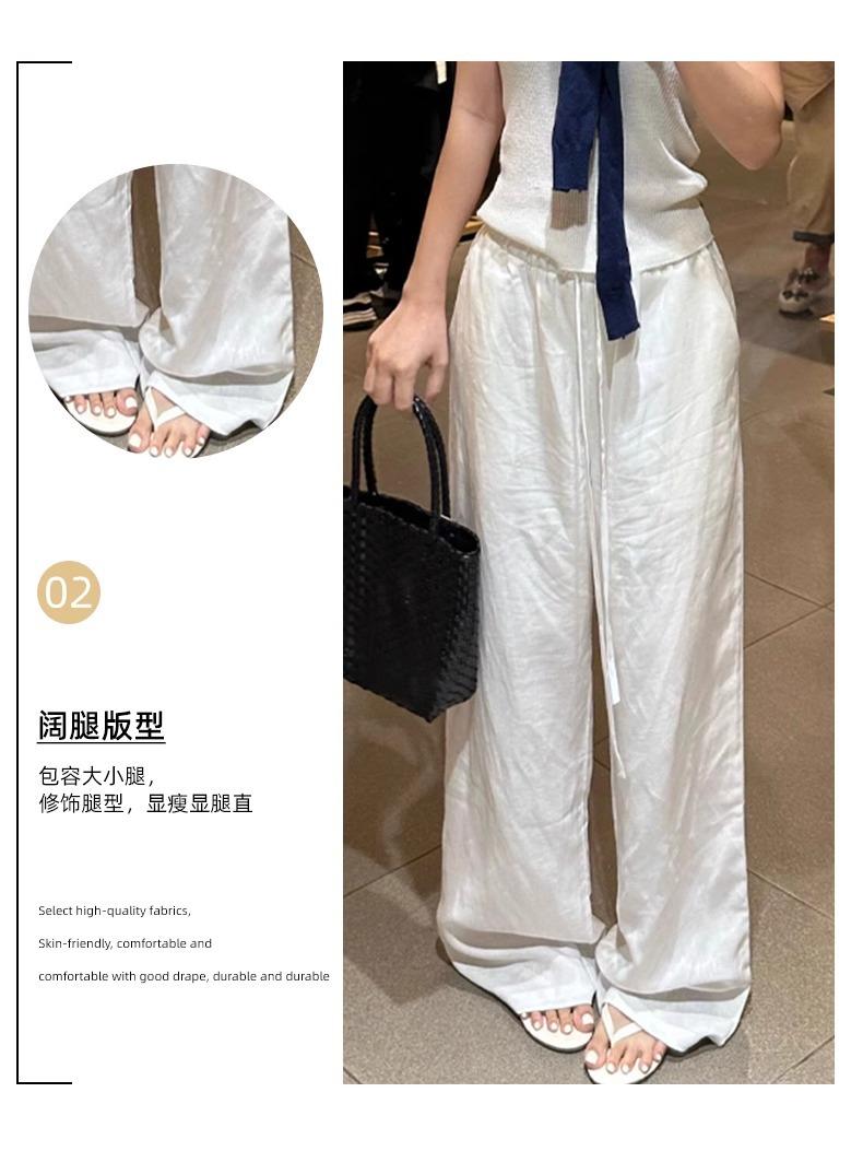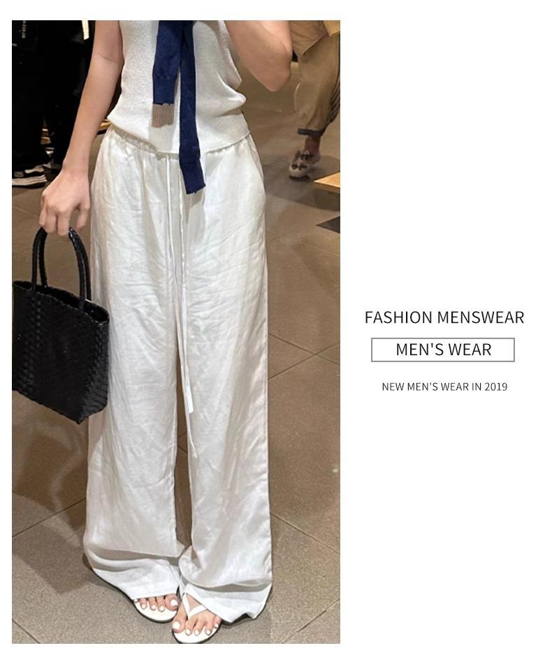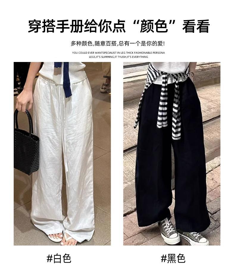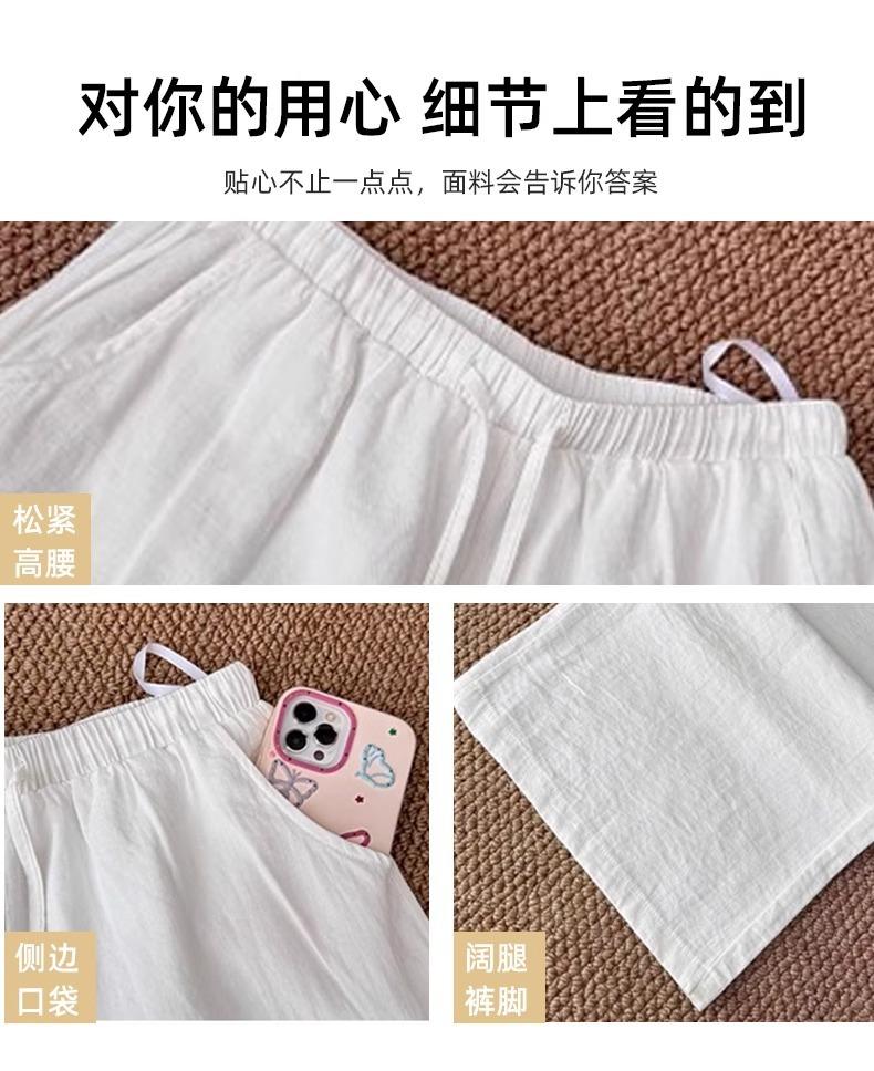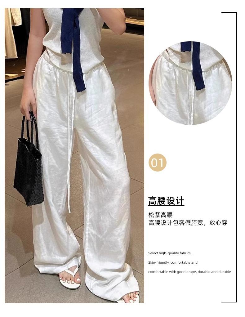 Calças Casuais de Algodão e Linho Branco para Mulheres Verão Fino 2025 Novo Cintura Alta Perna Reta Solto Estilo Preguiçoso Calças de Perna Larga