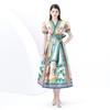 Vestido Novo Elegante Solto Plissado Feminino Moda Sofisticada Lapela Manga Trompete Flor Longo Abotoado