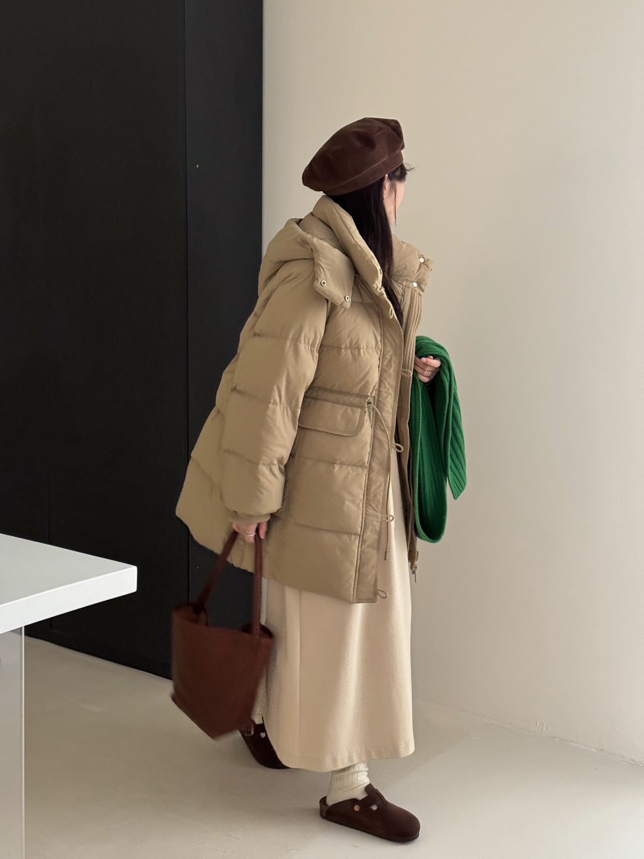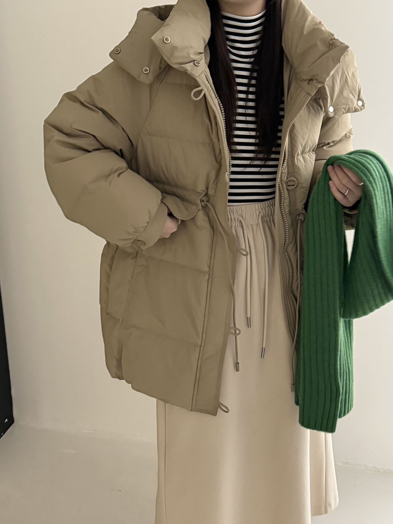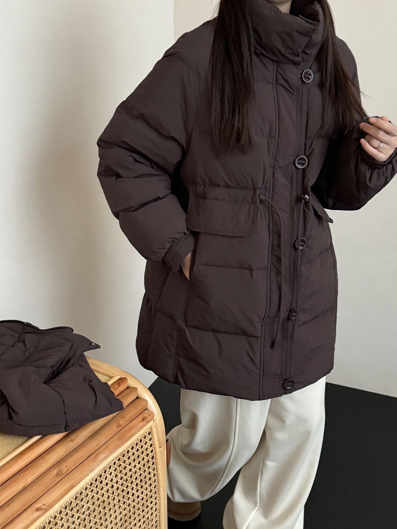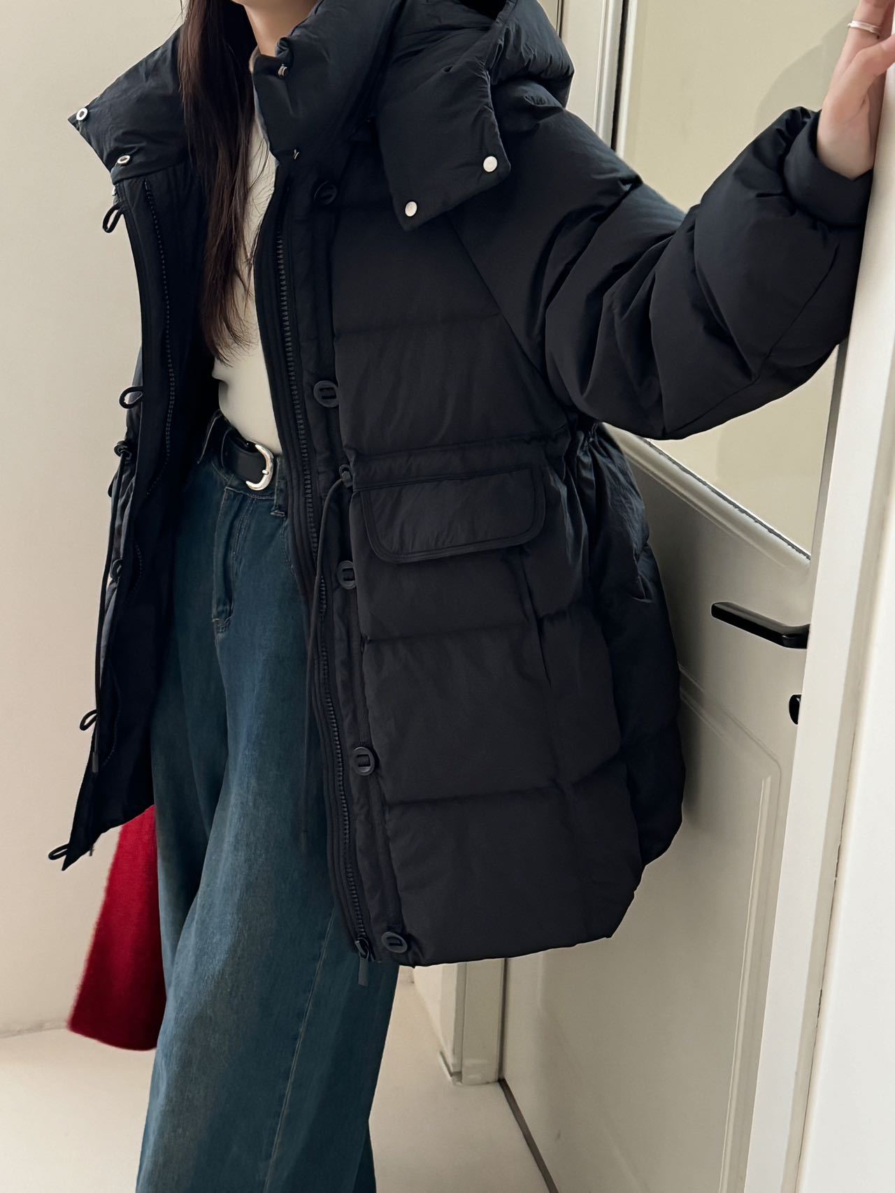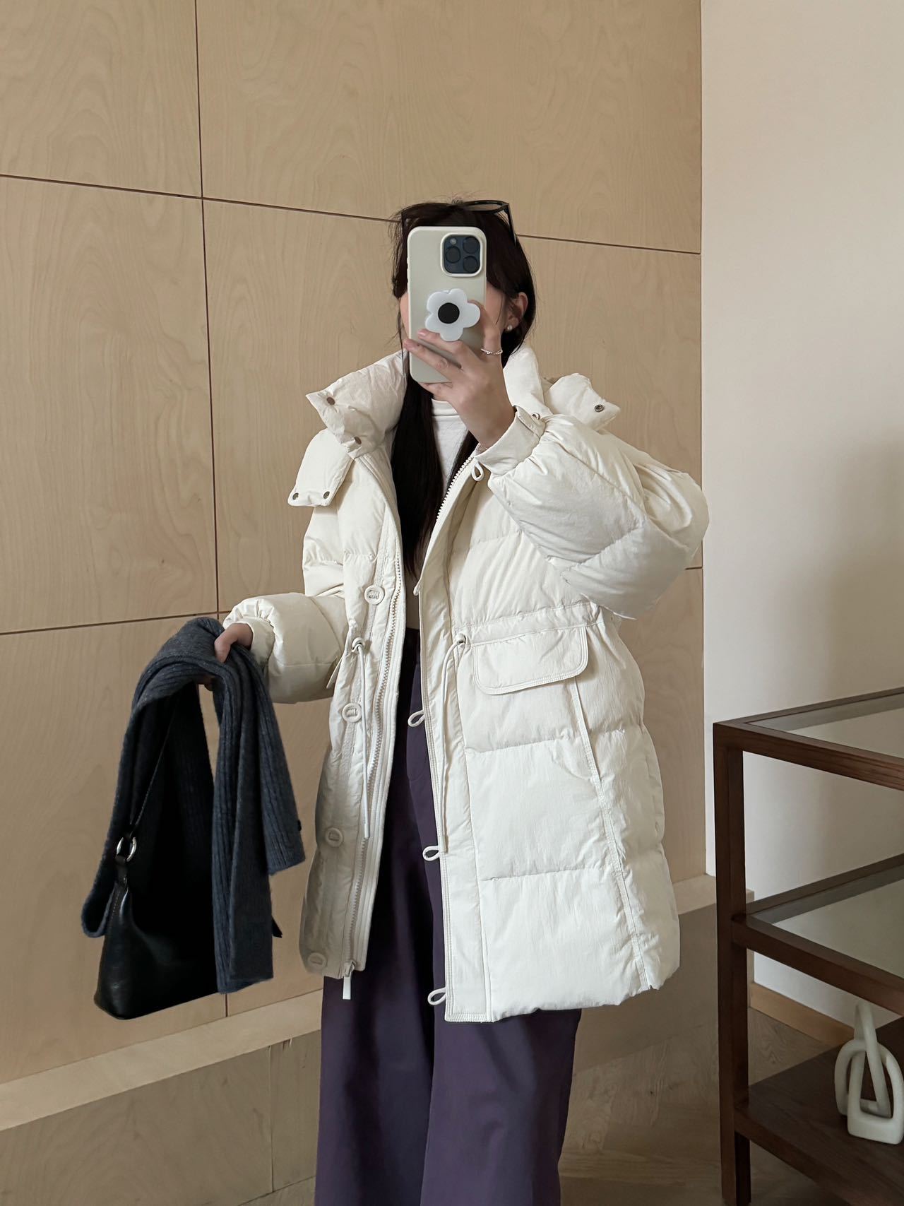 Jaqueta Mid-Length High-End de Penas de Pato Branco 90 para Mulheres 2024 Nova Cintura com Cordão Look Emagrecedor Jaqueta Pequena Moderna