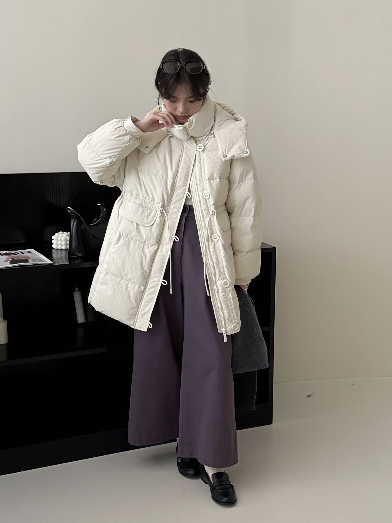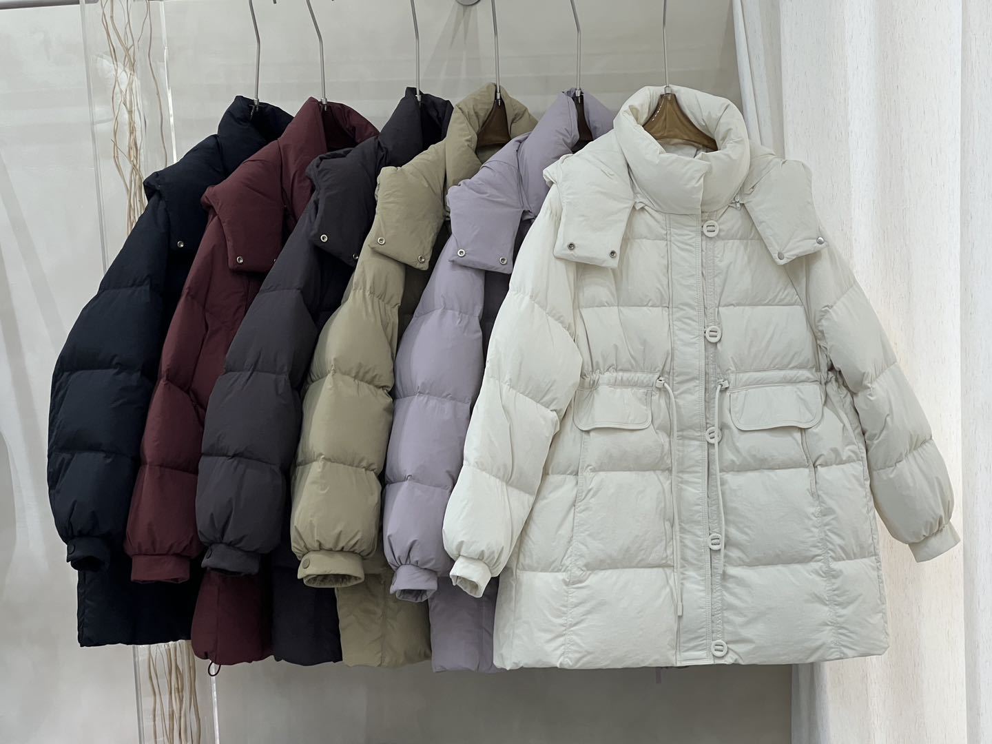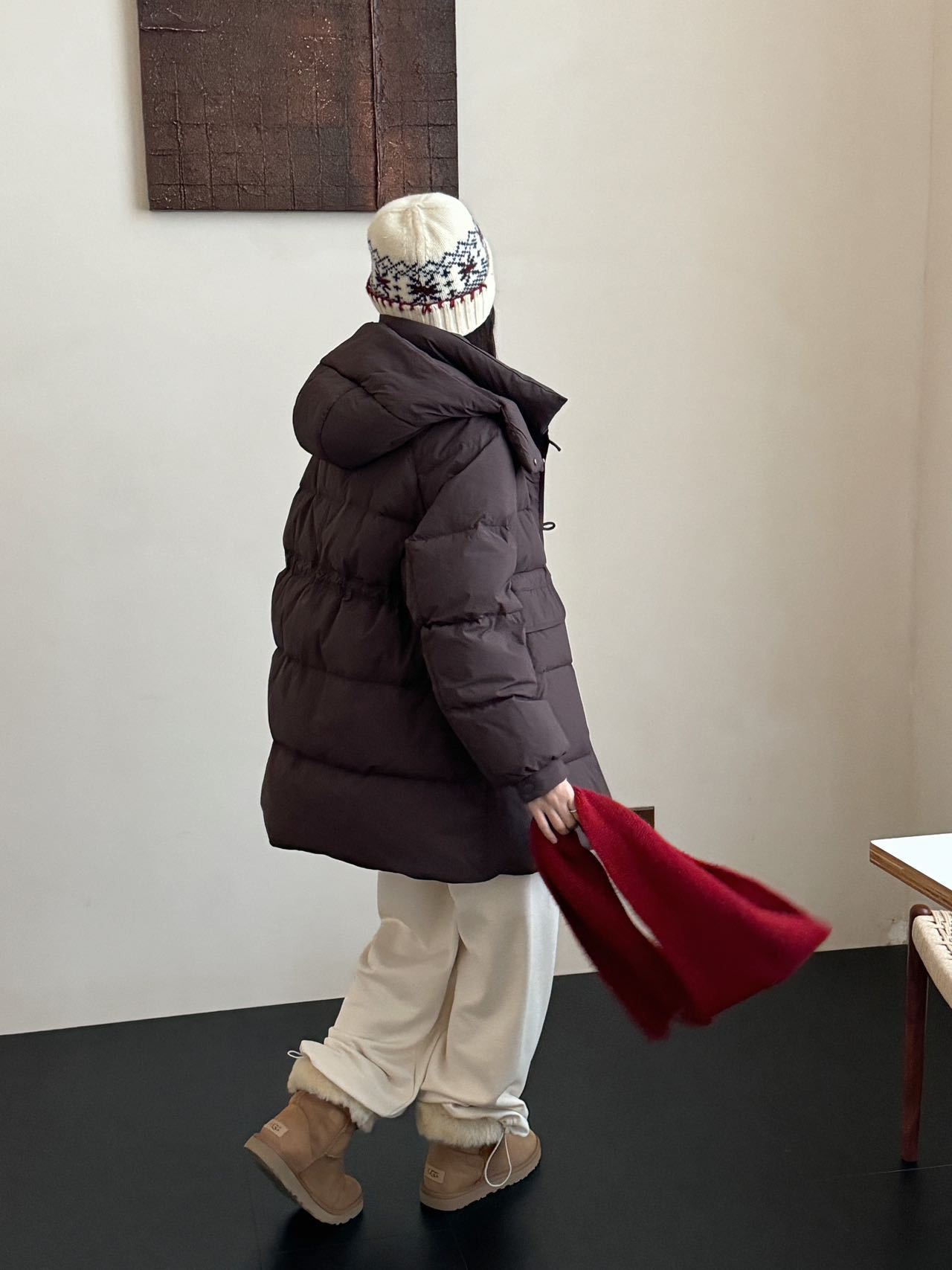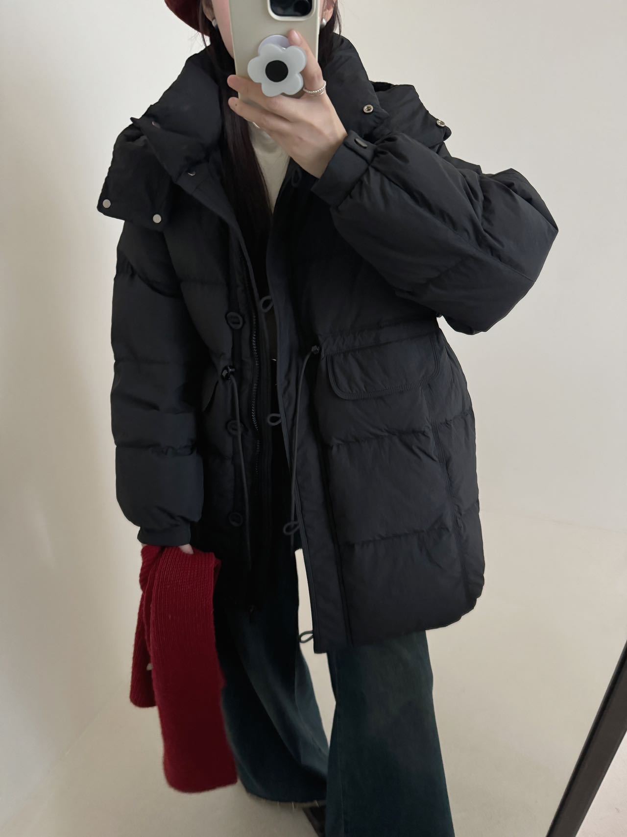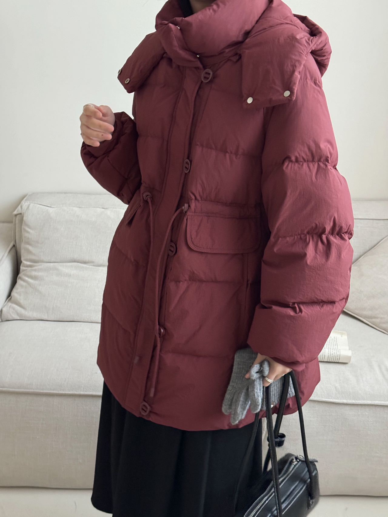 Jaqueta Mid-Length High-End de Penas de Pato Branco 90 para Mulheres 2024 Nova Cintura com Cordão Look Emagrecedor Jaqueta Pequena Moderna