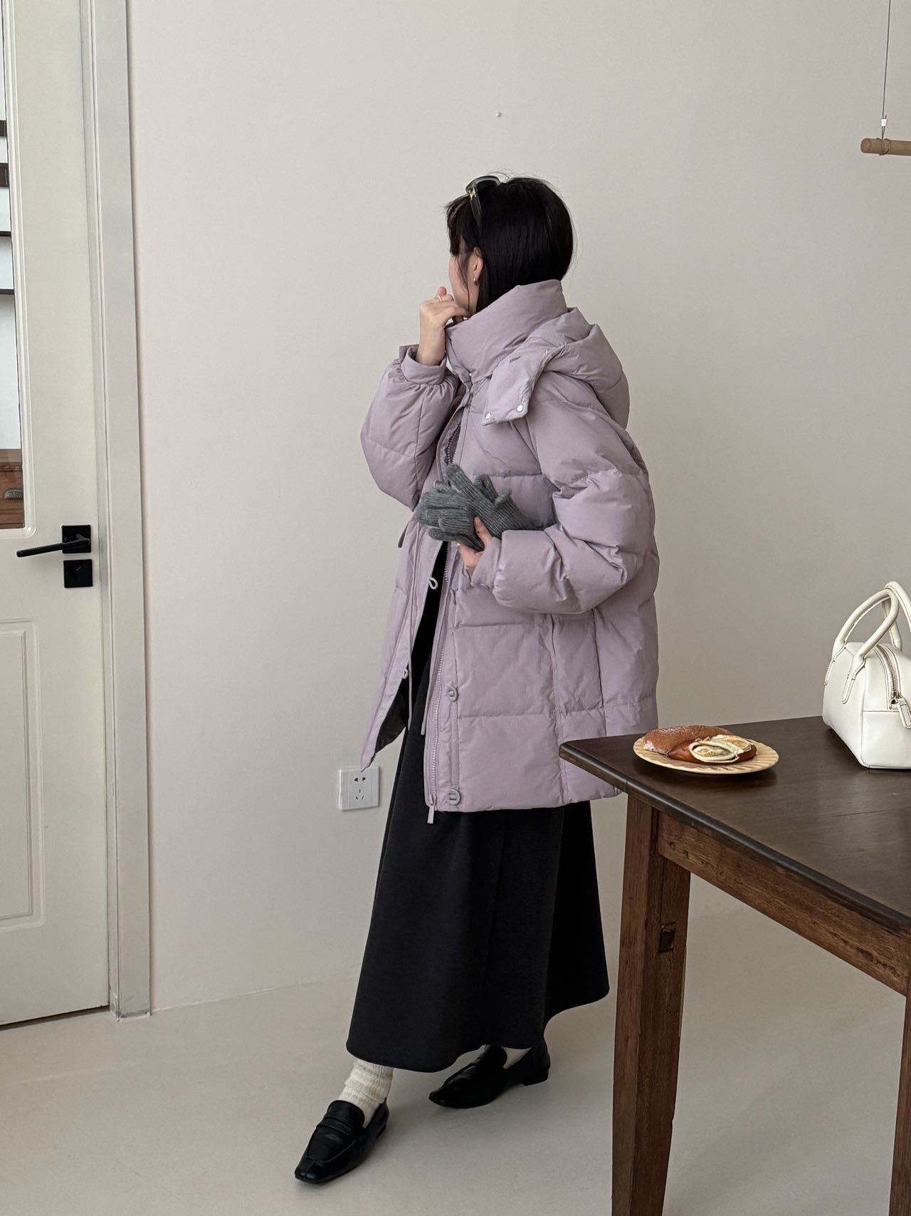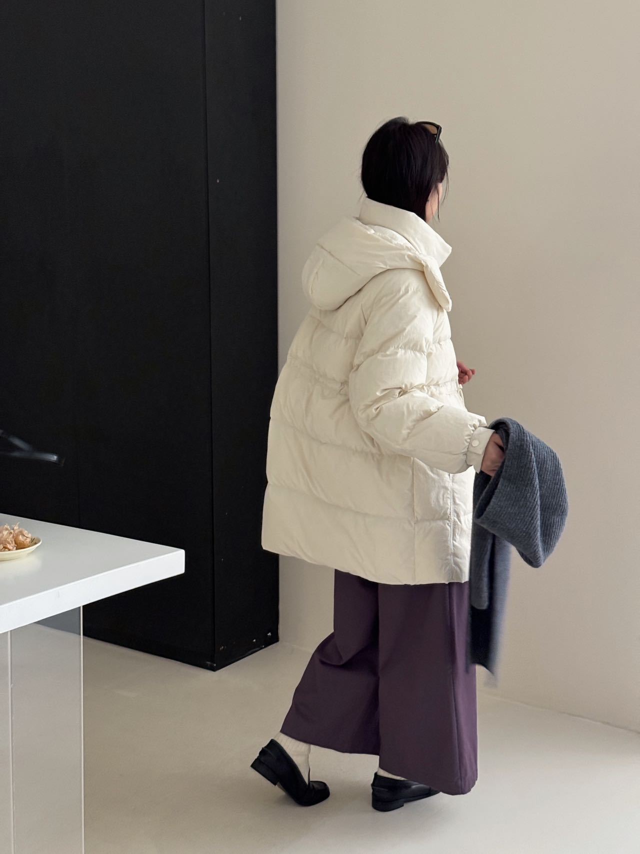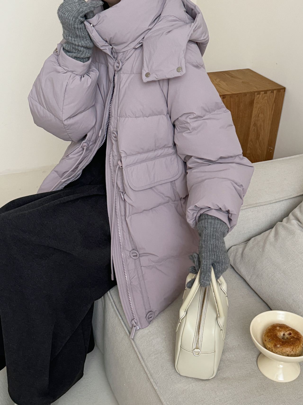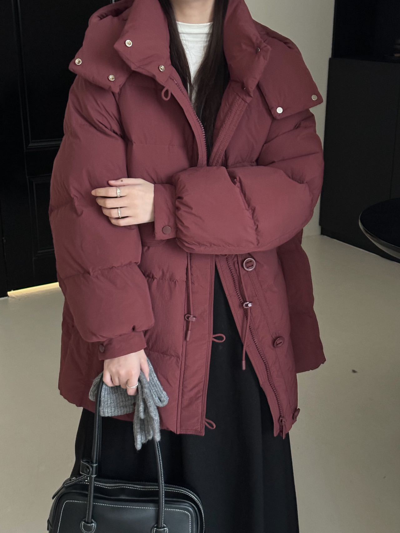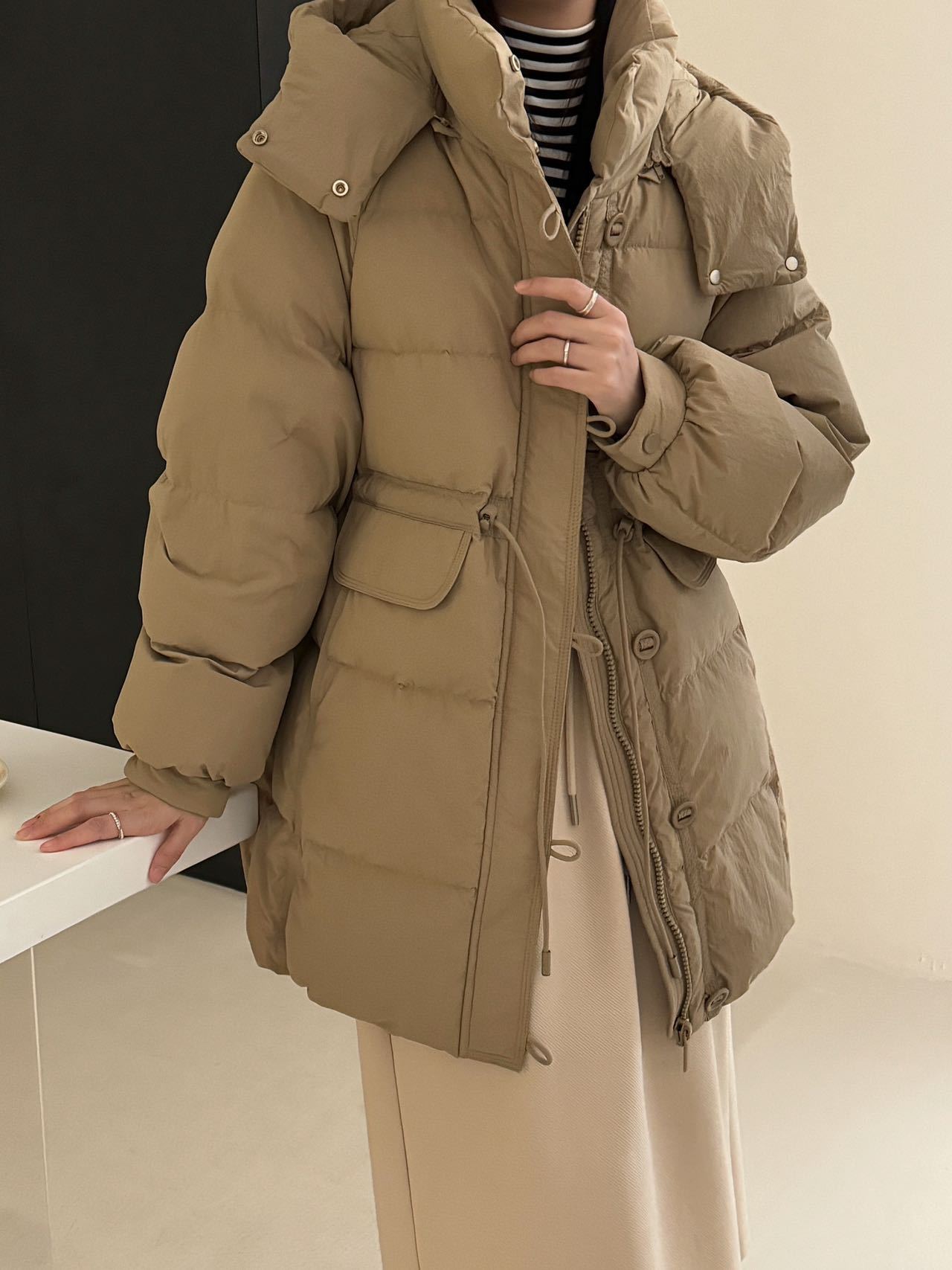 Jaqueta Mid-Length High-End de Penas de Pato Branco 90 para Mulheres 2024 Nova Cintura com Cordão Look Emagrecedor Jaqueta Pequena Moderna