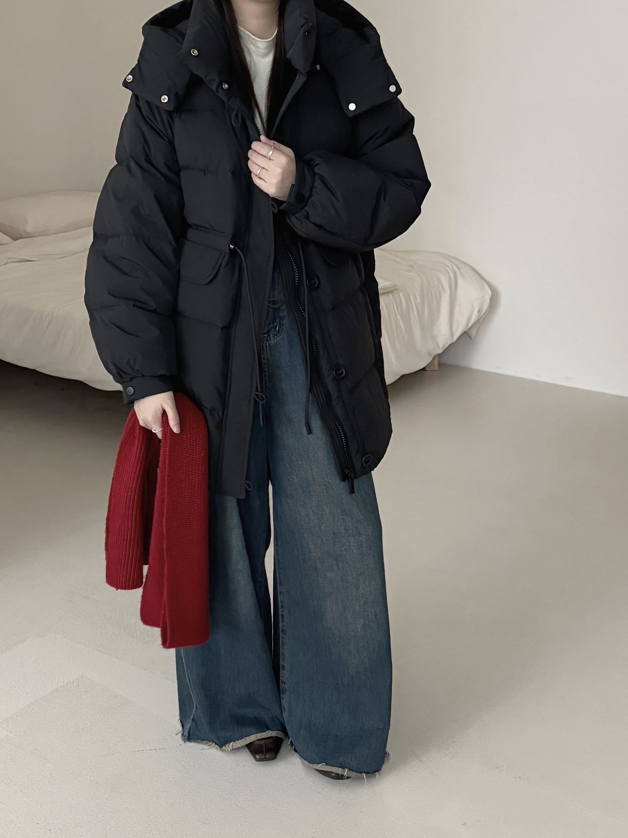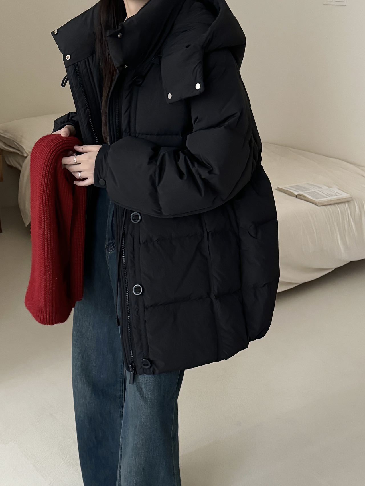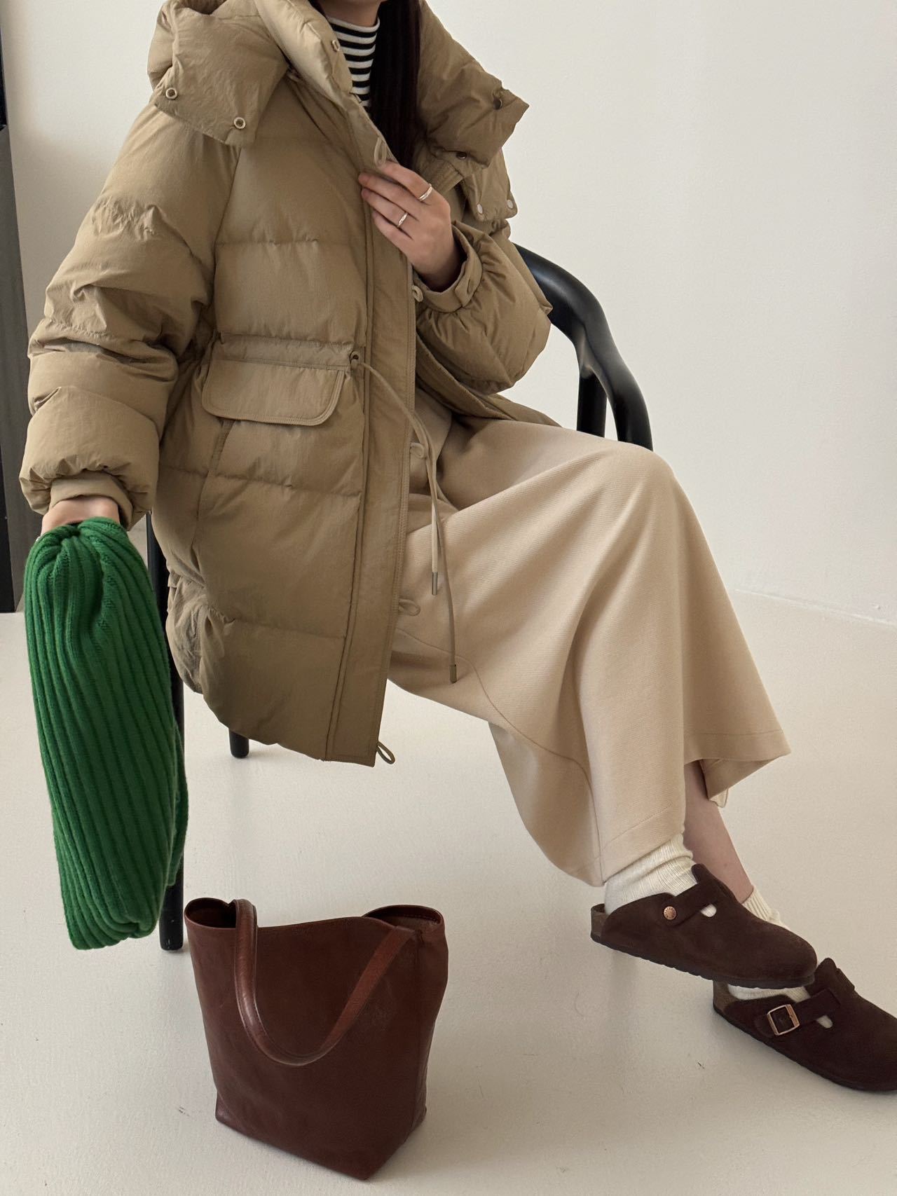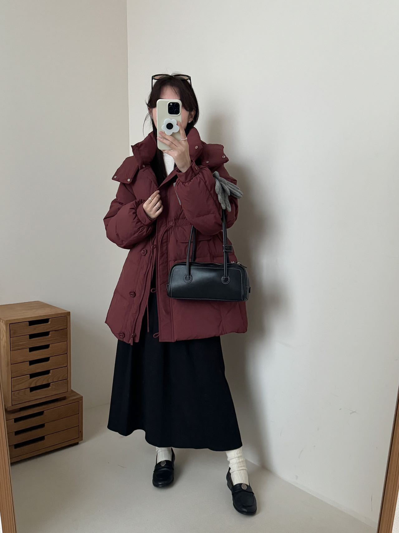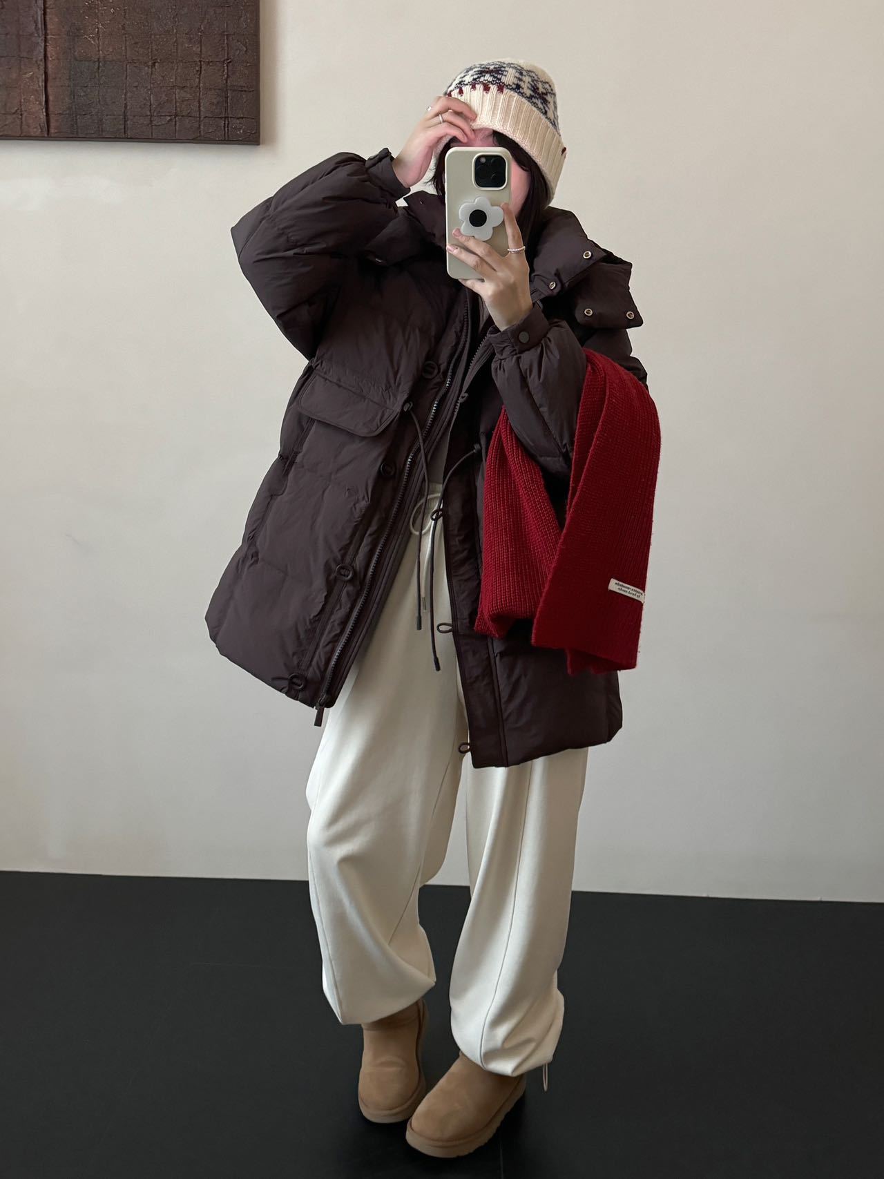 Jaqueta Mid-Length High-End de Penas de Pato Branco 90 para Mulheres 2024 Nova Cintura com Cordão Look Emagrecedor Jaqueta Pequena Moderna