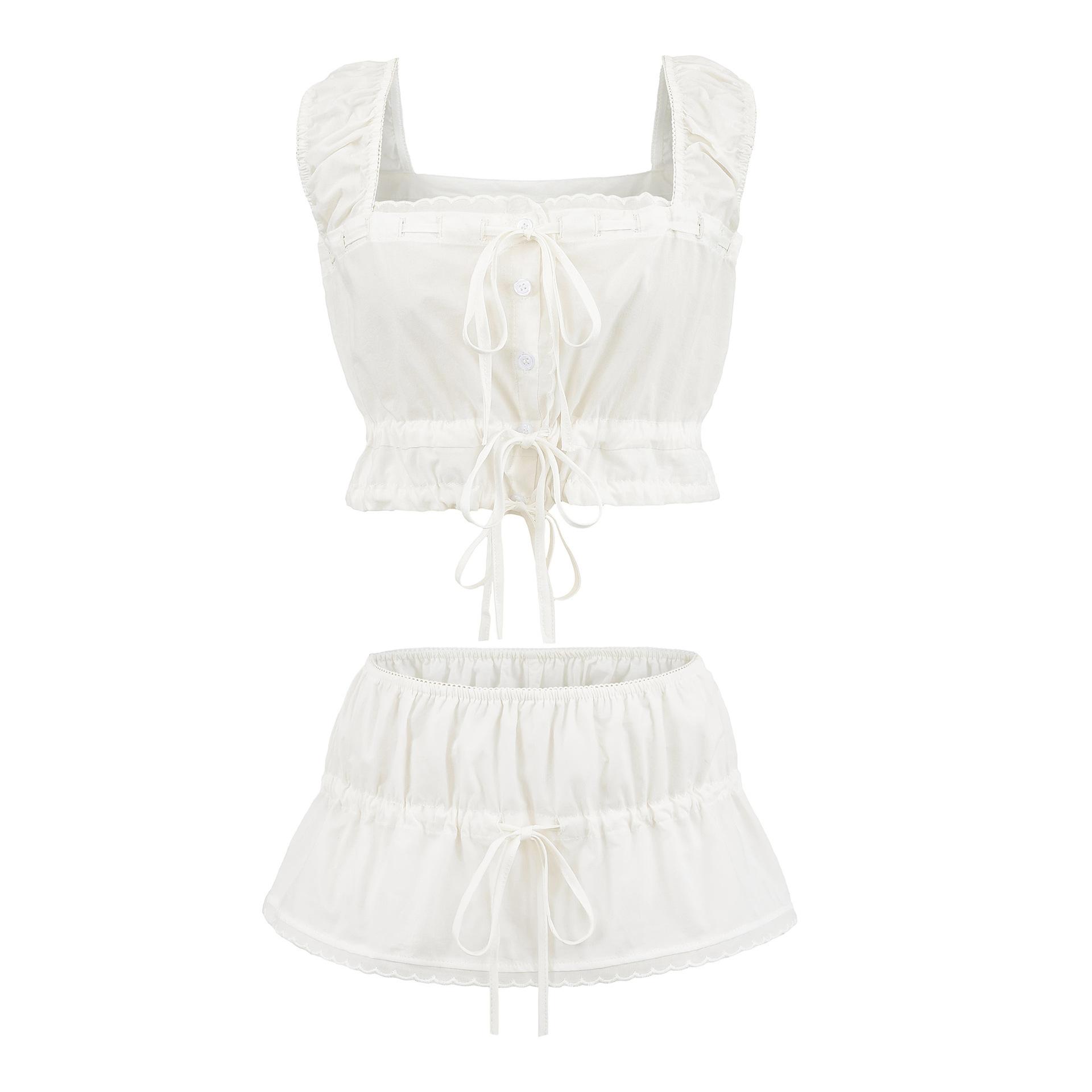 Roupa Europeia e Americana Transfronteiriça 2025 Primavera Novo Design Colete com Laço + Saia Doce Elástica