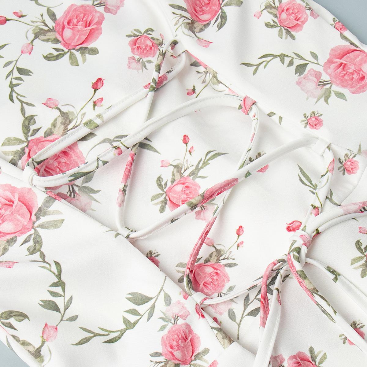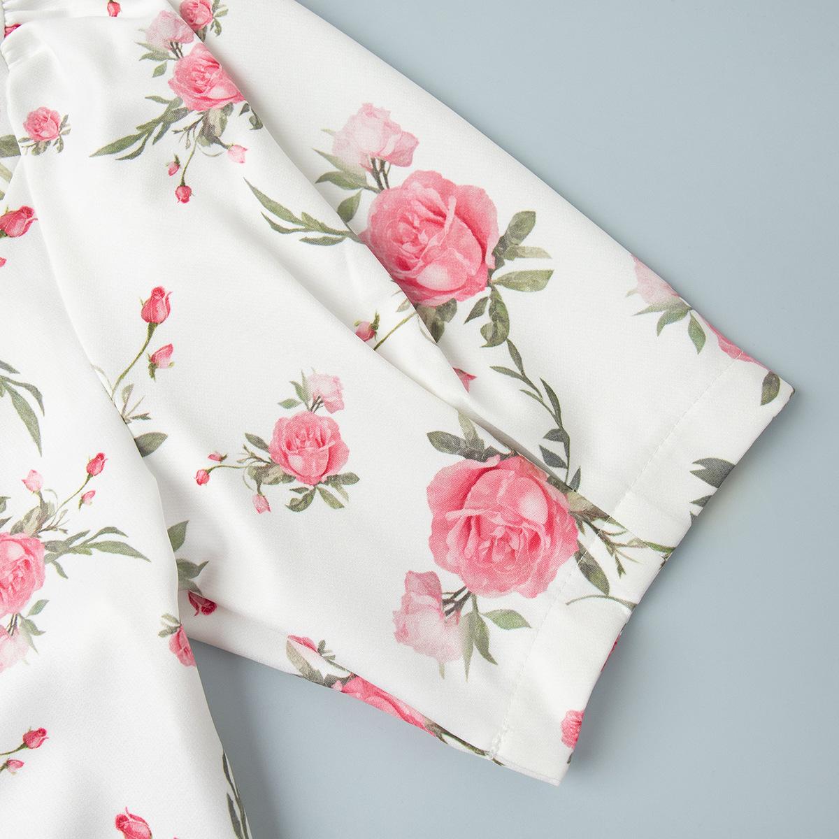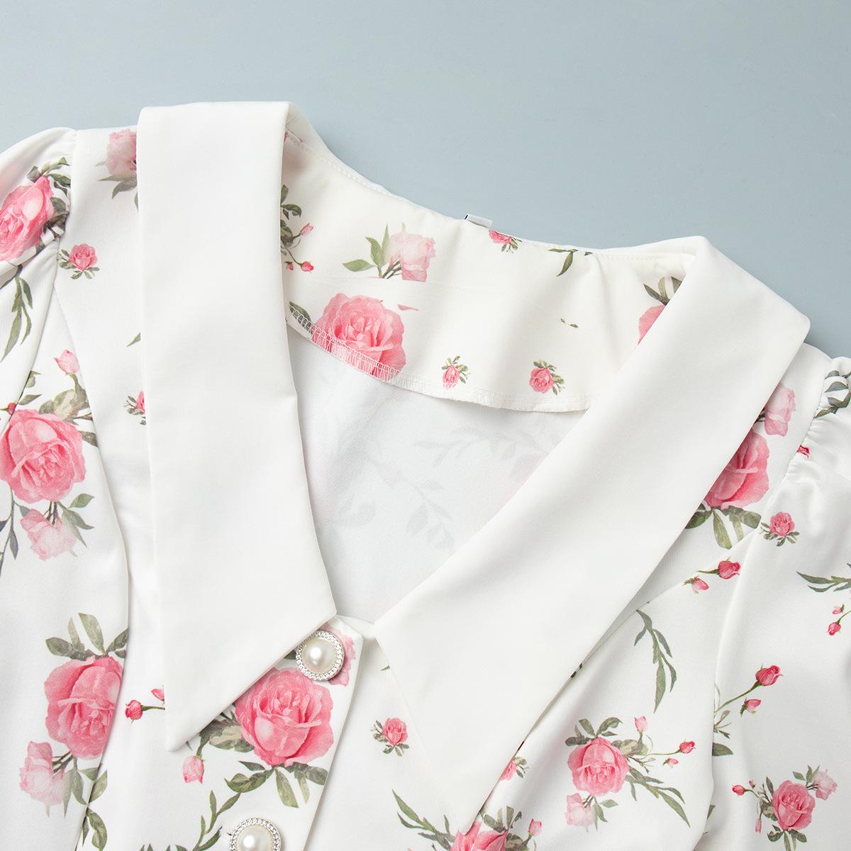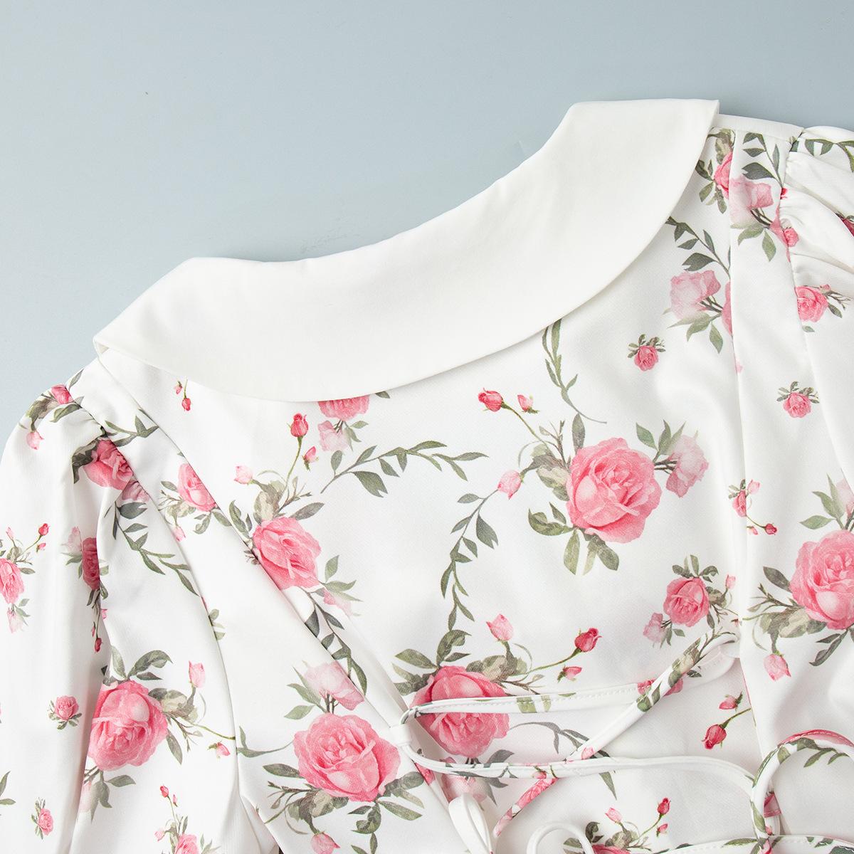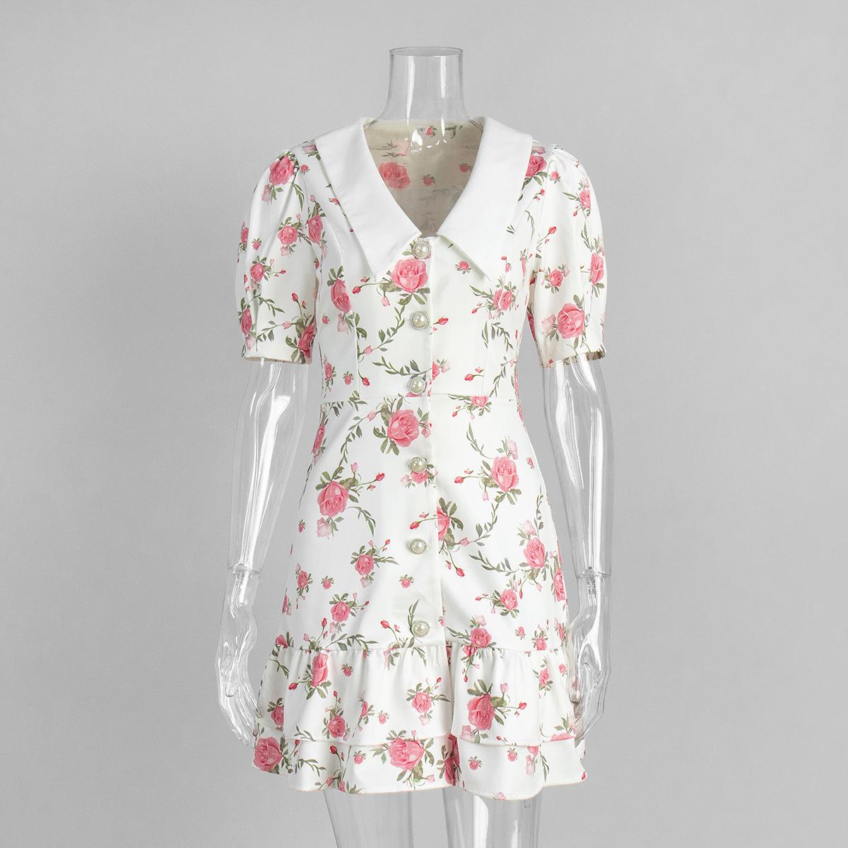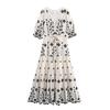 Vestido transfronteiriço francês com decote em V e manga bufante Europeu e americano 2025 Verão Cintura Saia estampada Vestido com babados