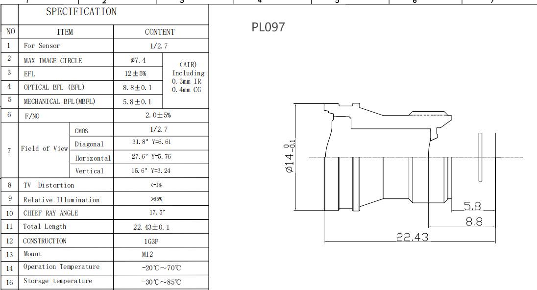 Lente de 12mm três milhões de alta resolução baixa distorção longa distância focal lente de máquina de placa única 1/2,7 polegadas lente de câmera de vigilância