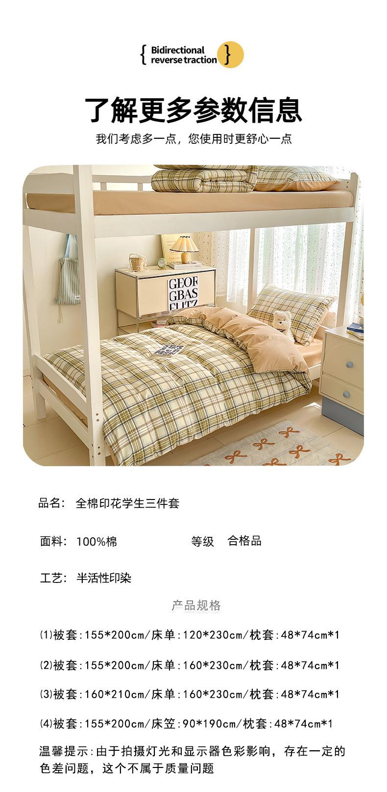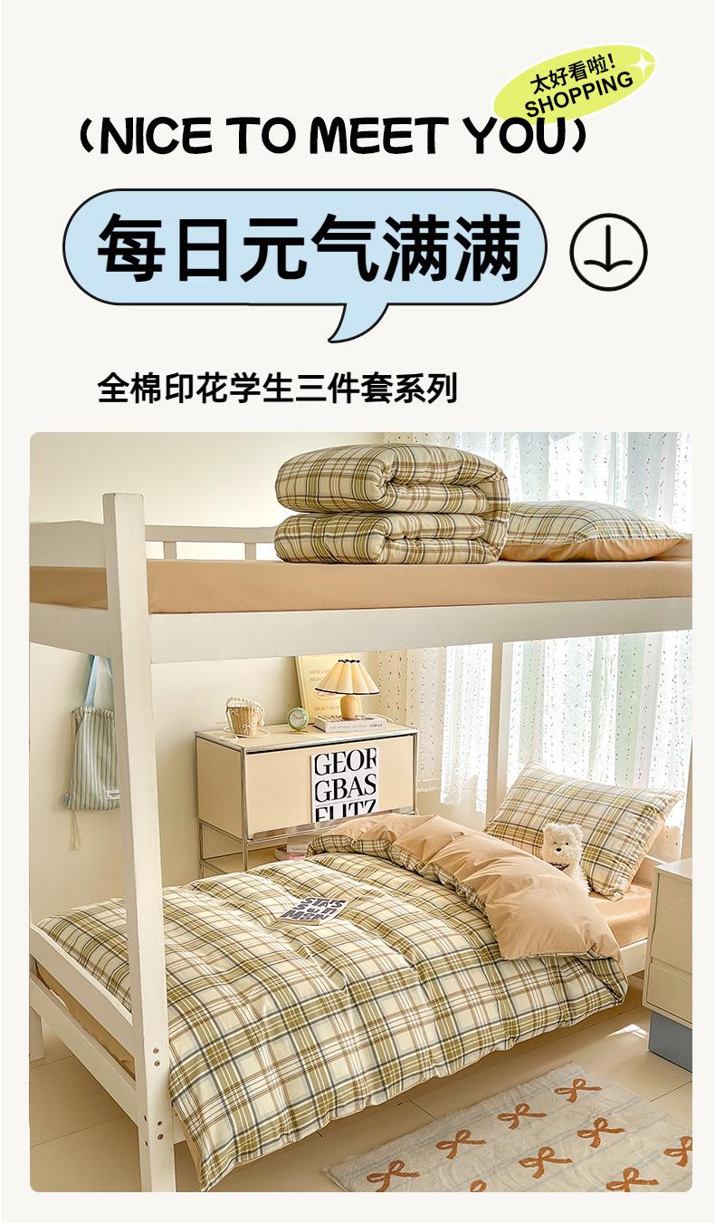 Conjunto de Cama Simples de Verão de Três Peças para Dormitório de Faculdade Lençóis de Algodão Puro, Capa de Edredom, Lençóis de Elástico, Conjunto de Cama de Seis Peças