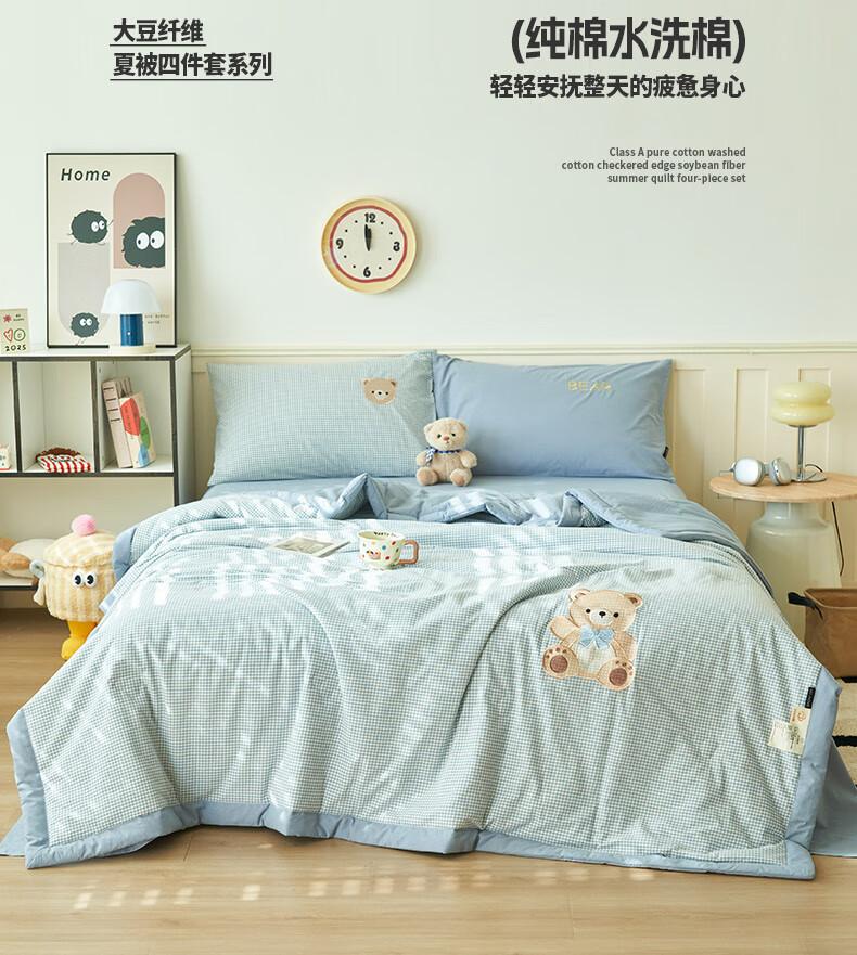 Edredom de Verão de Fibra de Soja Algodão Edredom de Verão Dormitório Solteiro Casal Verão Desenho Animado Fino Edredom para Ar Condicionado Lavável à Máquina