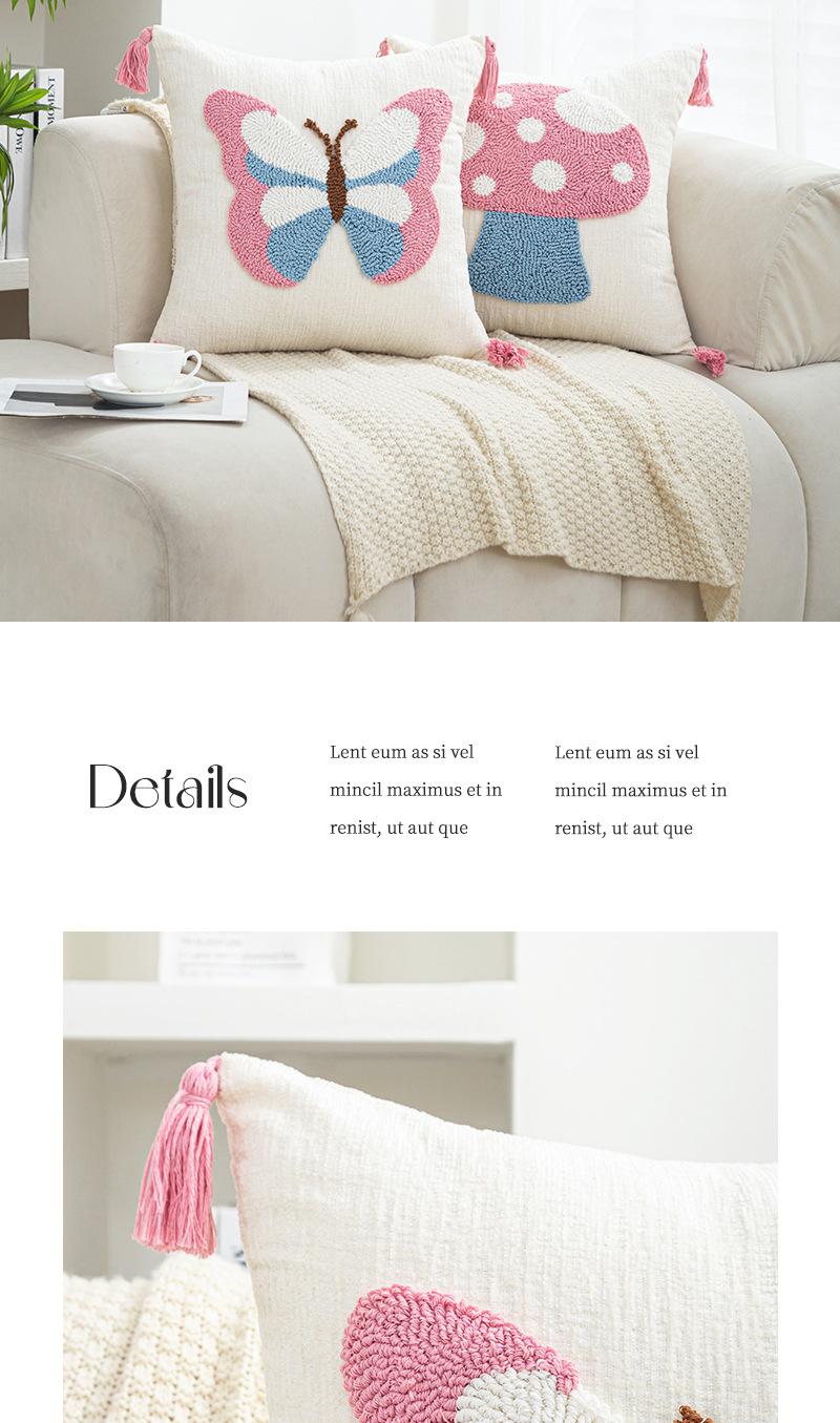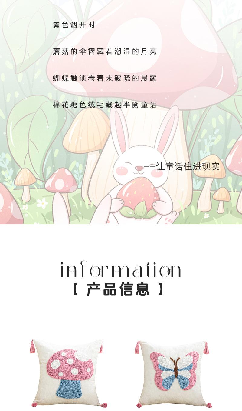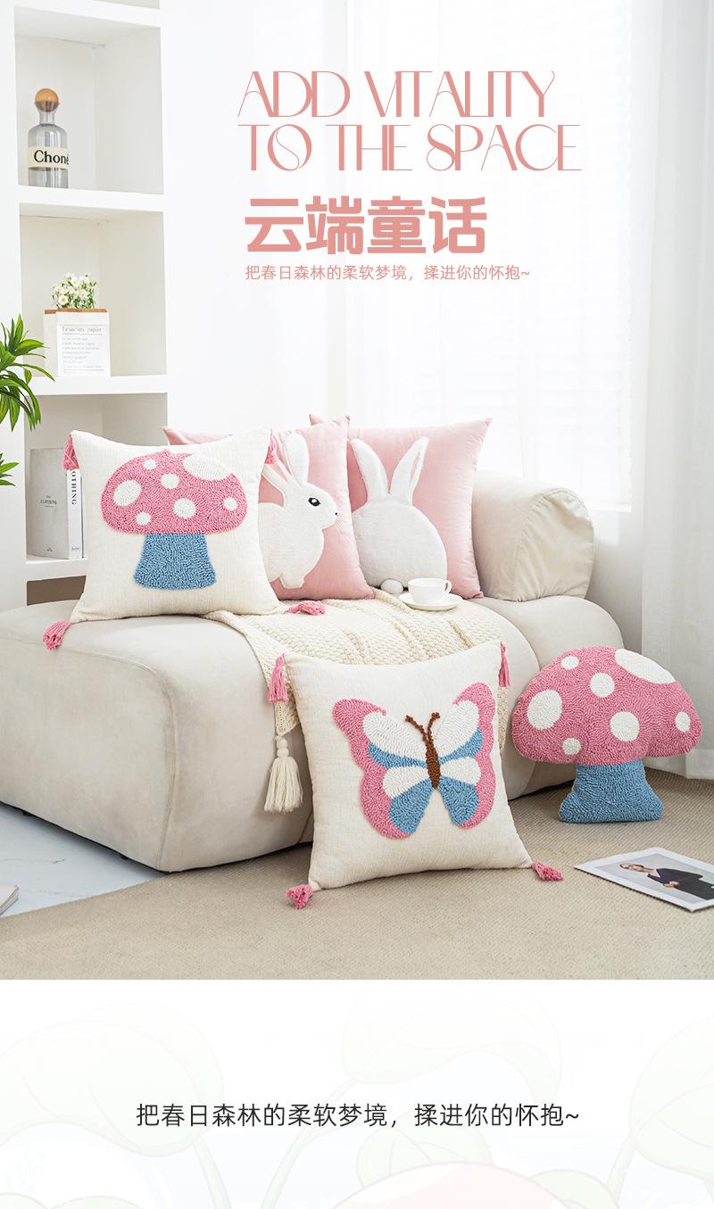 Almofada Estilo Nórdico Ins Cogumelo Borboleta Moderno Almofada de Sofá para Sala de Estar Elemento de Desenho Animado Fronha Almofada de Cama