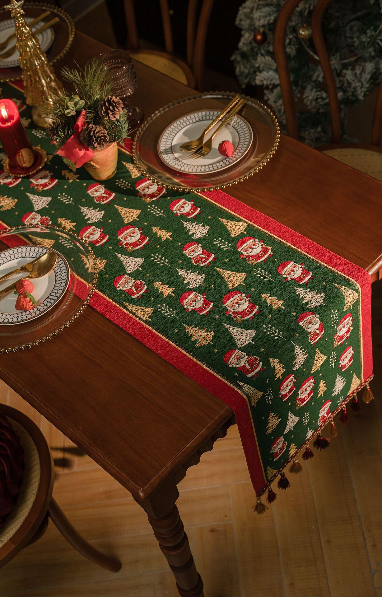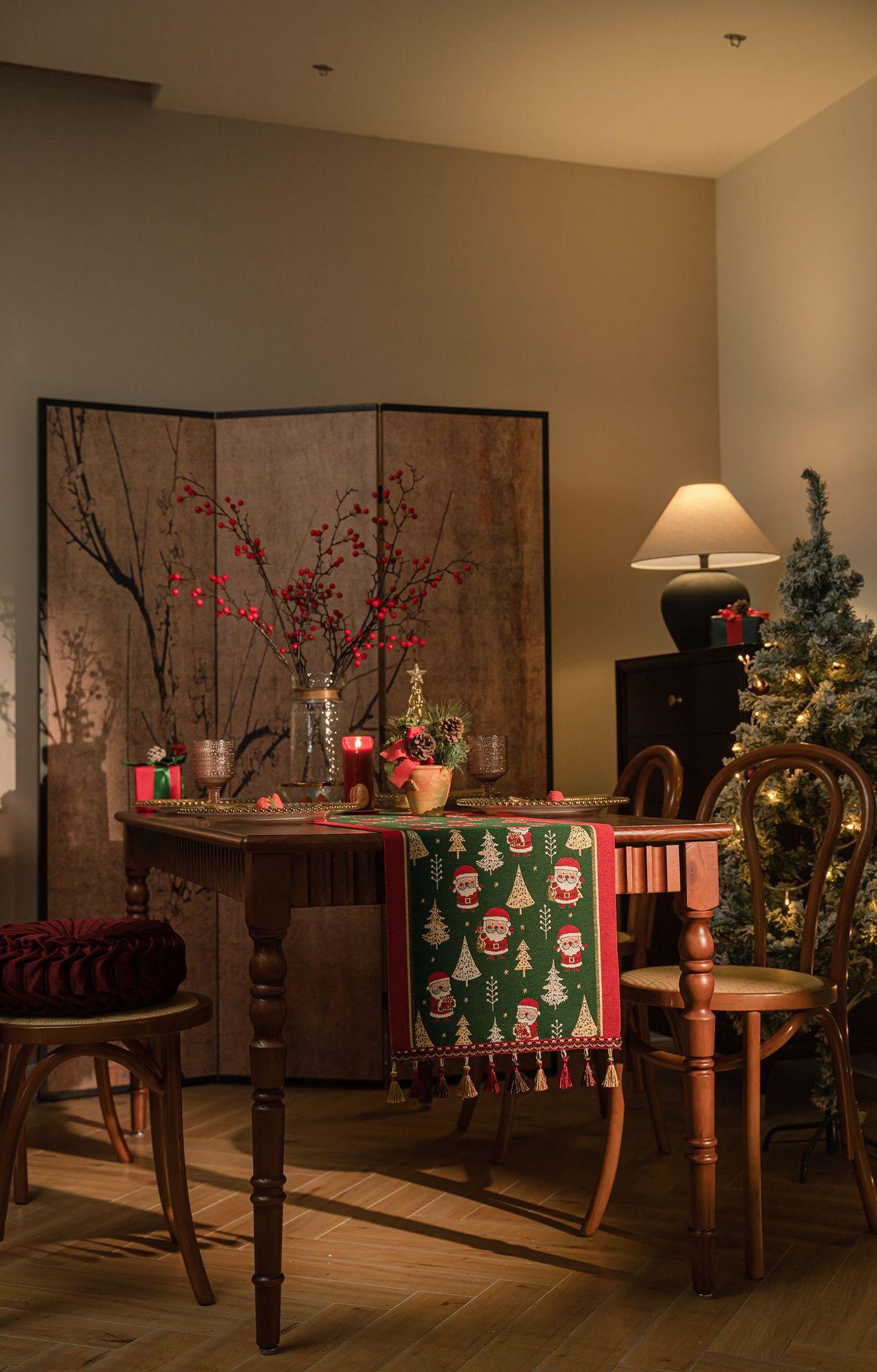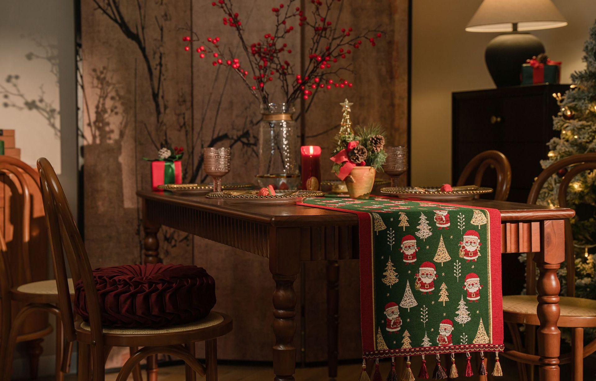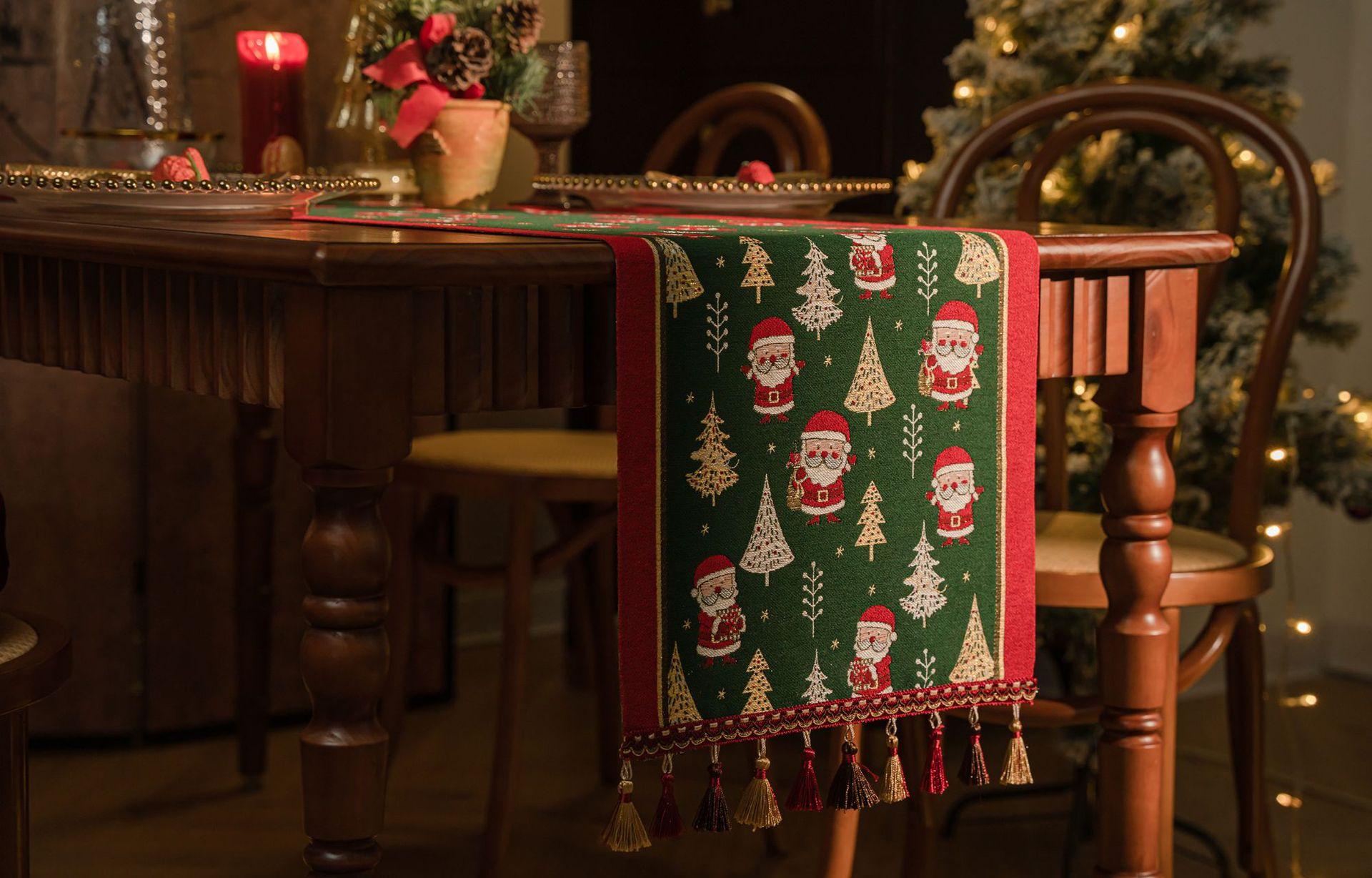 Caminho de Mesa Jacquard Tingido em Fio de Natal Transfronteiriço Americano Retrô Decoração de Restaurante de Natal Tecido de Cobertura com Franjas Bandeira para Aparador/Pé de Cama