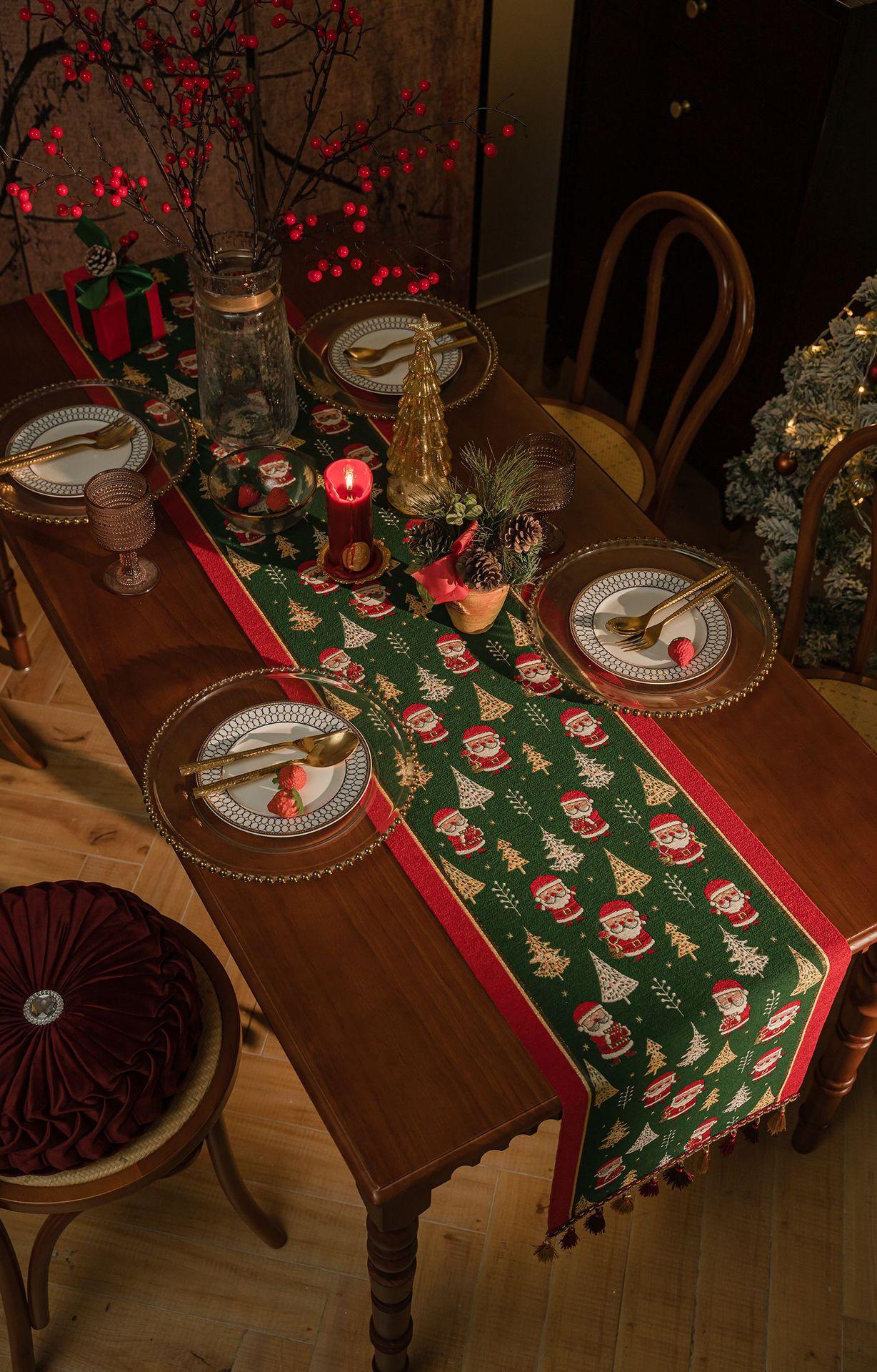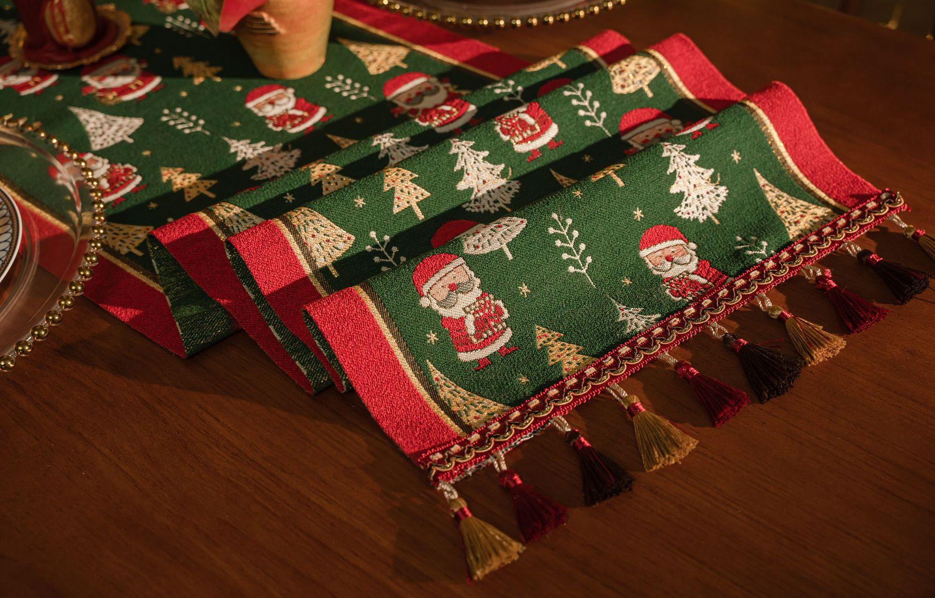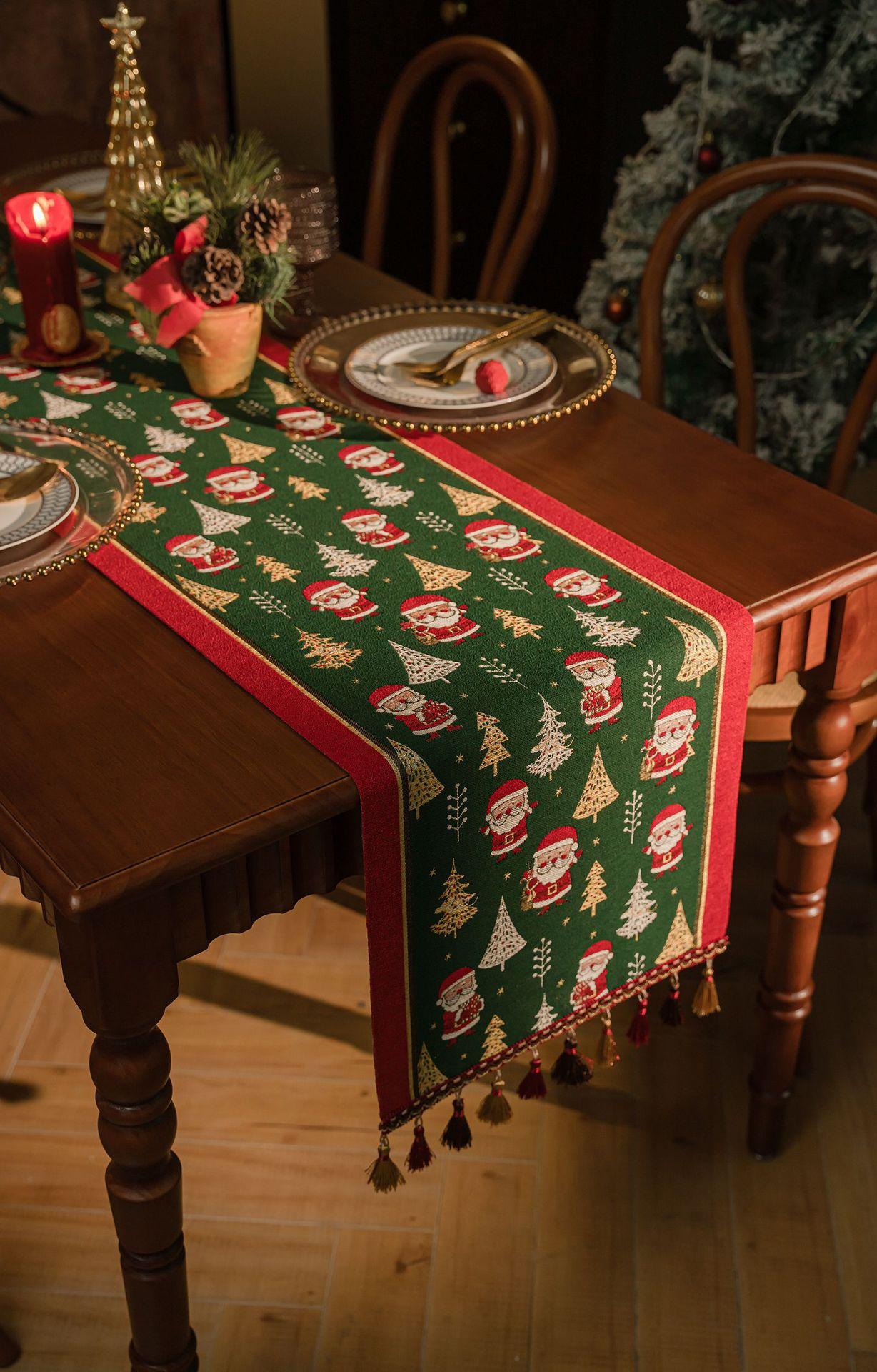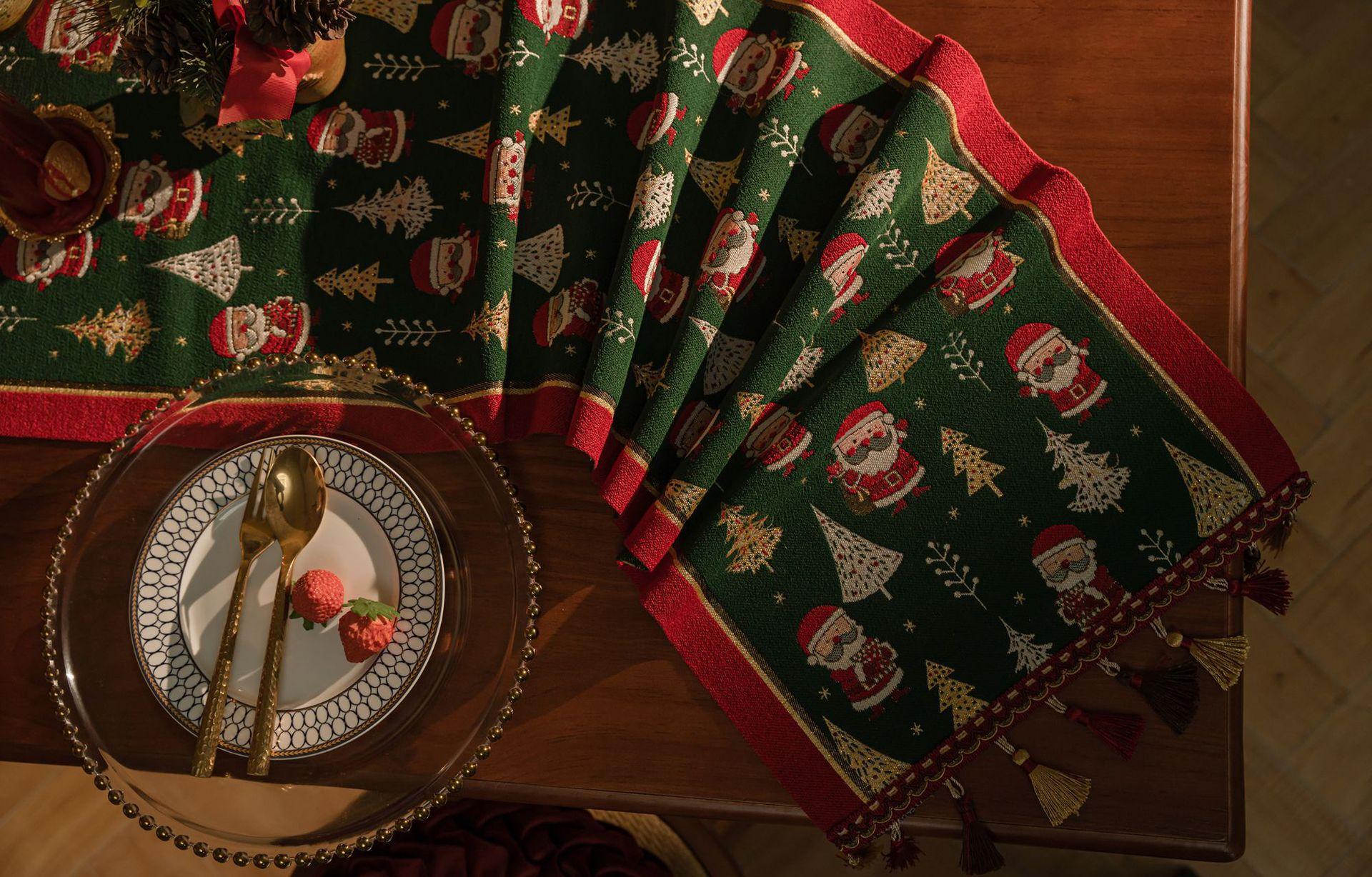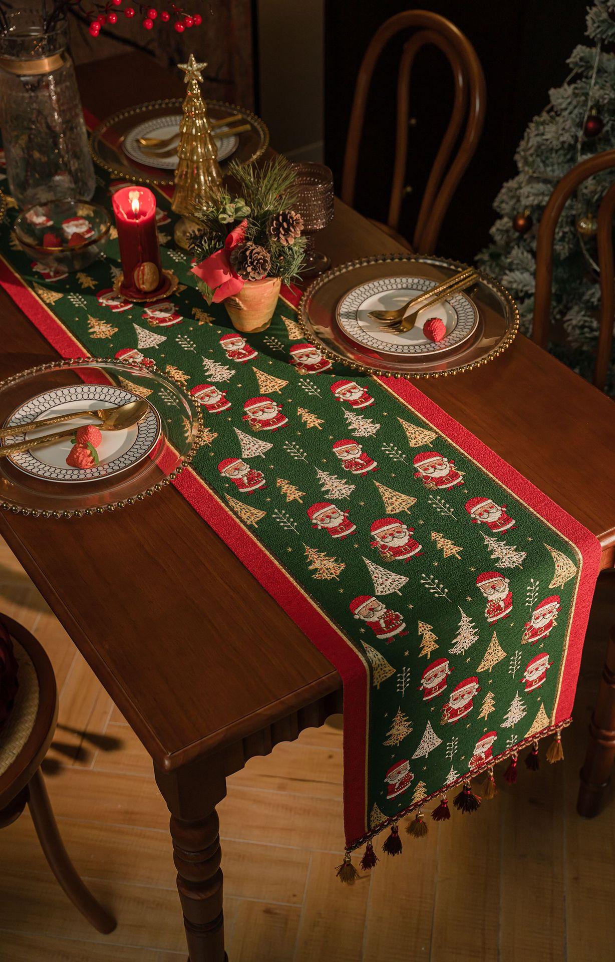 Caminho de Mesa Jacquard Tingido em Fio de Natal Transfronteiriço Americano Retrô Decoração de Restaurante de Natal Tecido de Cobertura com Franjas Bandeira para Aparador/Pé de Cama