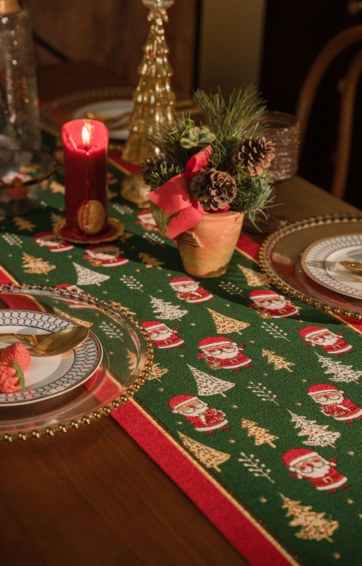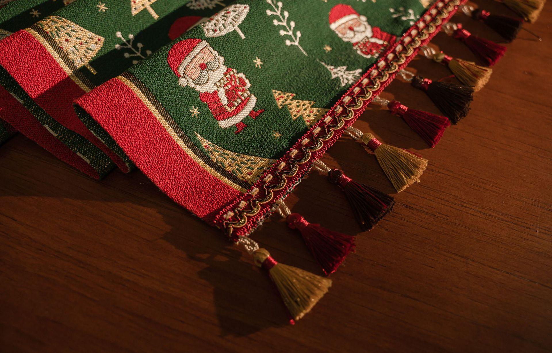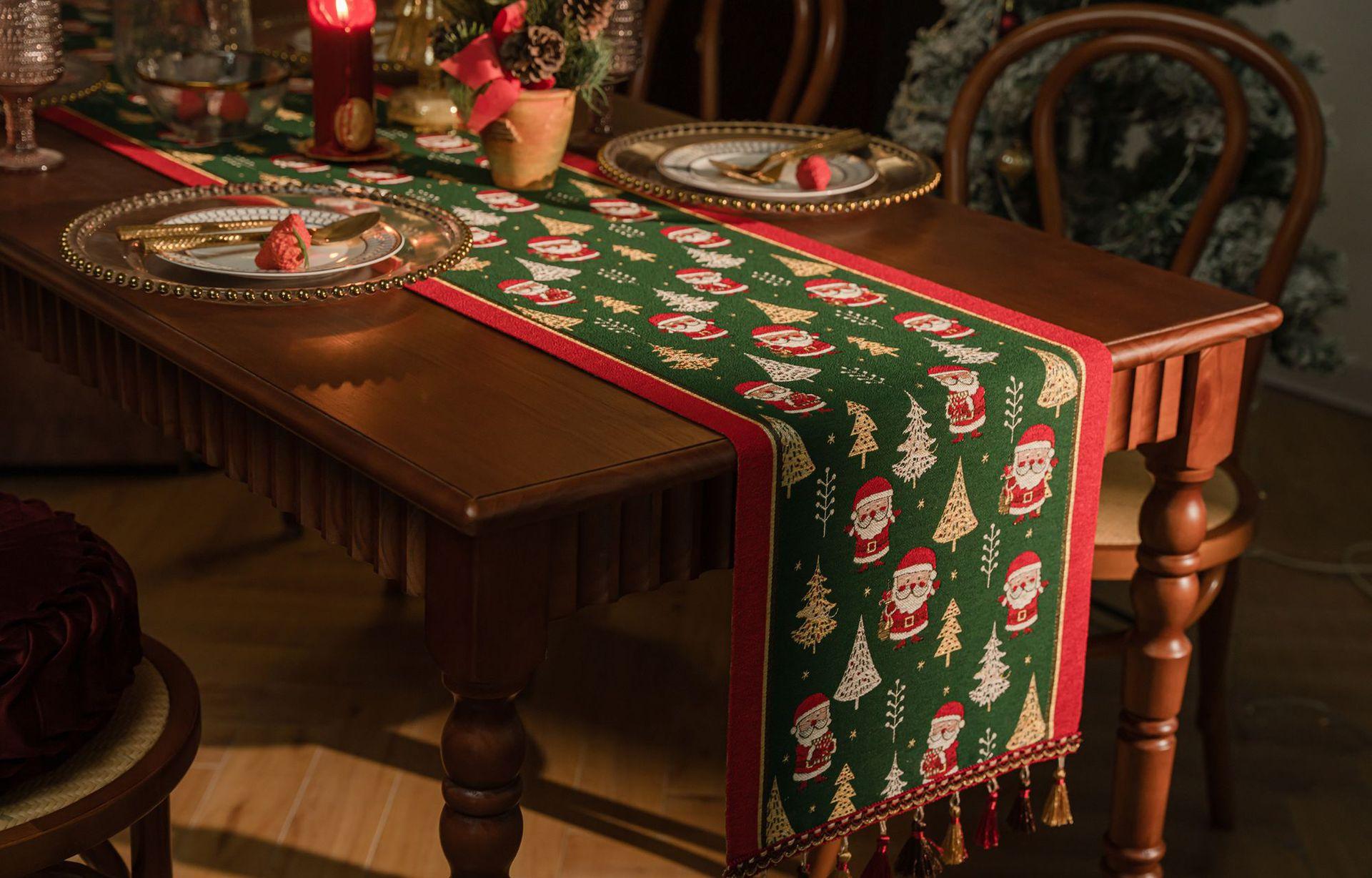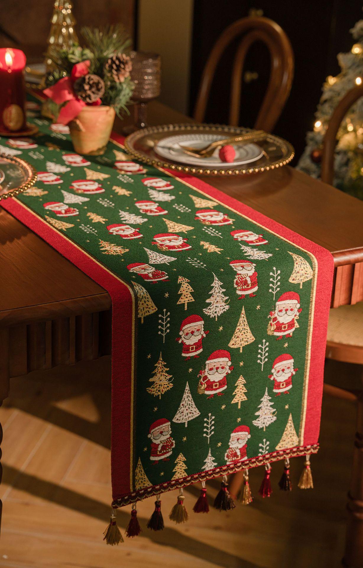 Caminho de Mesa Jacquard Tingido em Fio de Natal Transfronteiriço Americano Retrô Decoração de Restaurante de Natal Tecido de Cobertura com Franjas Bandeira para Aparador/Pé de Cama