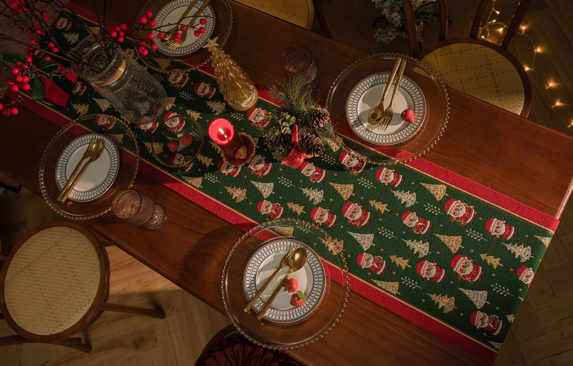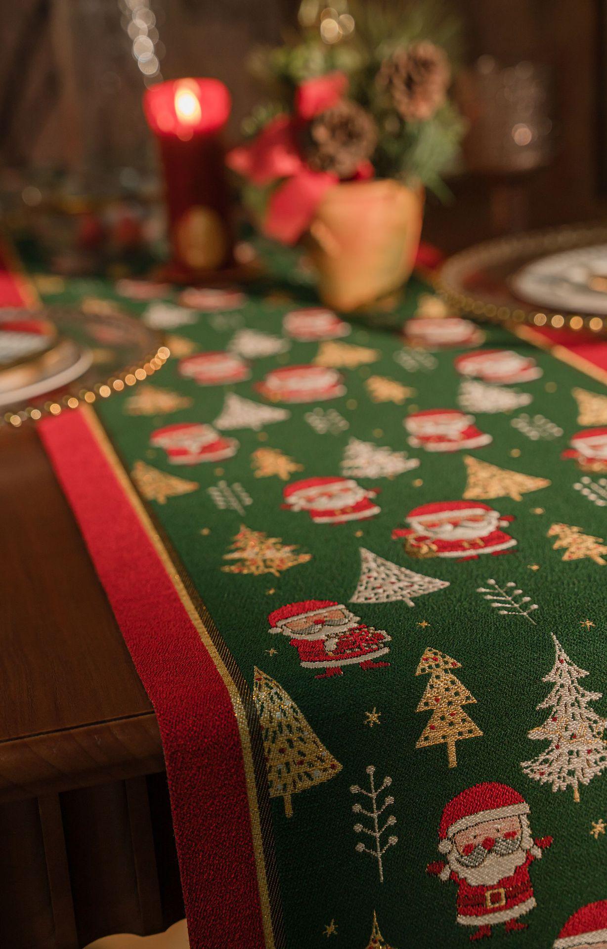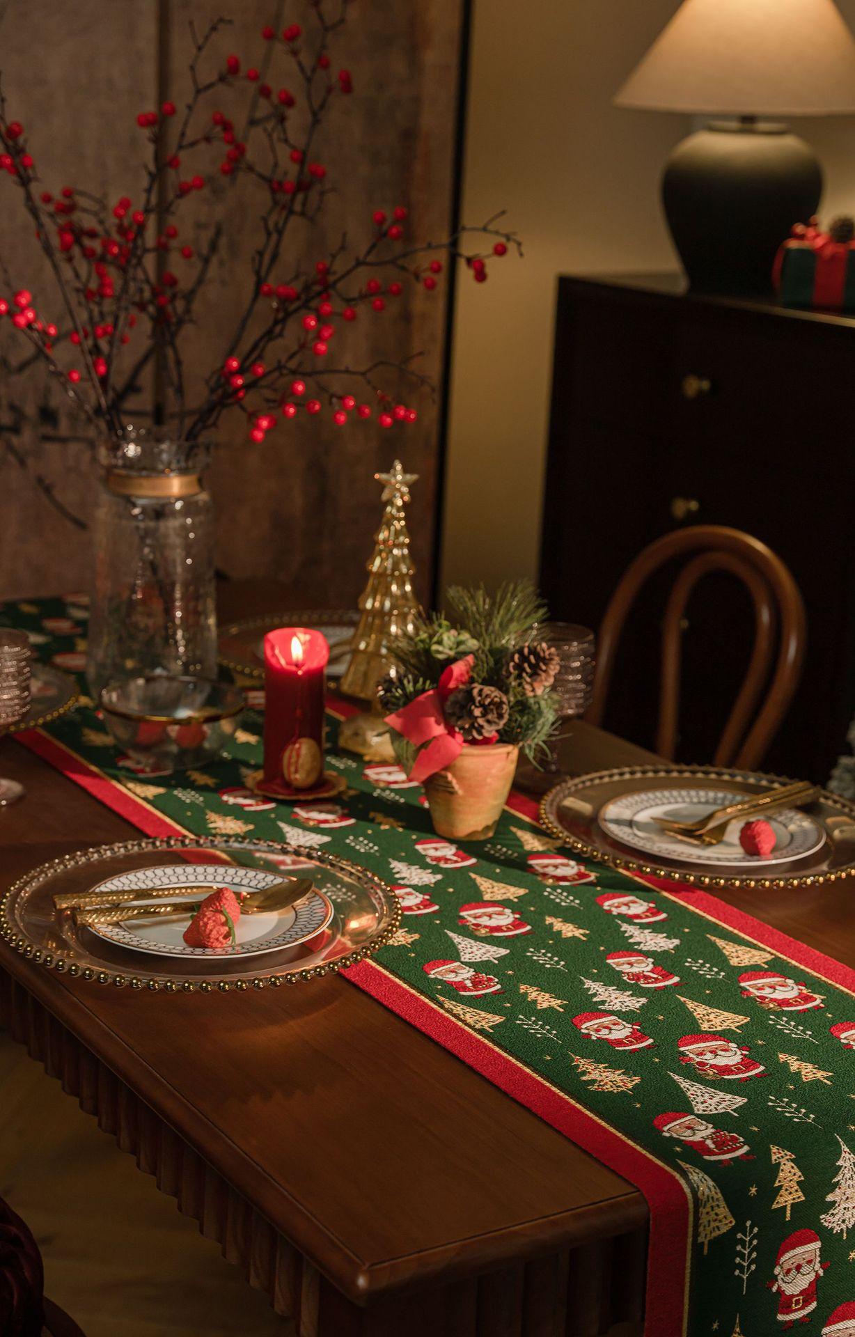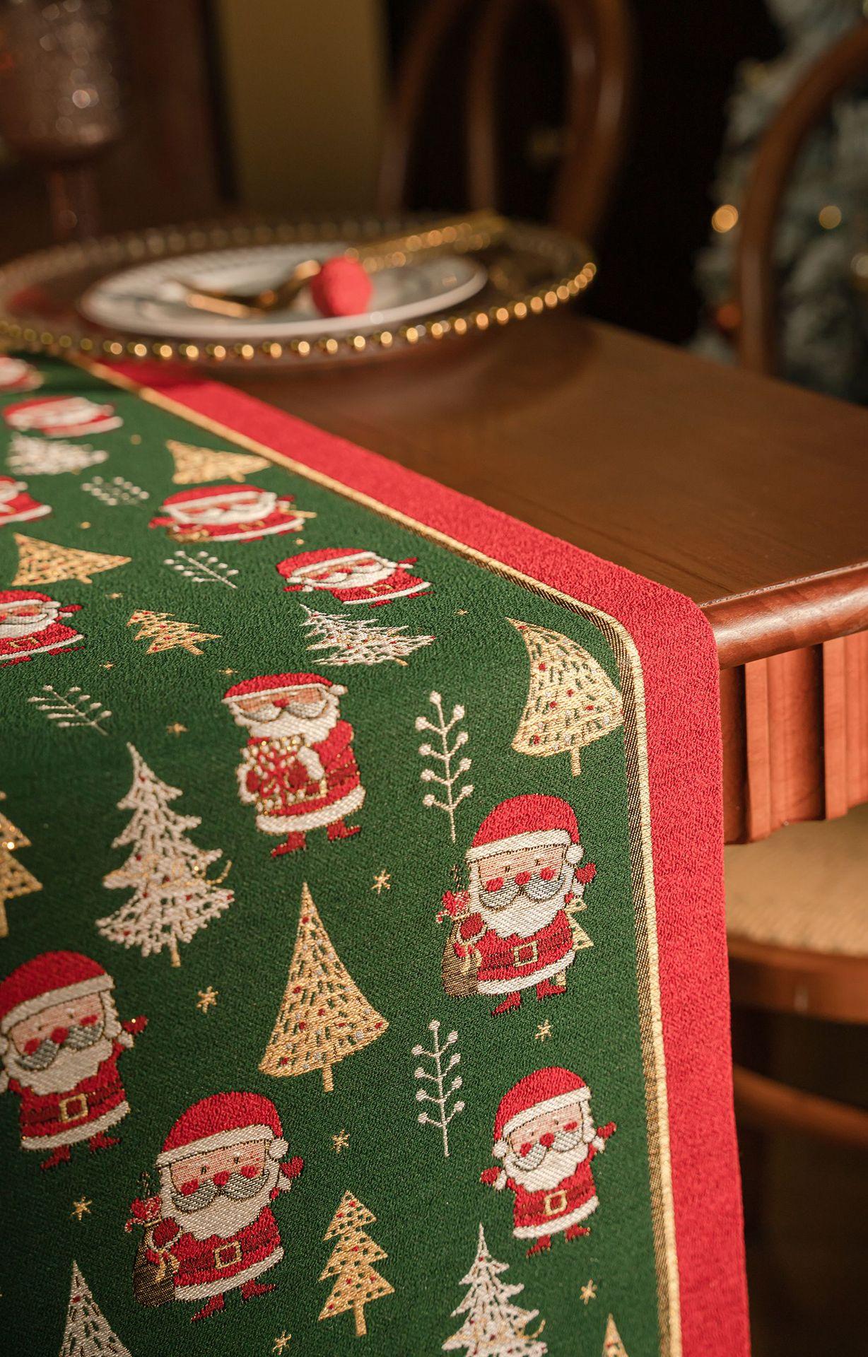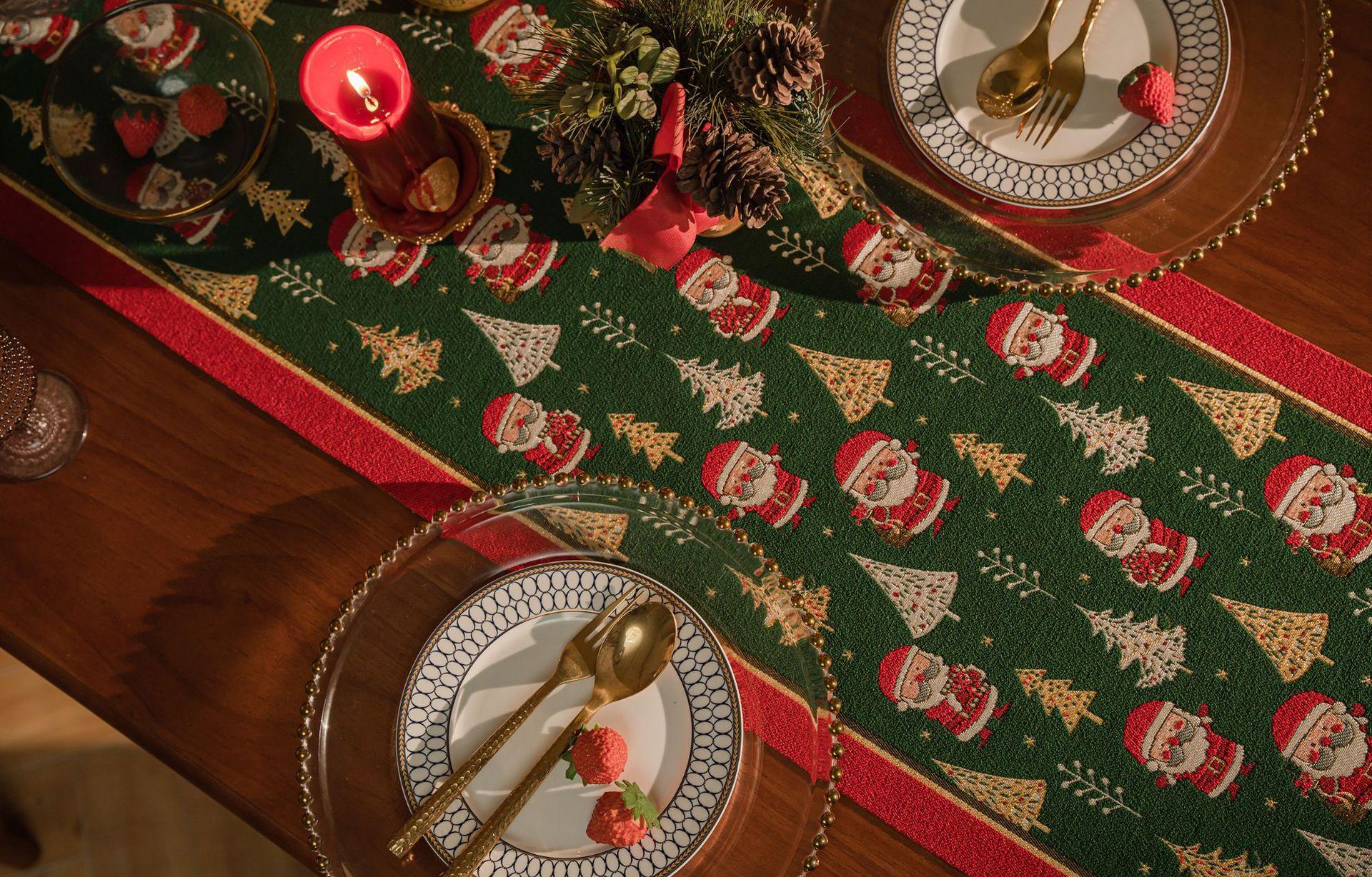 Caminho de Mesa Jacquard Tingido em Fio de Natal Transfronteiriço Americano Retrô Decoração de Restaurante de Natal Tecido de Cobertura com Franjas Bandeira para Aparador/Pé de Cama