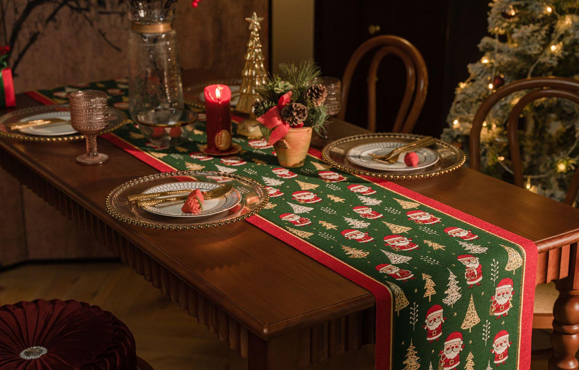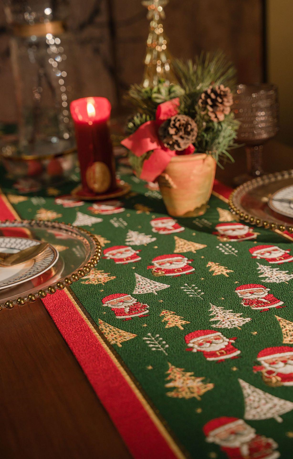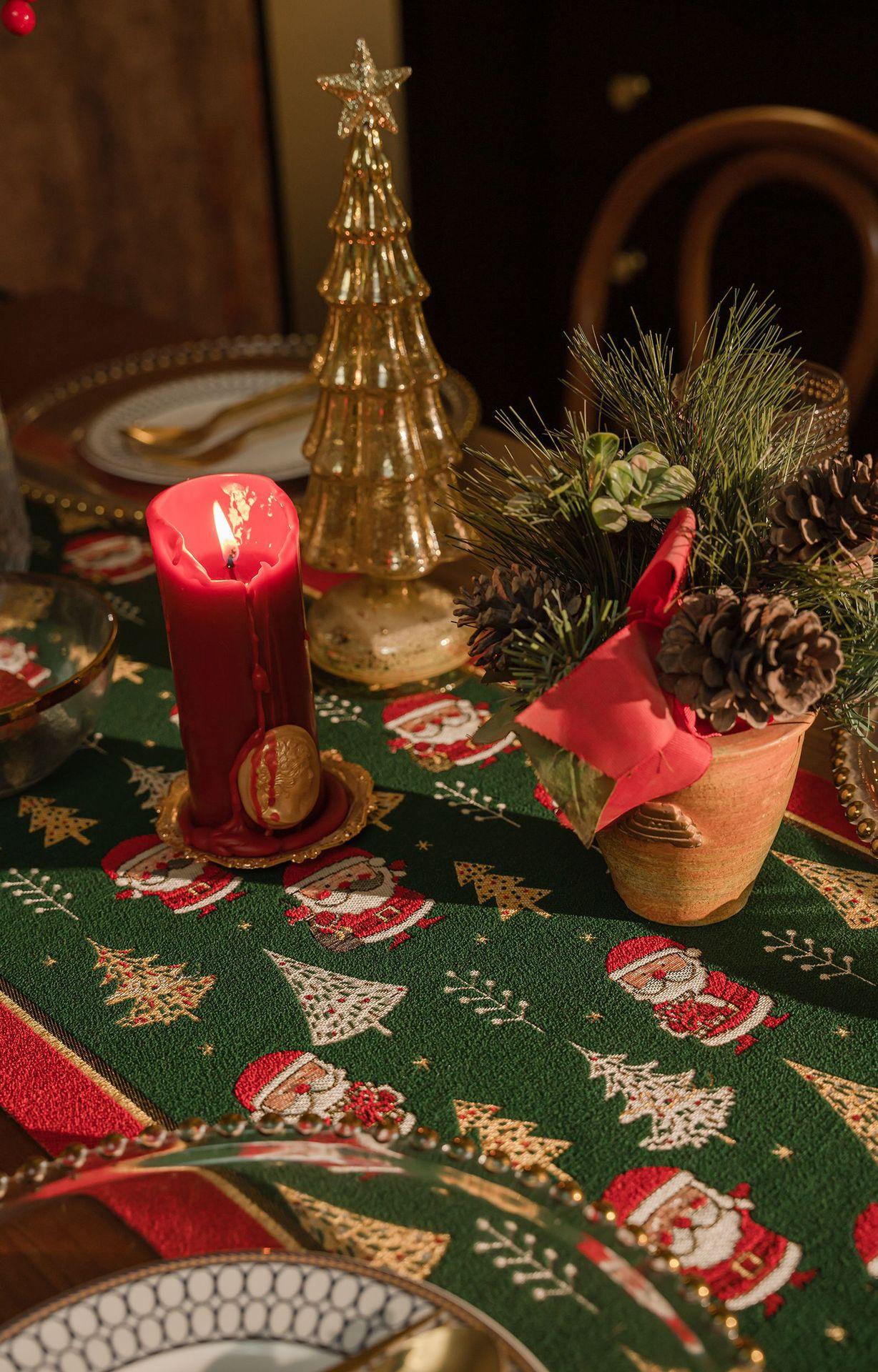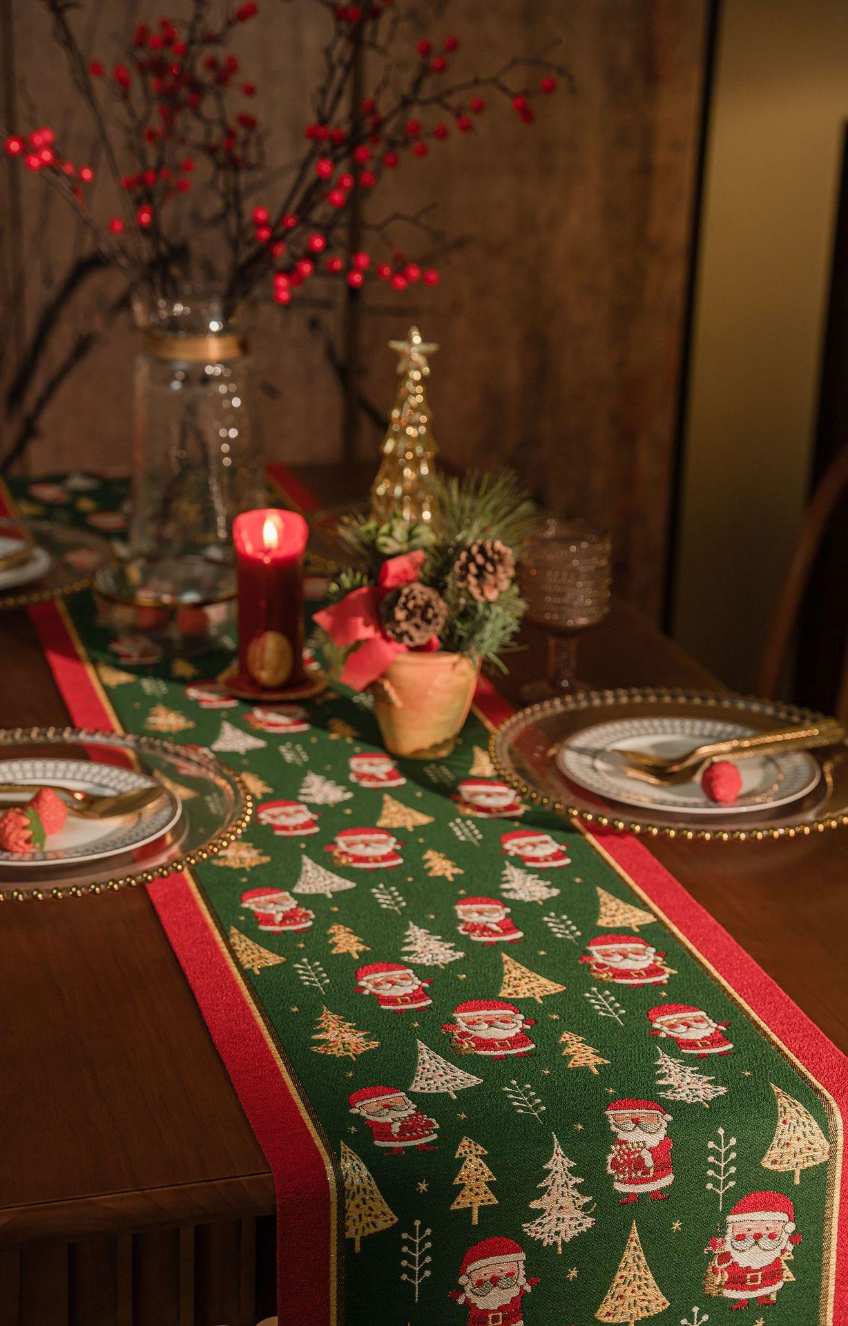 Caminho de Mesa Jacquard Tingido em Fio de Natal Transfronteiriço Americano Retrô Decoração de Restaurante de Natal Tecido de Cobertura com Franjas Bandeira para Aparador/Pé de Cama