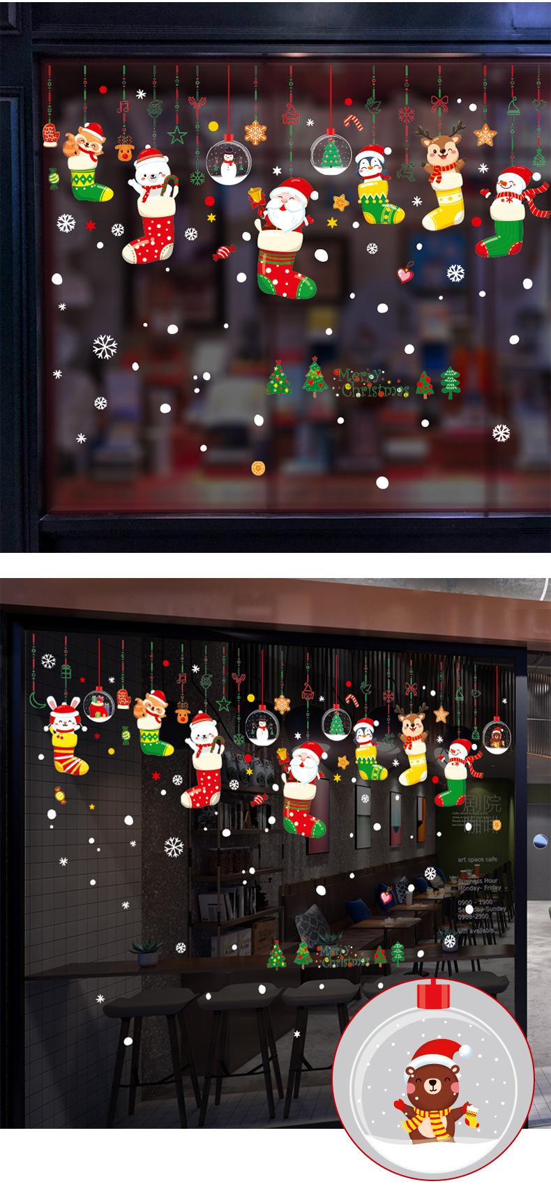 Decoração de Natal 2025 Adesivo de Porta de Vidro Papai Noel Atmosfera Festiva Layout de Cena Adesivo Eletrostático de Janela