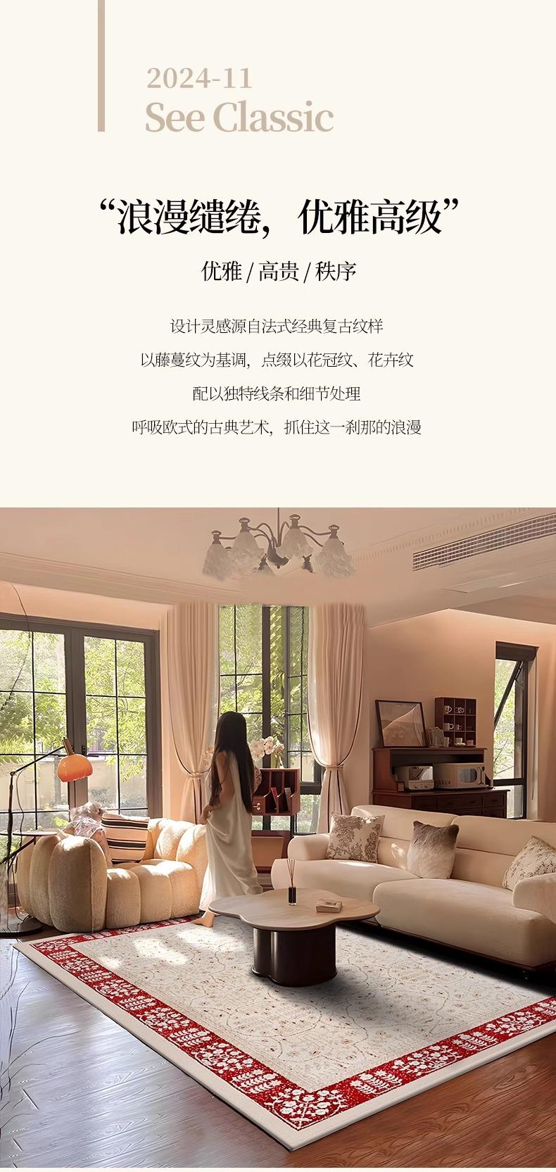 Tapete Novo Sala de Estar Sofá Tapete de Chão Francês Avançado Quarto Lavável Impermeável Doméstico Mesa de Centro Cabeceira Tapete Espessado