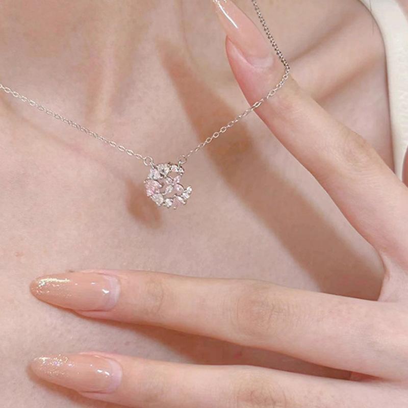 Colar de Lua de Coração de Sonho Leve de Luxo Nicho de Nicho de Pó Amor Clavícula Cadeia Pequena Fresca Doce Legal Elegante Coração Em Forma de Zircônia Colar Corrente
