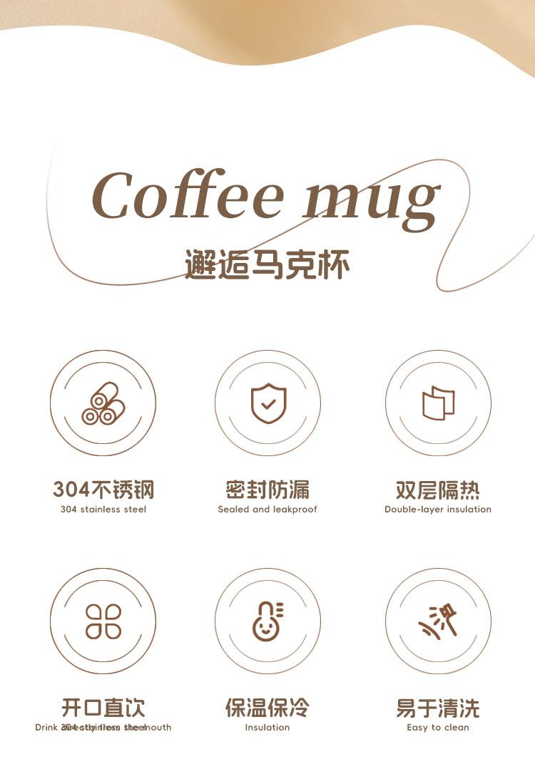 Copo de Café de Aço Inoxidável 304, Copo de Água, Caneca com Tampa, Copo com Canudo Bonito para Meninos e Meninas, com Colher, Pode Ser Usado como Logotipo