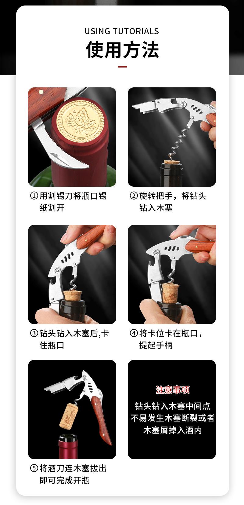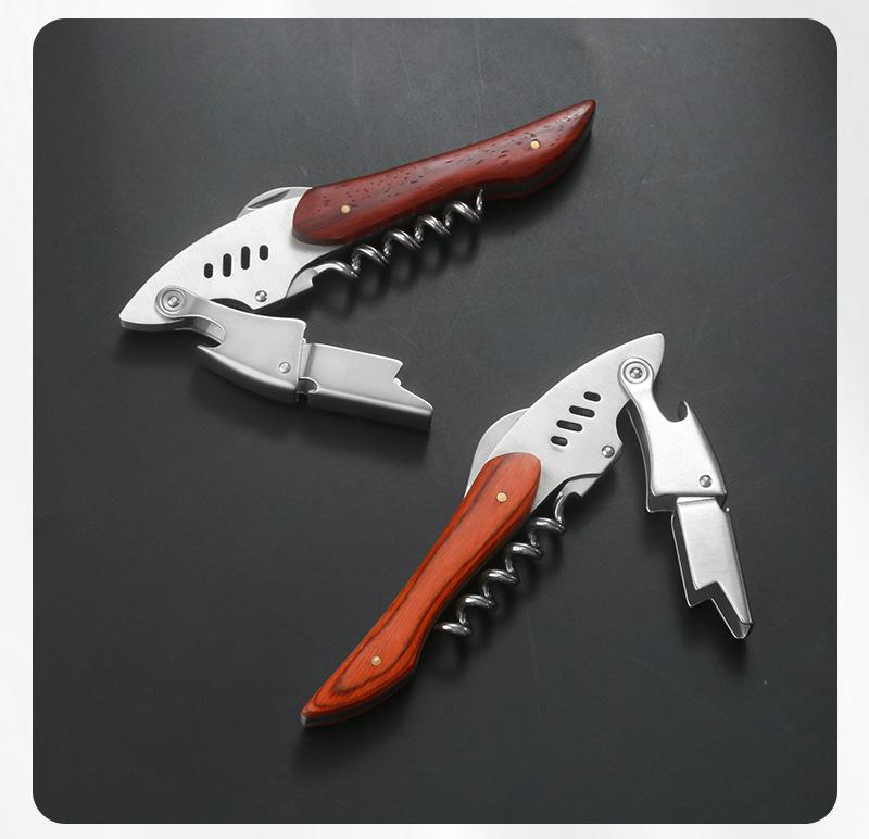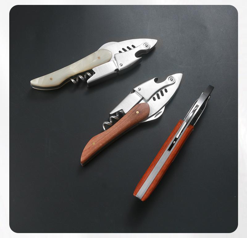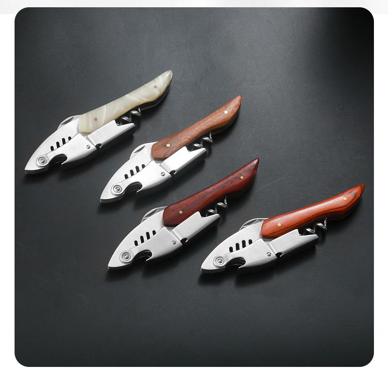 Abridor de Garrafa de Vinho Tinto de Aço Inoxidável Multifuncional Faca Tubarão Cavalo Marinho Cabo de Jacarandá Abridor de Garrafa de Vinho Cerveja Portátil