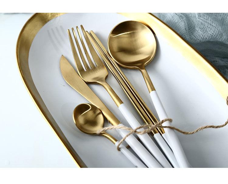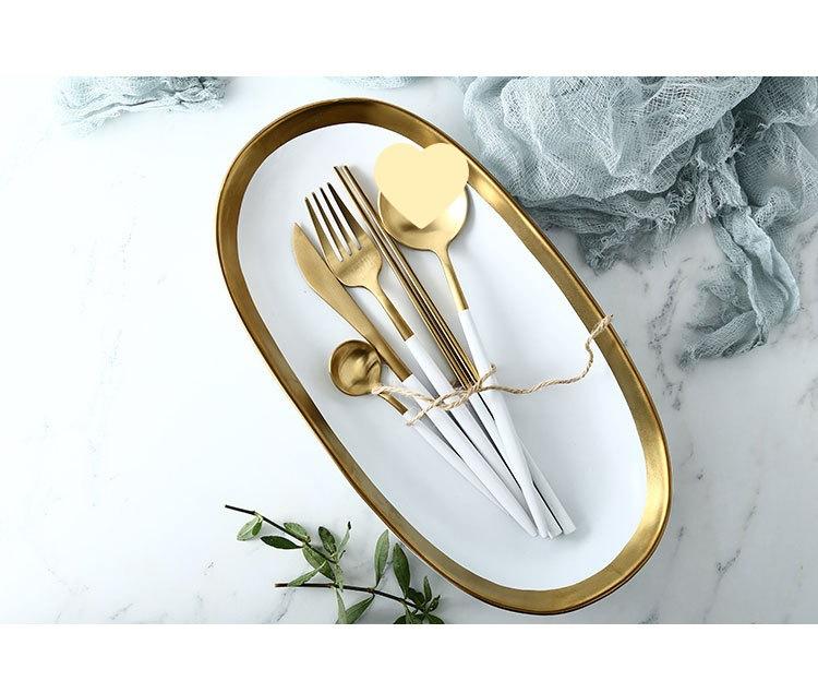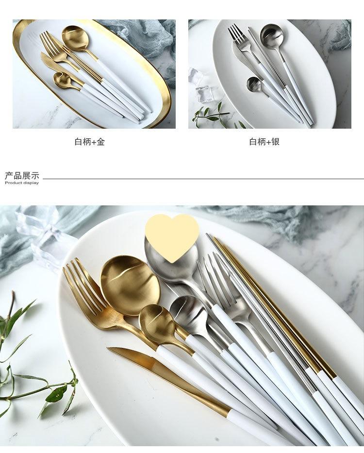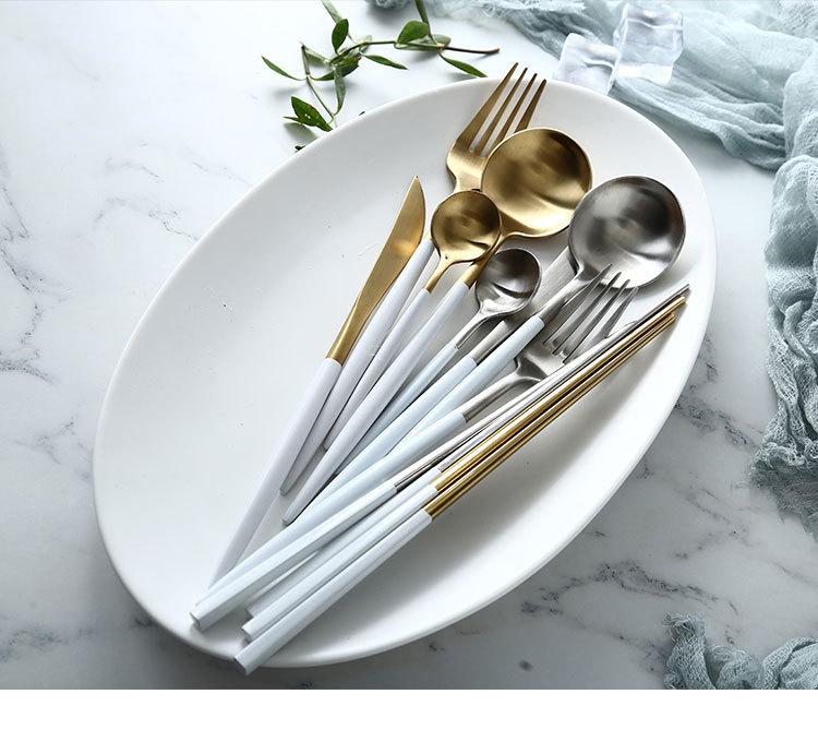 Talheres de Aço Inoxidável 304 para Comida Ocidental, Faca, Garfo e Colher, Talheres Dourados e Brancos, Faca e Garfo para Bife, Garfo para Sobremesa, Colher de Café, Hashis Estilo Português