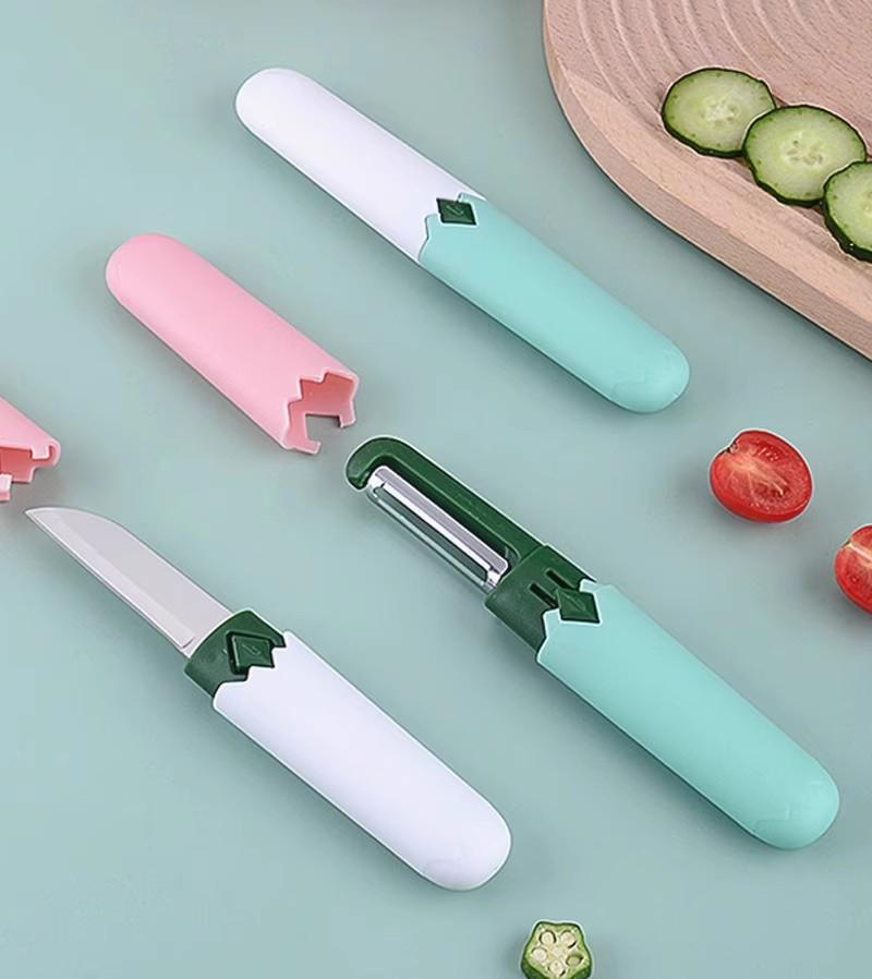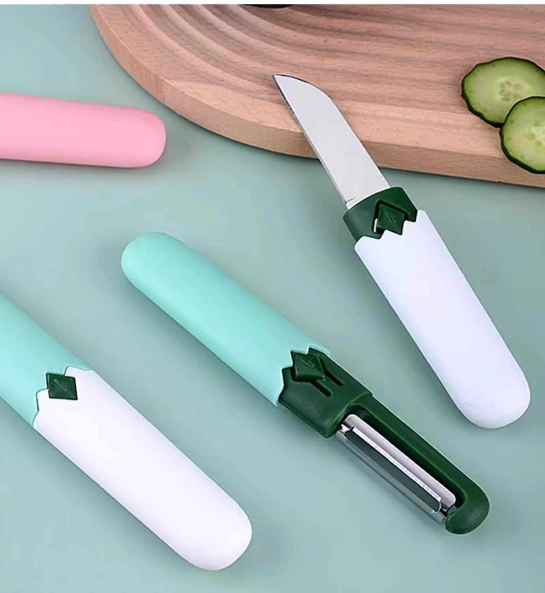 Faca de frutas uso dormitório estudante descascador descascador doméstico portátil multifuncional dois em um artefato para descascar maçãs