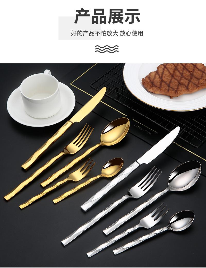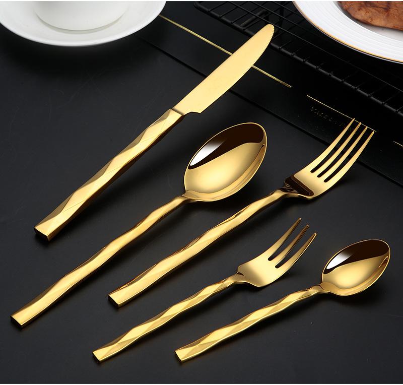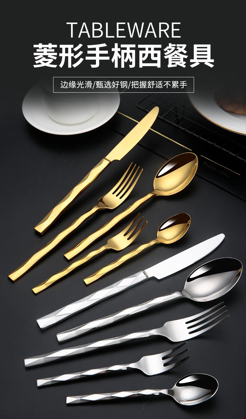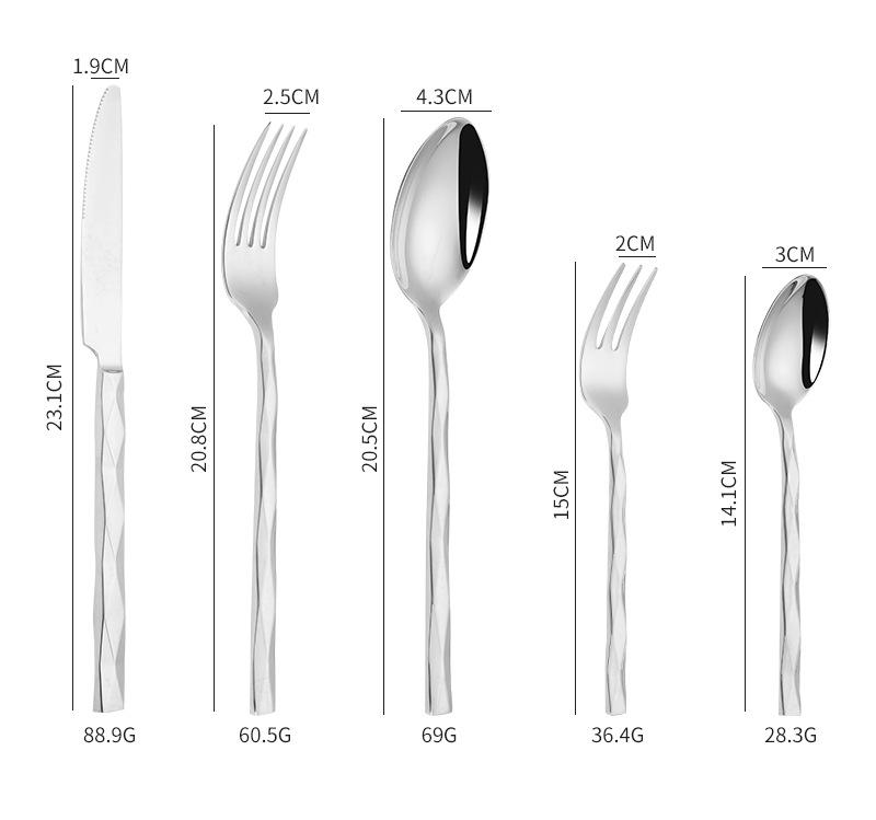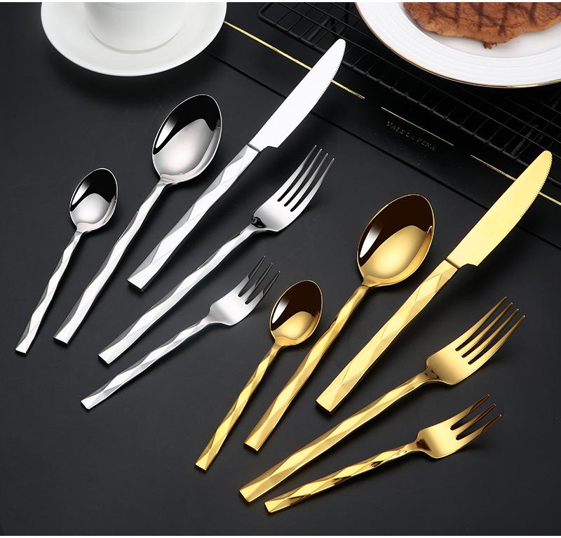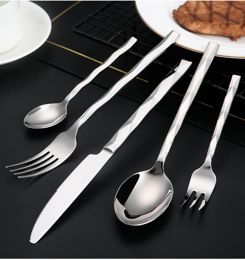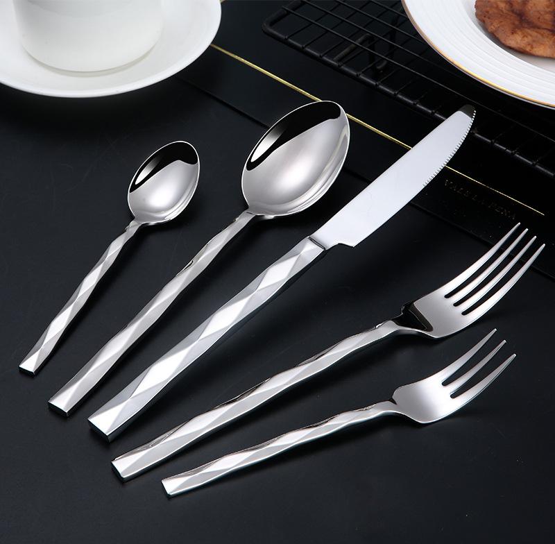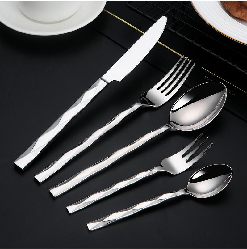 Conjunto de Talheres de Aço Inoxidável 304 Diamante Faca, Garfo e Colher Conjunto de 5 peças Faca de Bife Ocidental Colher de Sobremesa