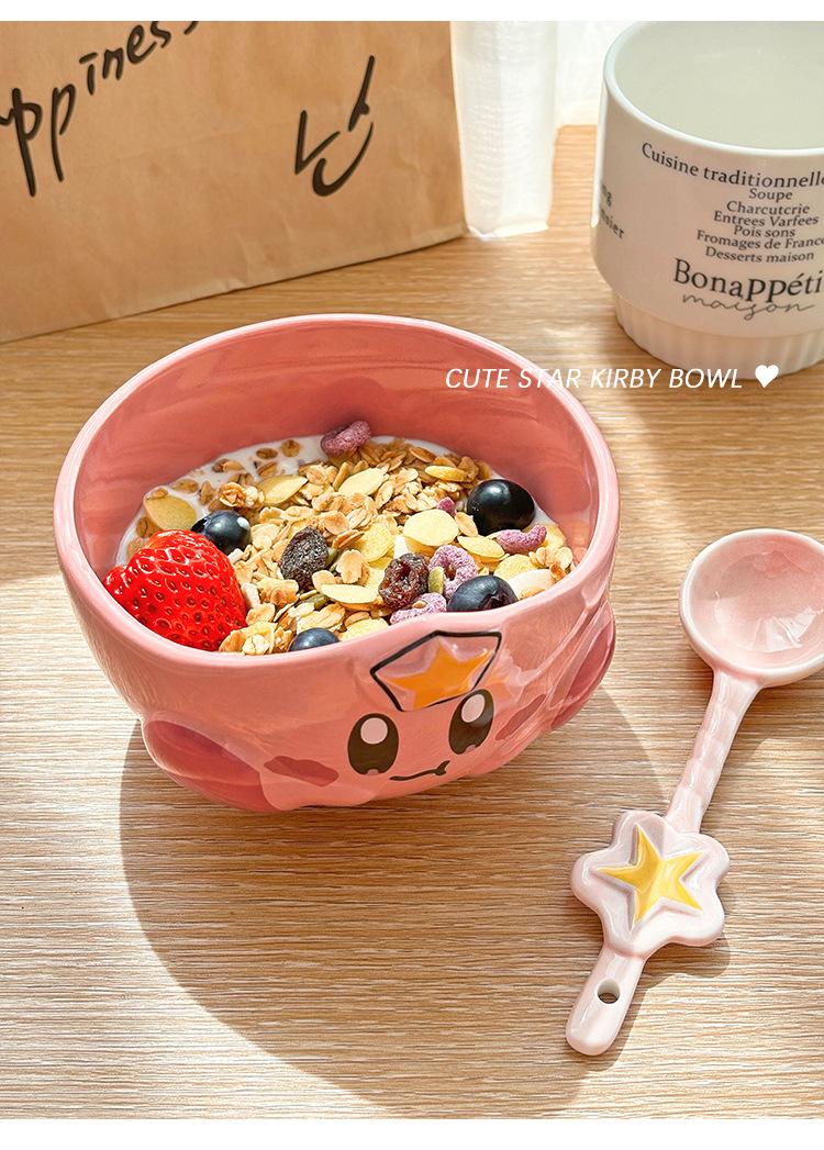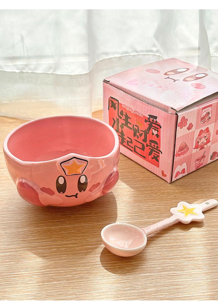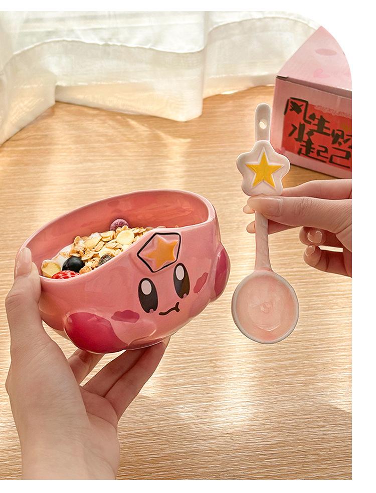Tigela de Arroz de Cerâmica Fofa do Kirby, Louça de Mesa de Alta Aparência de Celebridade da Internet, Bela Tigela de Arroz, Louça Doméstica Infantil