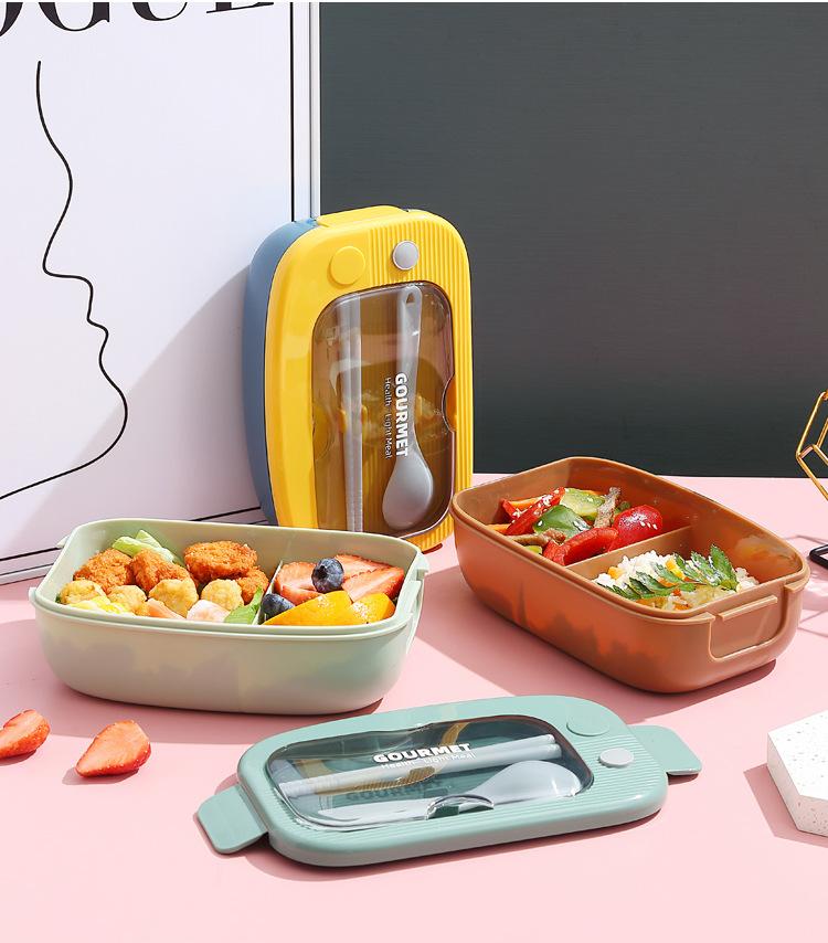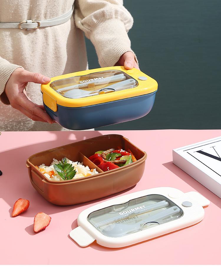 Lancheira com lancheira para trabalhadores de escritório, lancheira para aquecimento em micro-ondas, lancheira quadrada simples de alto valor de cor