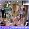 Copos de Palha Populares Cuidadosamente Selecionados com Copos de Salto Graduados, Copos de Plástico Resistentes ao Calor e Anti-Queda, Garrafas de Água de Plástico Portáteis com Cordas para Estudantes