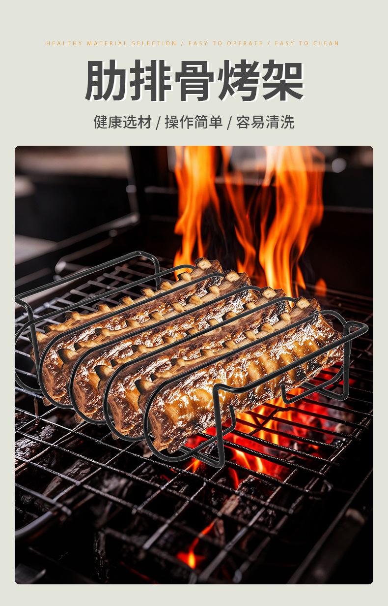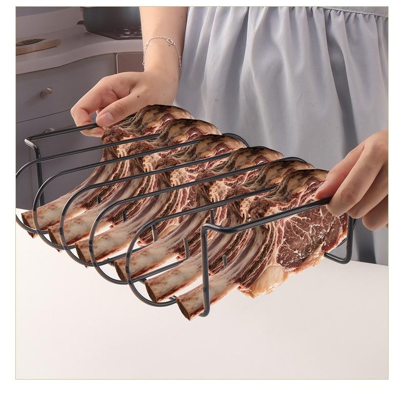Grelha de Costela em Aço Inoxidável para Acampamento ao Ar Livre Churrasco BBQ Costeletas de Cordeiro Bife Portátil Antiaderente Ferramenta de Grelha para Churrasco