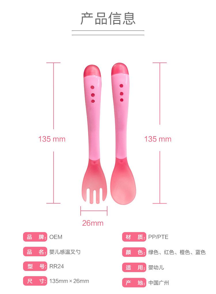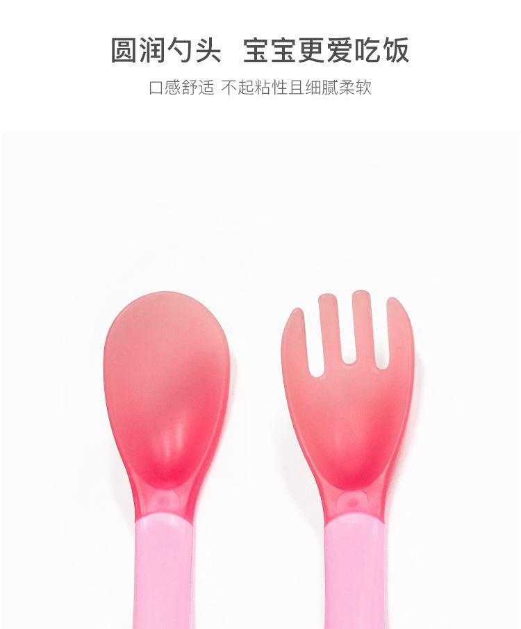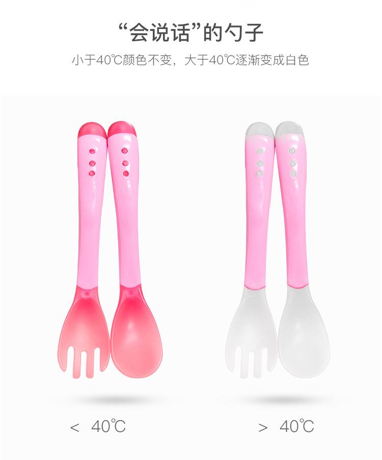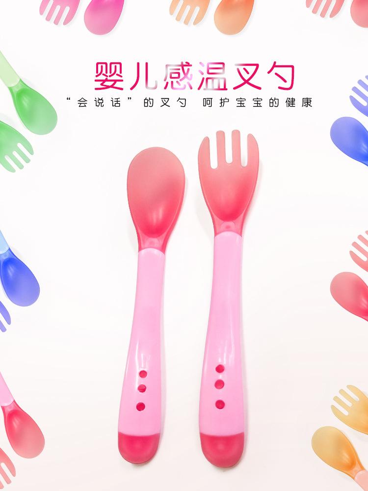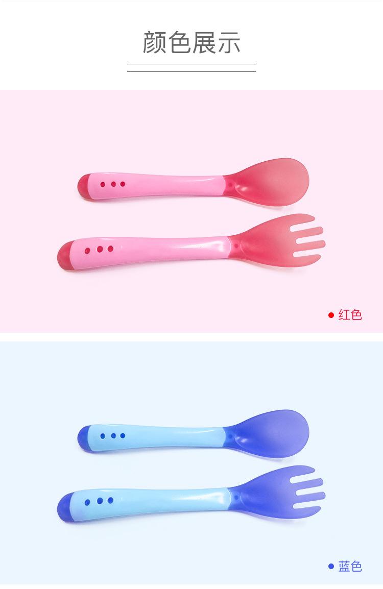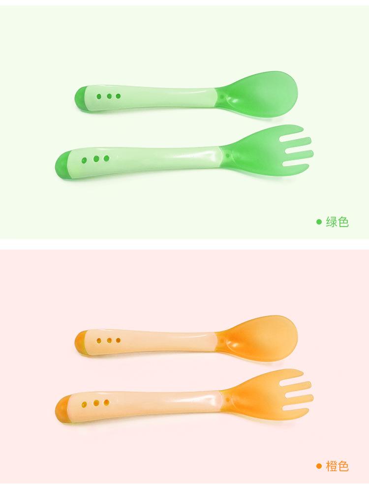 Garfo e Colher Sensíveis à Temperatura com Mudança de Cor para Crianças Aprenderem Colher Macia de Silicone de Grau Alimentício para Bebê Comer Colher Anti-Escaldante para Suplemento Alimentar