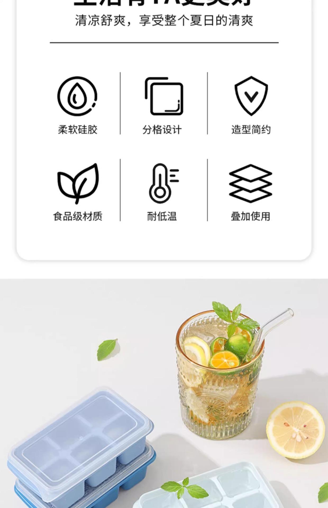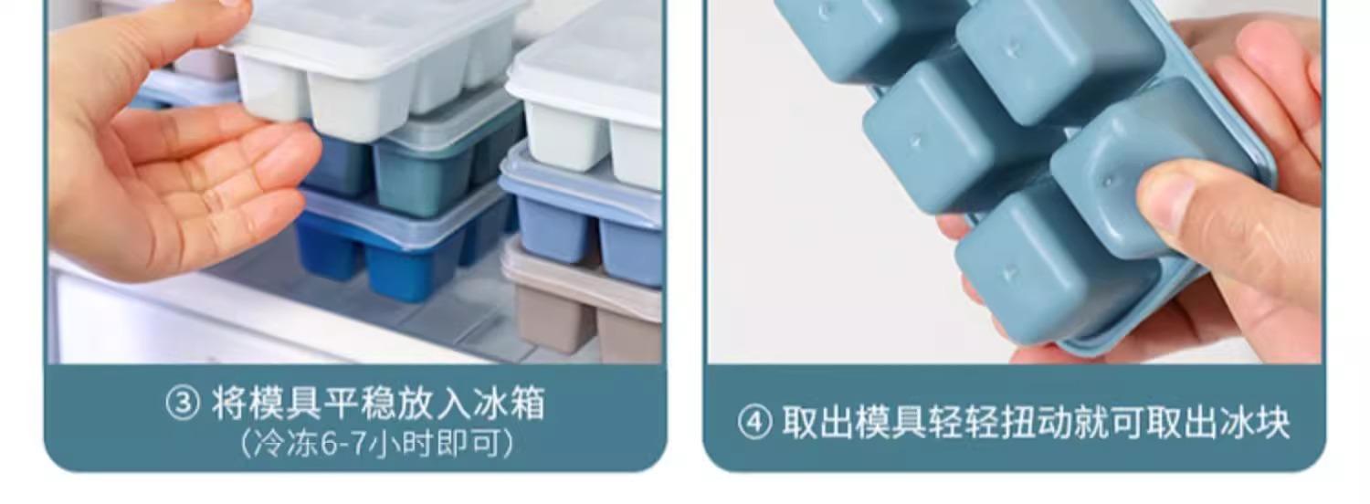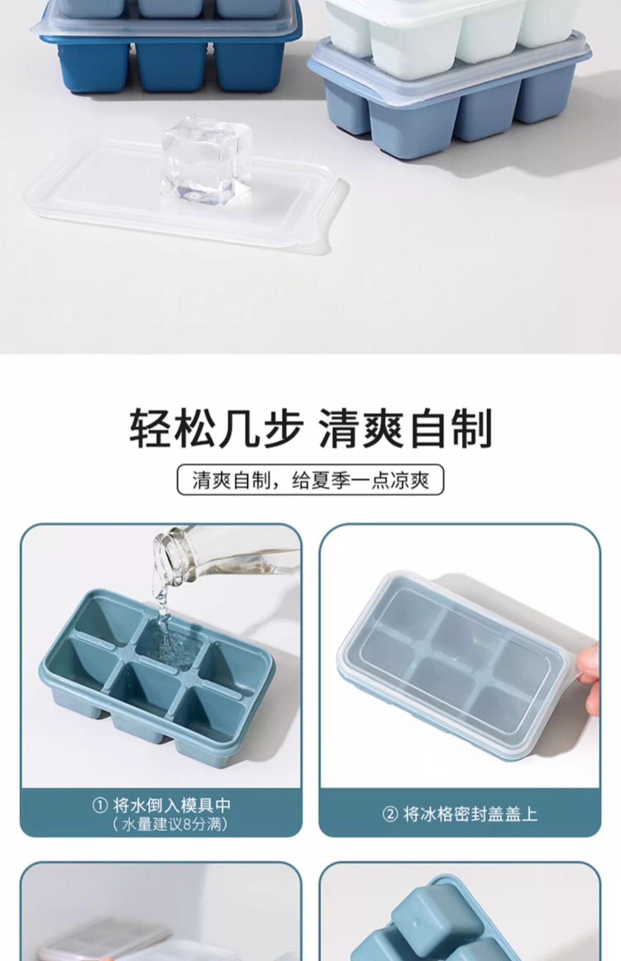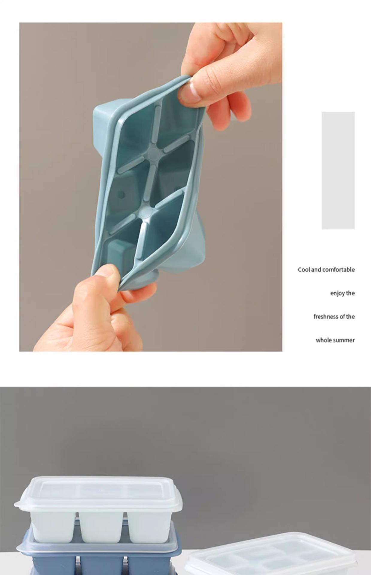 Forma de Gelo de Silicone Molde de Gelo Geladeira Grande Capacidade Doméstico com Tampa Caixa de Armazenamento de Gelo Artefato de Cubo de Gelo Congelado Grade de Gelo Bolsa de Gelo