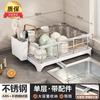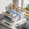 Escorredor de louça de aço inoxidável autossuficiente, escorredor de cozinha, cesto para talheres para tigelas e pauzinhos, escorredor de tigelas e pratos para bancada doméstica, escorredor