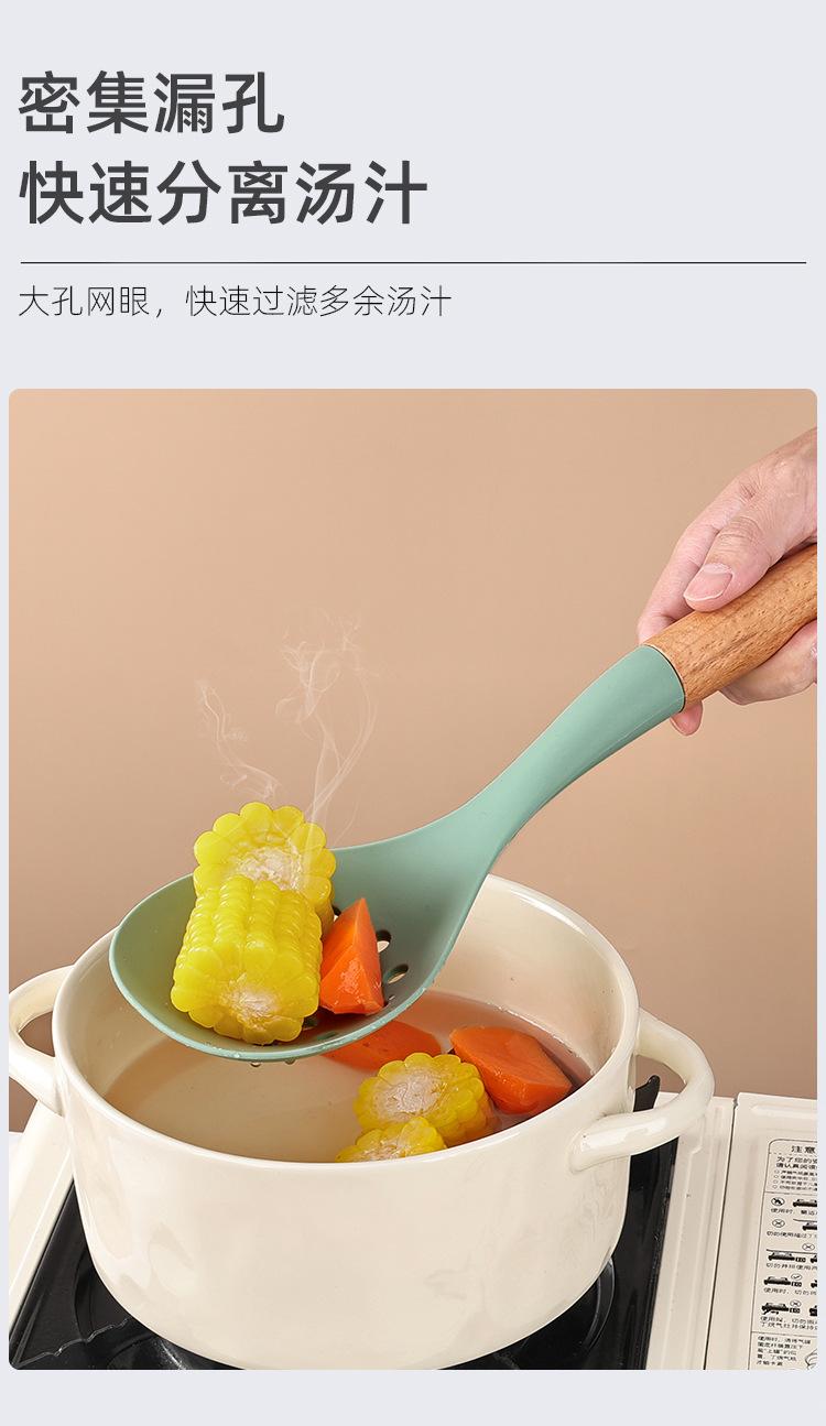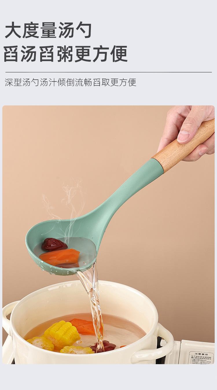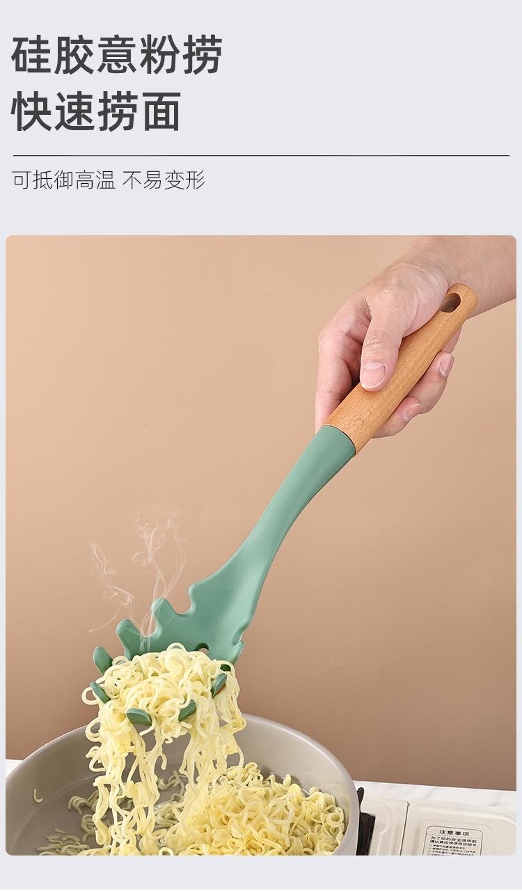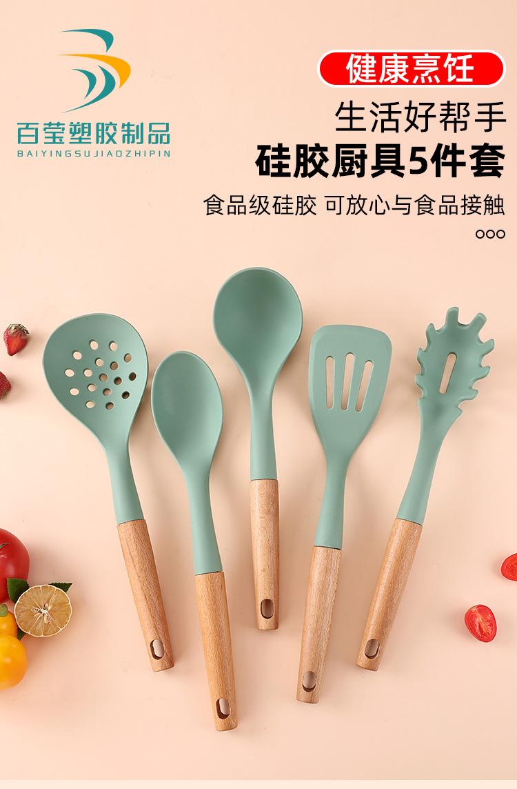 6-piece plastic rack for kitchen utensils with wooden handles (dark green)