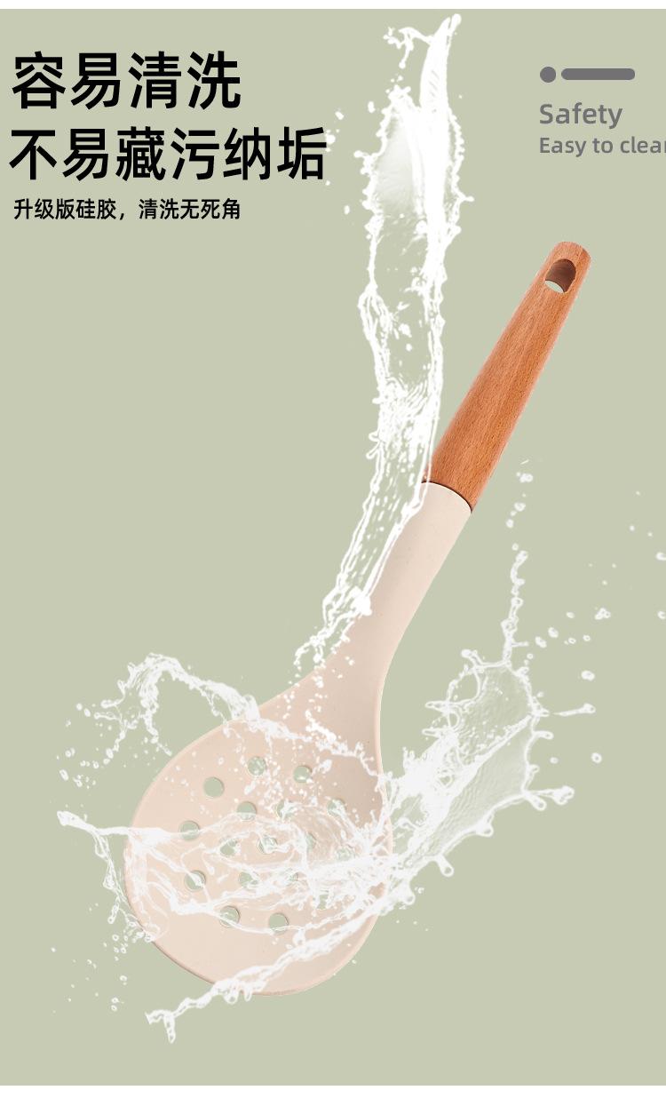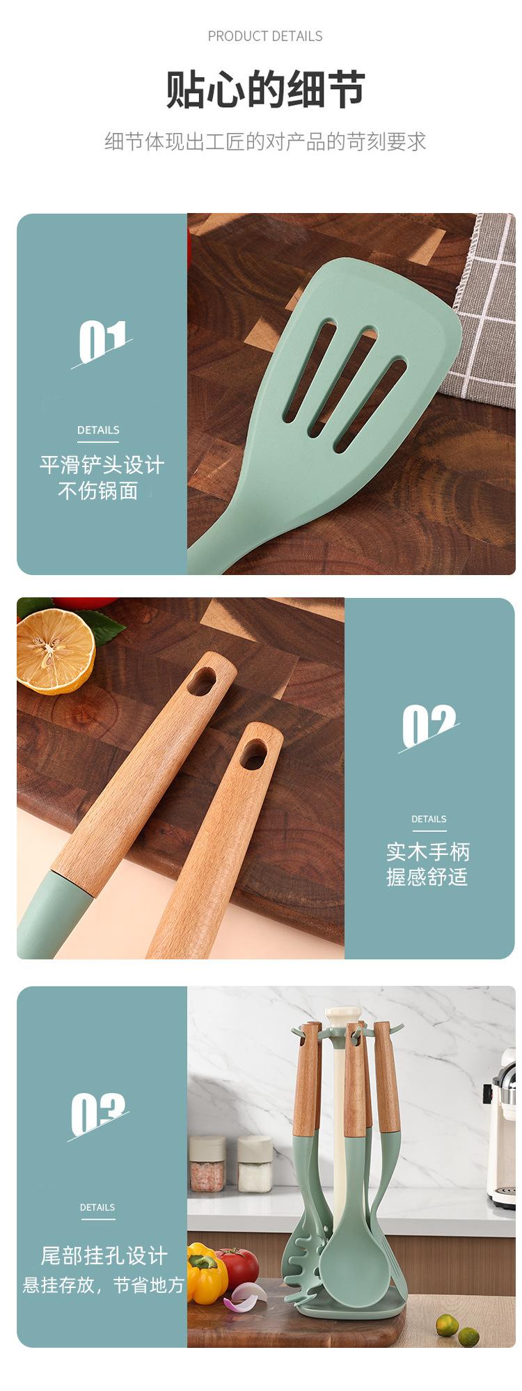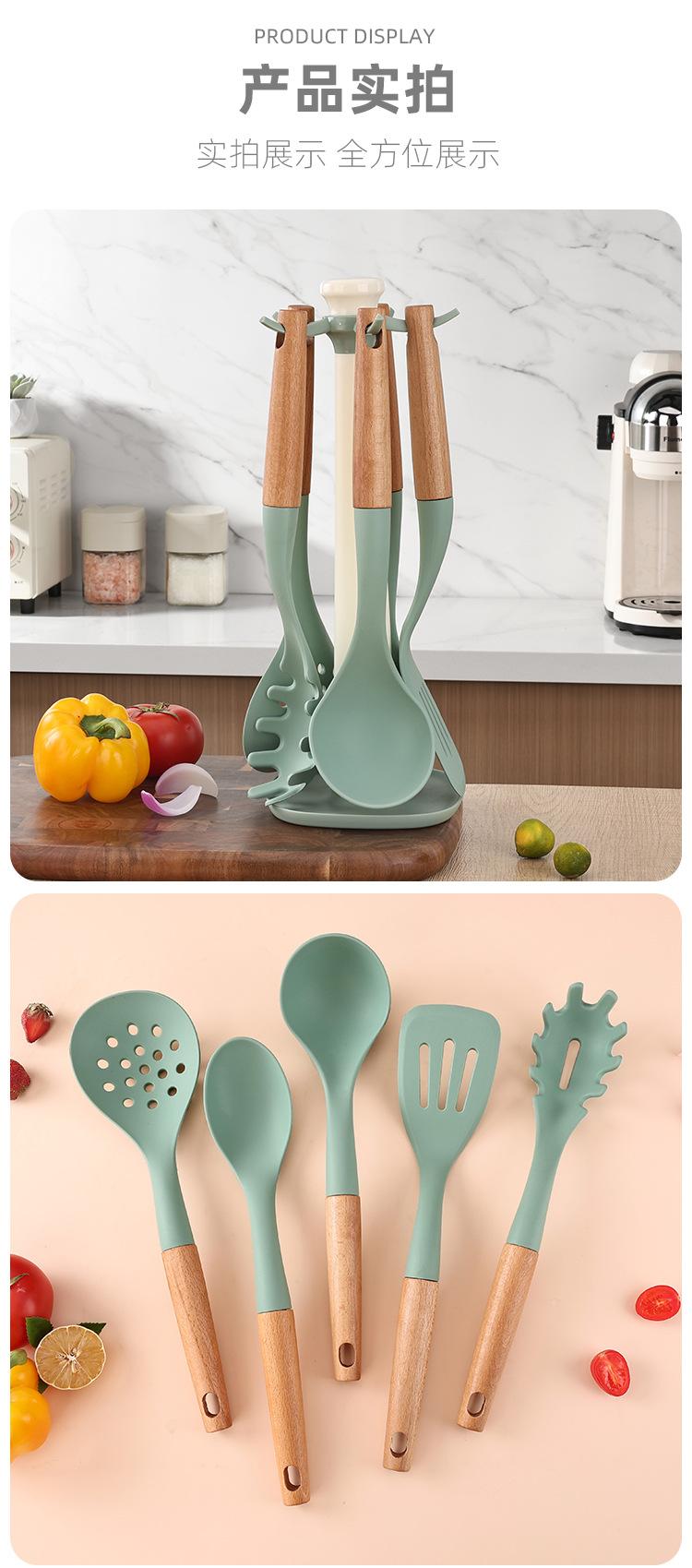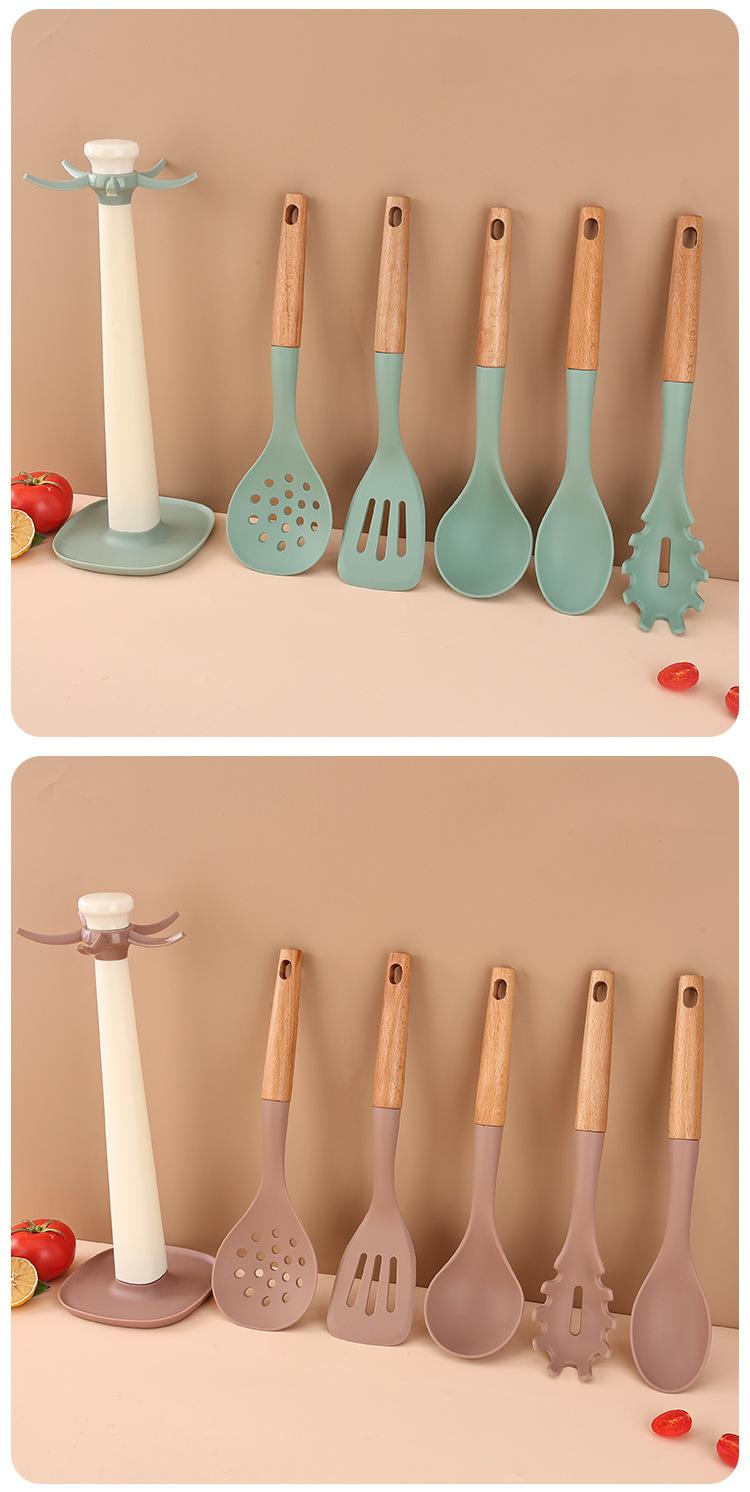 6-piece plastic rack for kitchen utensils with wooden handles (dark green), 6-piece plastic rack for kitchen u...