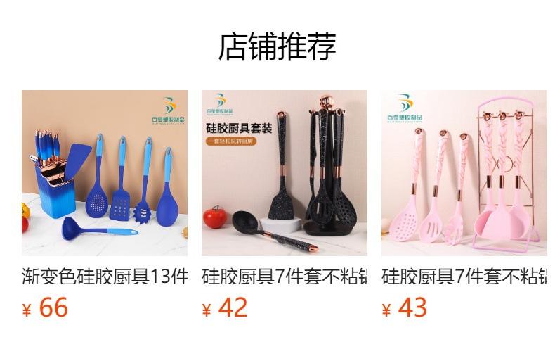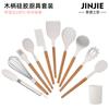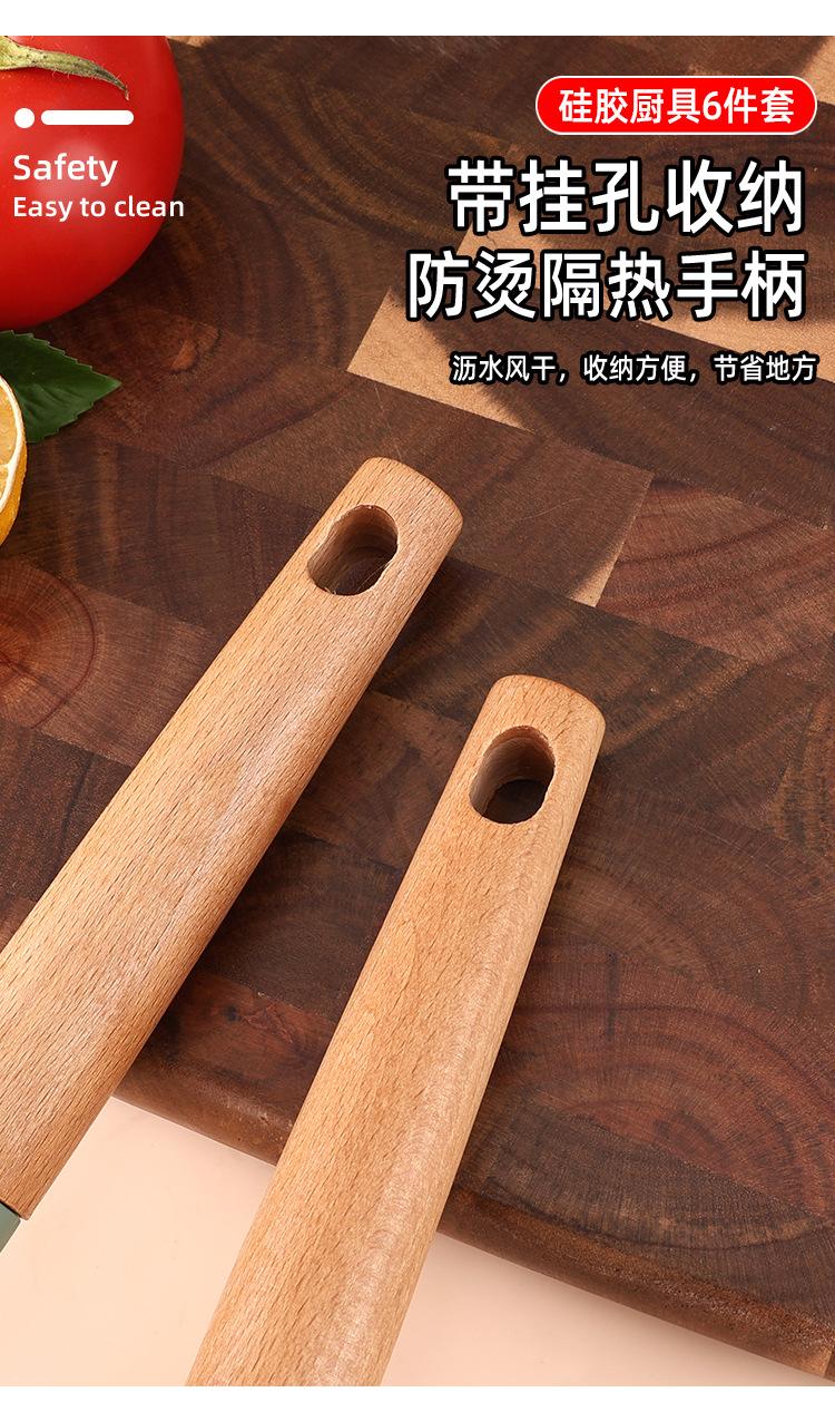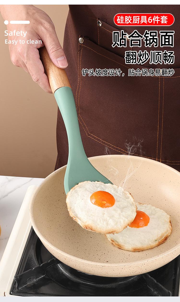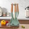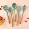 Utensílios de Cozinha Silicone Cabo de Madeira Estilo Europeu Antiaderente Cozinhar Espátula de Silicone Conjunto de 6 peças Azul Resistente à Temperatura Conjunto de Utensílios de Cozinha