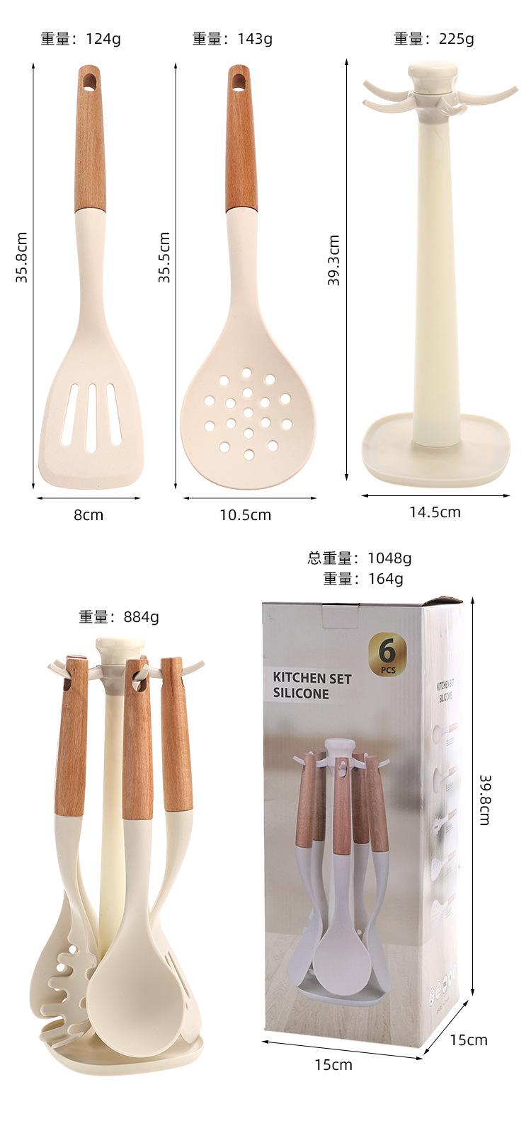 6-piece plastic rack for kitchen utensils with wooden handles (brown)