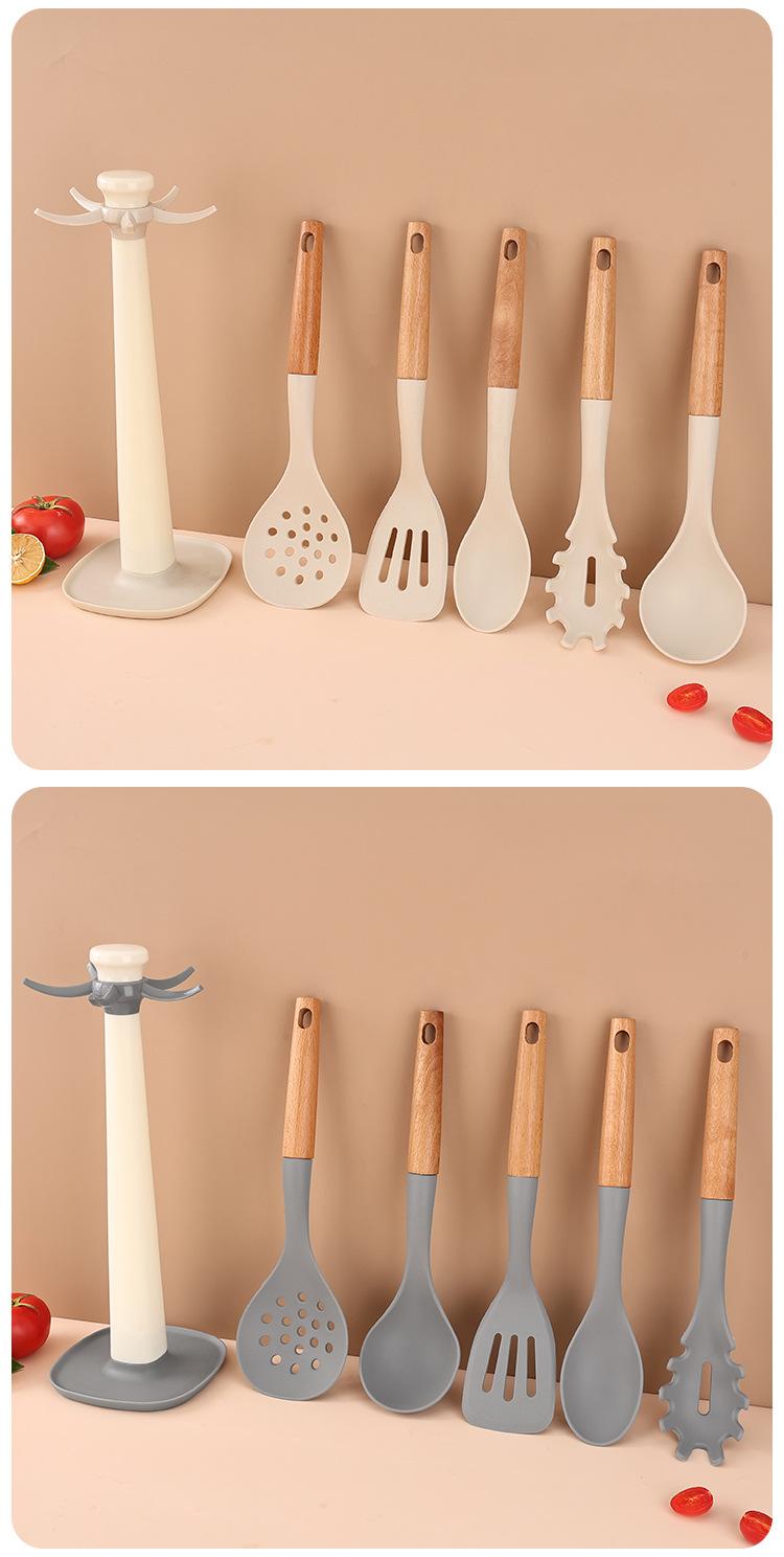 6-piece plastic rack for kitchen utensils with wooden handles (grey)