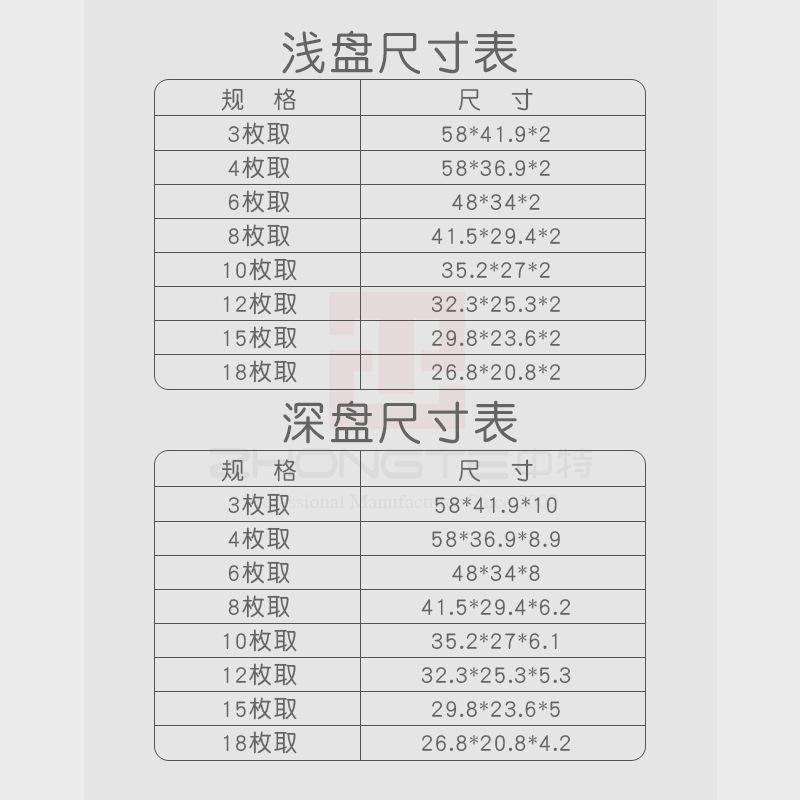 3 pieces shallow 58*41.9*2, 3 pieces deep 58*41.9*10, 4 pieces shallow 58*36.9*2, 4 pieces deep 58*36.9*8.9, 6...