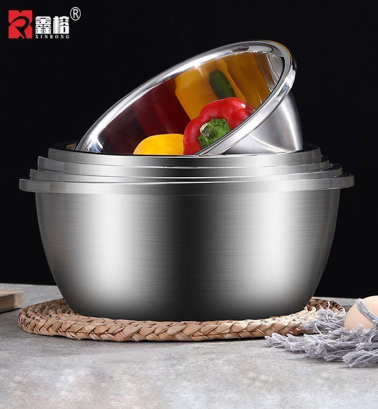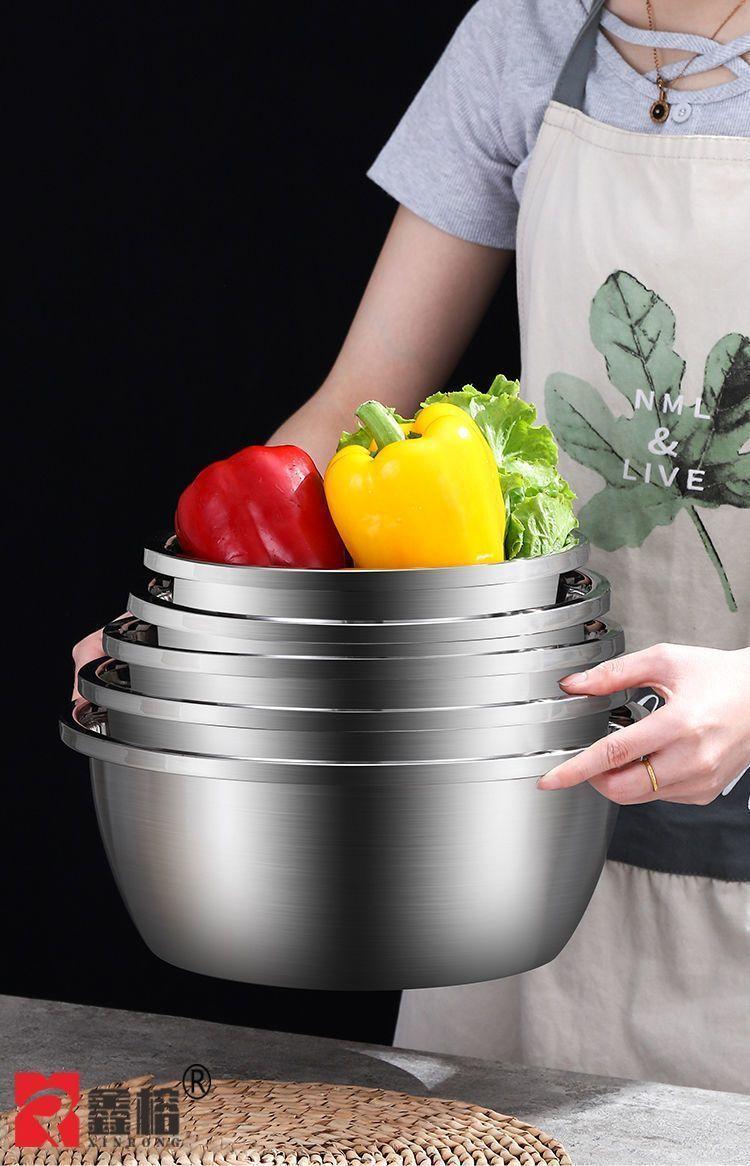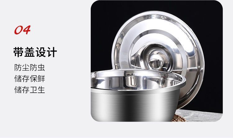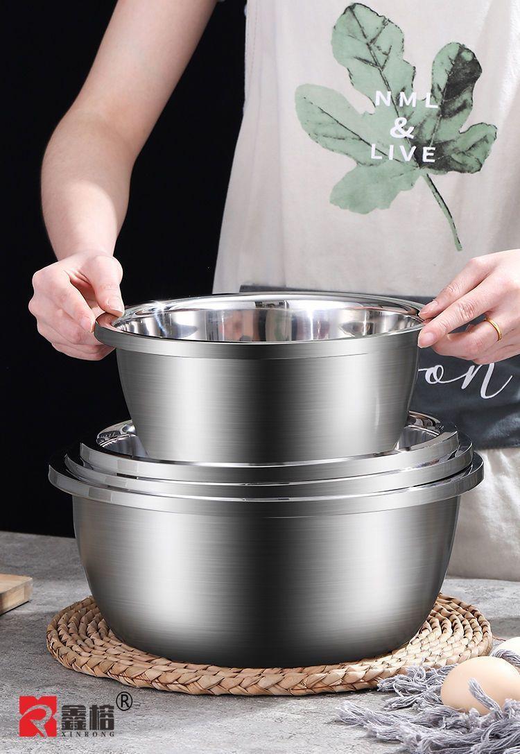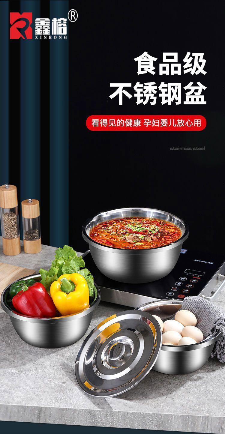 Bacia de Aço Inoxidável com Tampa, Bacia de Tempero de Grau Alimentar, Bacia de Sopa Espessa, Bacia Doméstica para Bater Ovos e Sopa de Macarrão, Bacia Multiuso de Cozinha
