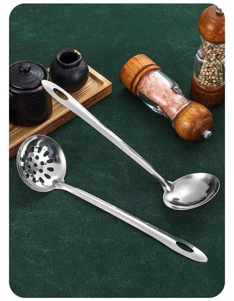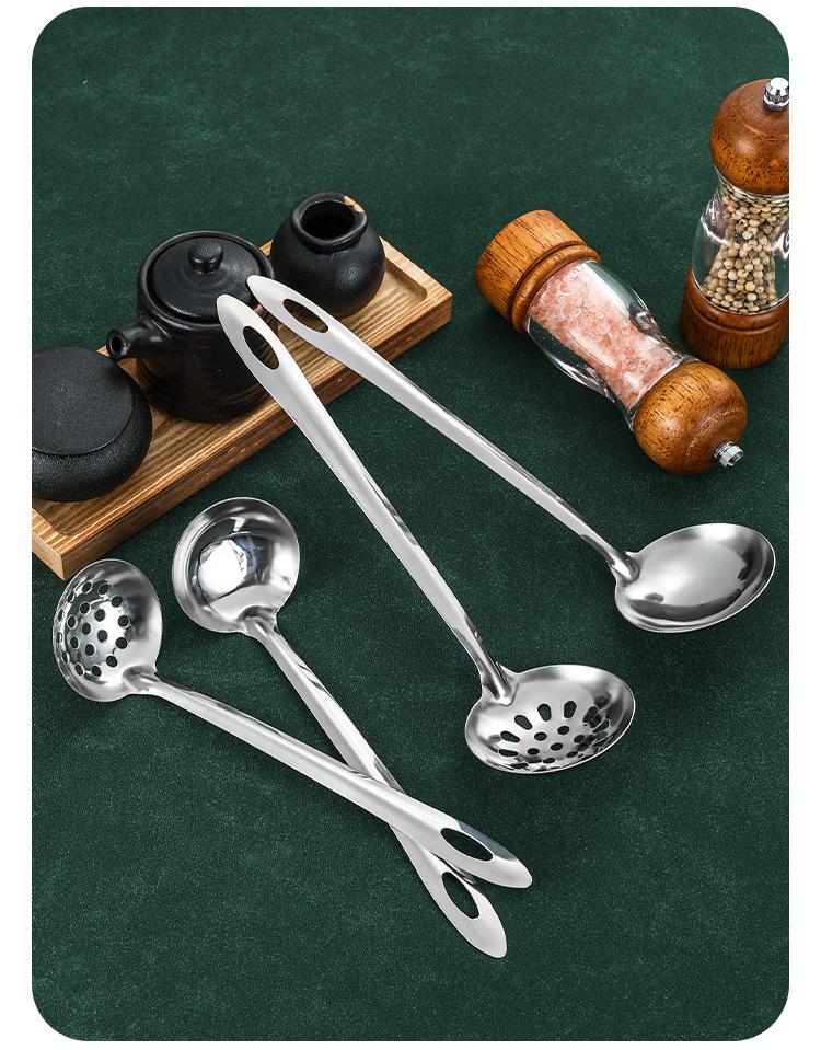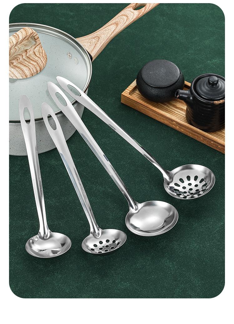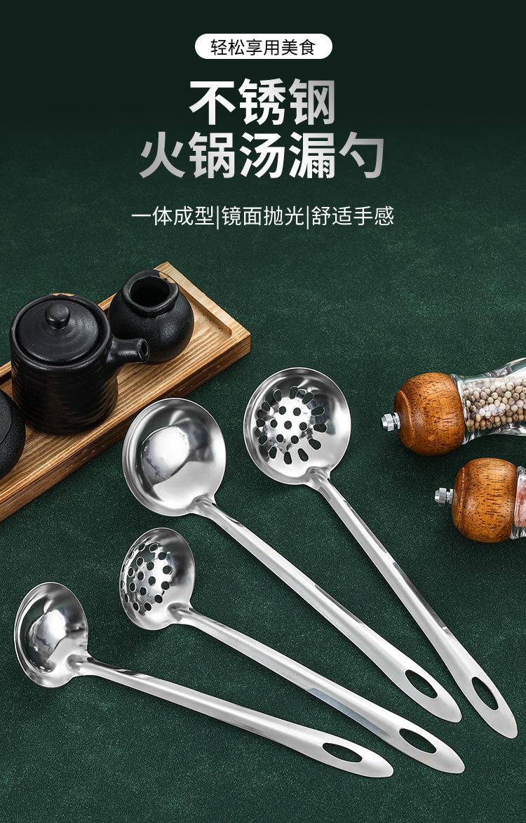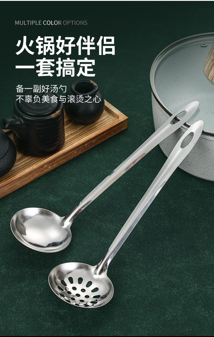Colher de Sopa Doméstica de Aço Inoxidável Atacado Cabo Longo Colher para Hot Pot Utensílios de Cozinha Hotel Escorredor Pendurável Suprimentos de Cozinha Refeição